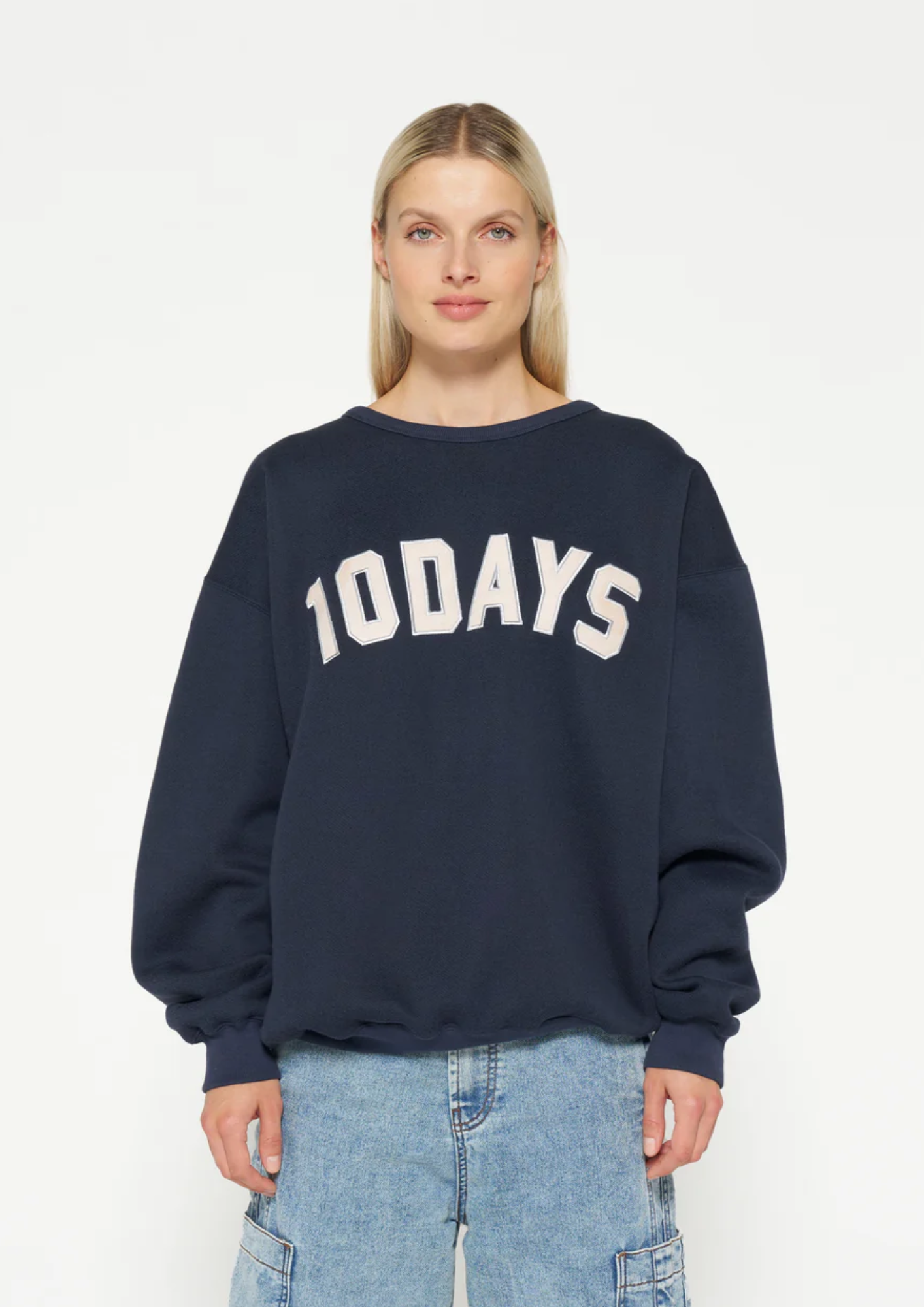 Oversized fit statement sweater, gemaakt van dik geborsteld fleece. Voorzien van opgestikte "10 DAYS" baseball patch op de borst en ribgebreide boorden