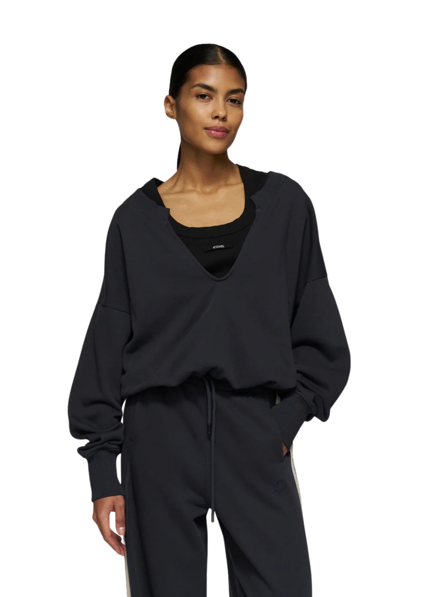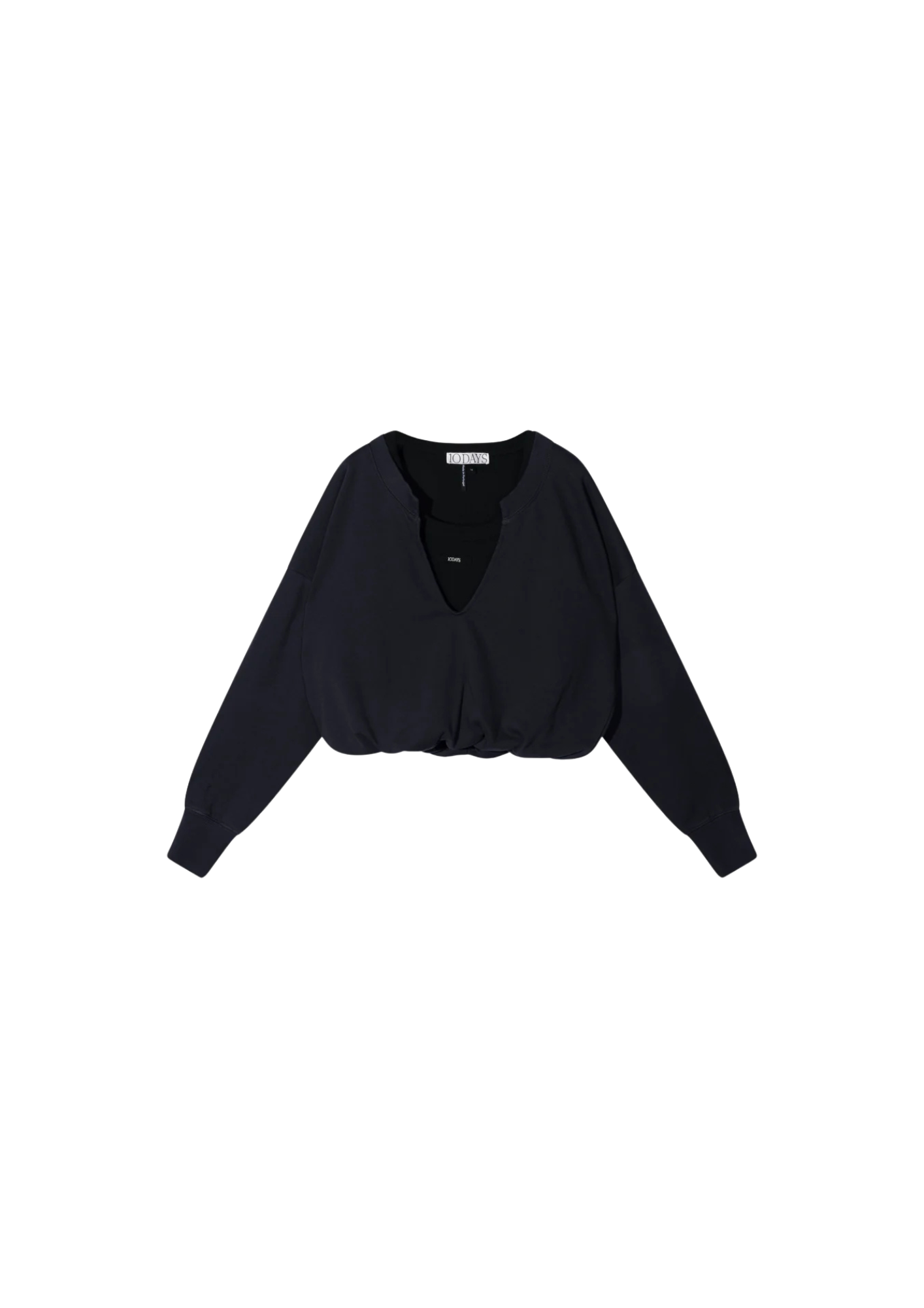 Relaxed fit sweater met v-hals, gemaakt van een zacht katoenen fleece. Voorzien van een vastgemaakte tank top aan de binnenkant met een ronde hals, een ballonvormige zoom, ribgebreide boorden en een '10DAYS' canvas label op de voorkant van de tank top.