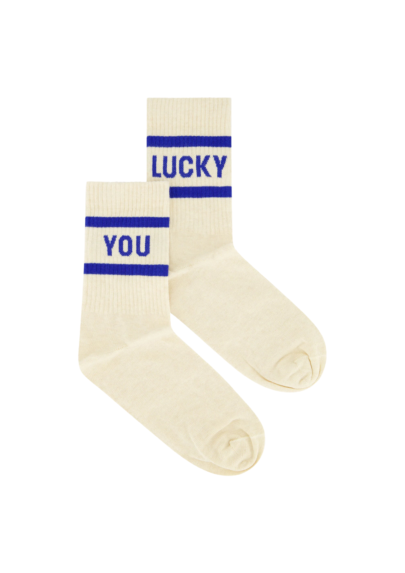 Klassieke sokken met de woorden 'lucky' en 'you'. Gemaakt van een zachte katoen met stretch en lurex.