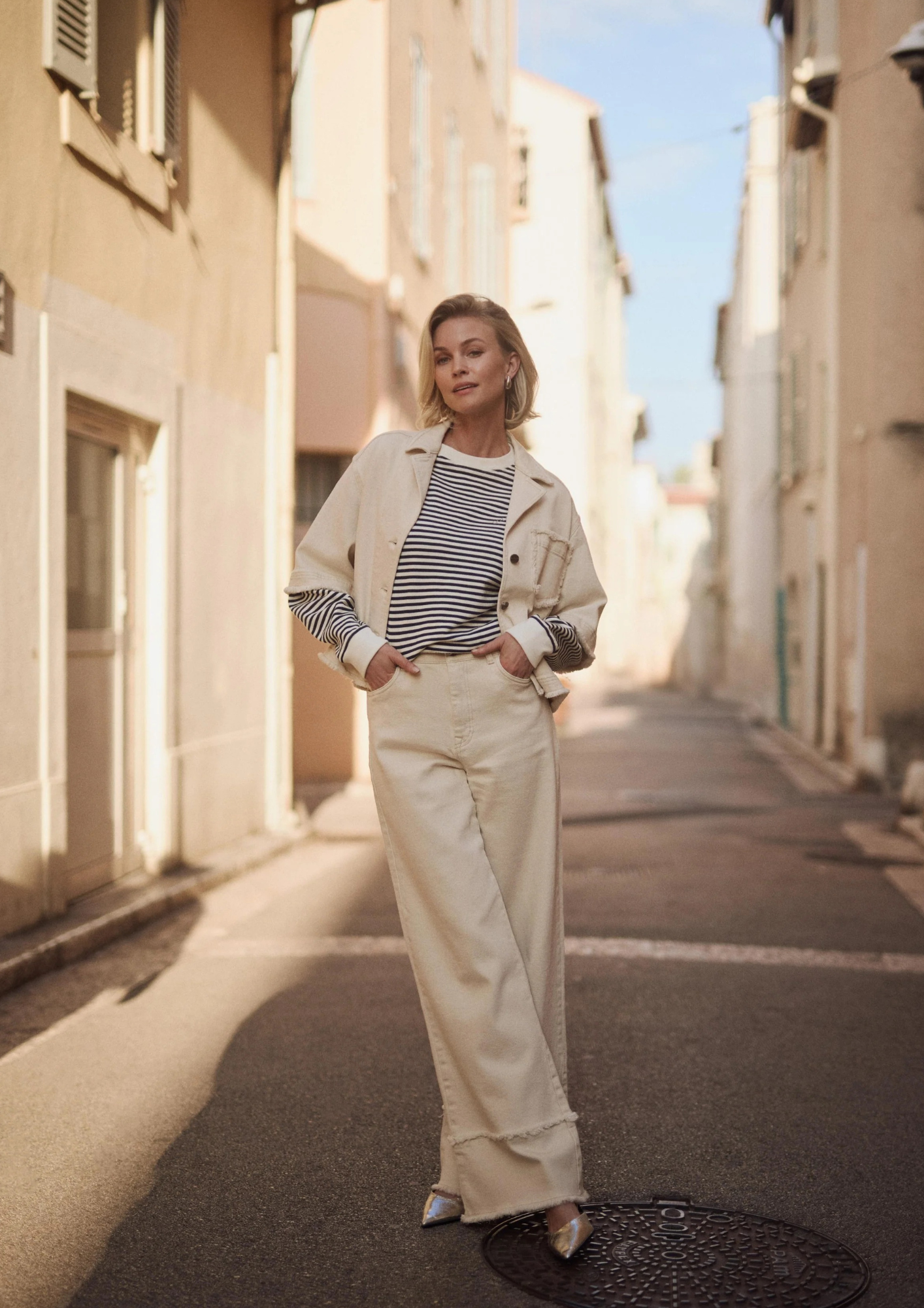 Shay Pants Ruffle is een offwhite jeans met een wide leg pasvorm en een five pocket model. Gemaakt van 99% katoen en 1% elastane voor een comfortabele fit. Draag deze broek als complete set met de Charlie Jacket Ruffle voor een stijlvolle, moderne look.