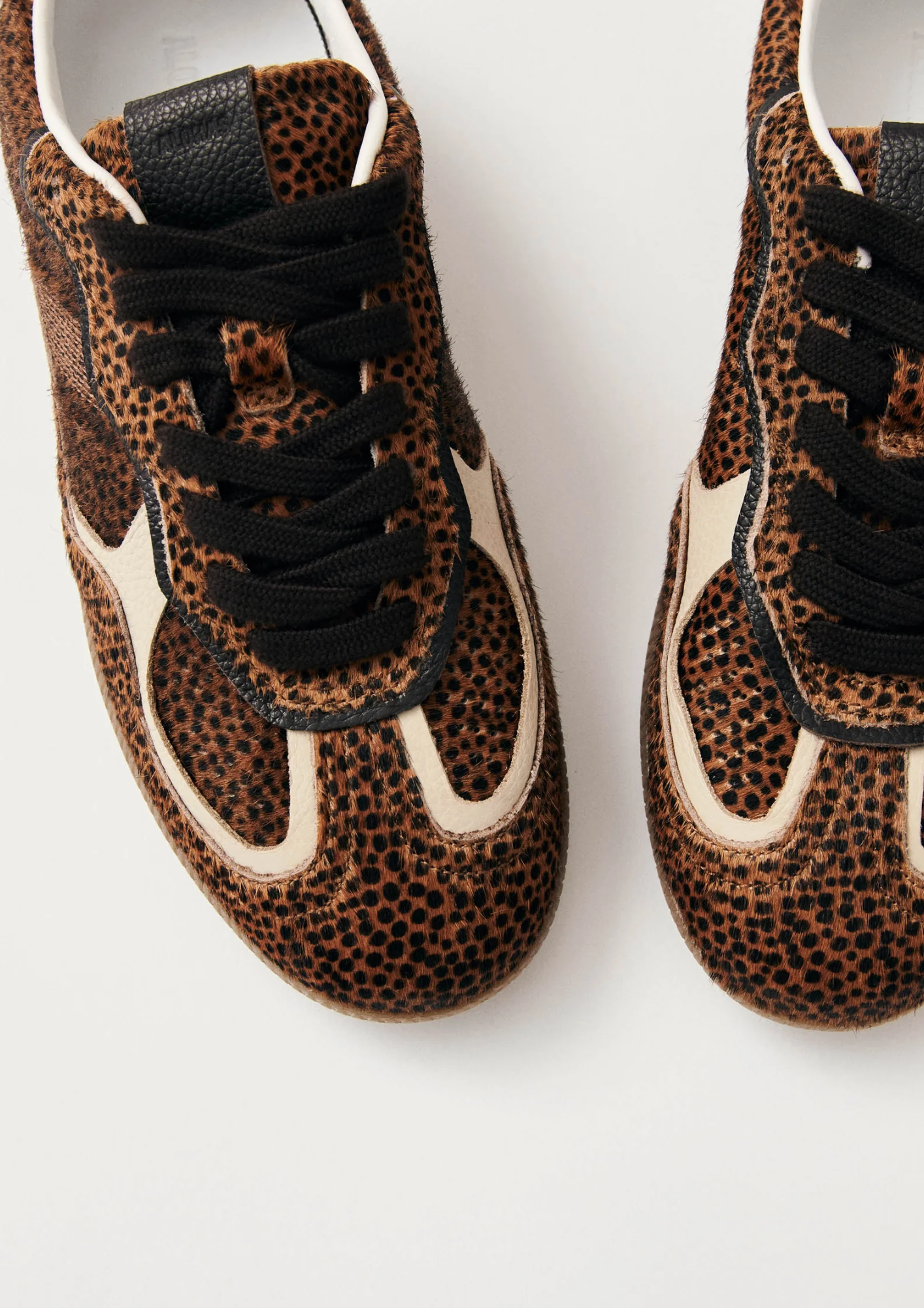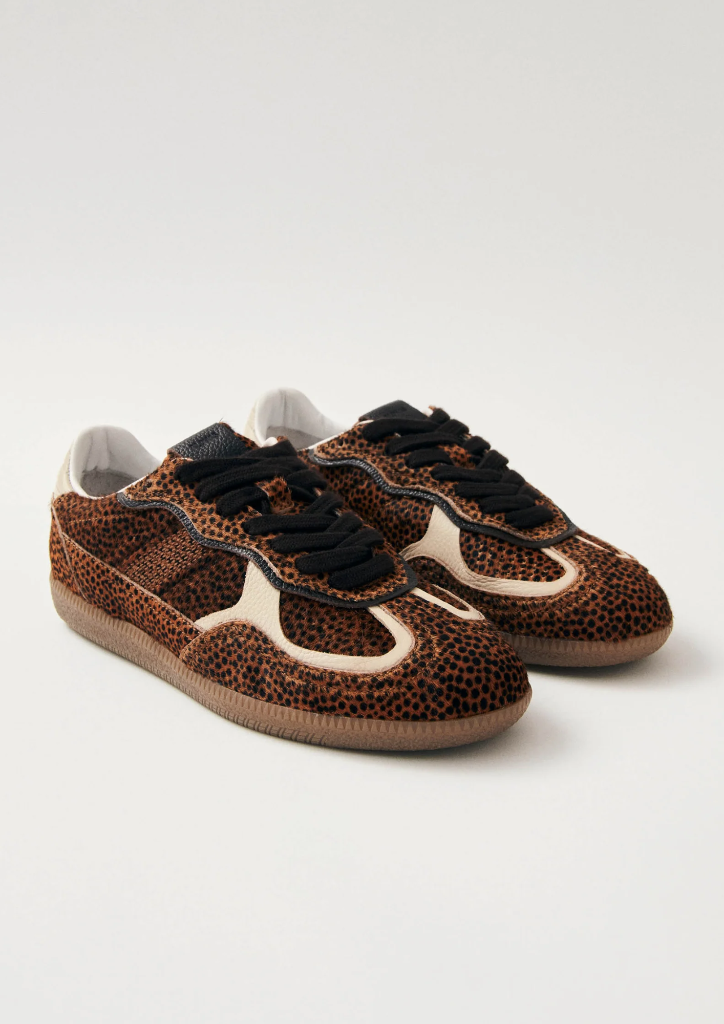 De Tb.490 sneaker, verkrijgbaar in de wildste luipaardprint, is gemaakt van tastbaar kalfshaar met zwarte stippen. Ontworpen in een laag silhouet op rubberen zolen, is hij compleet met klassieke functies, waaronder contrasterende hiellipjes en het logo in reliëf op de tong.