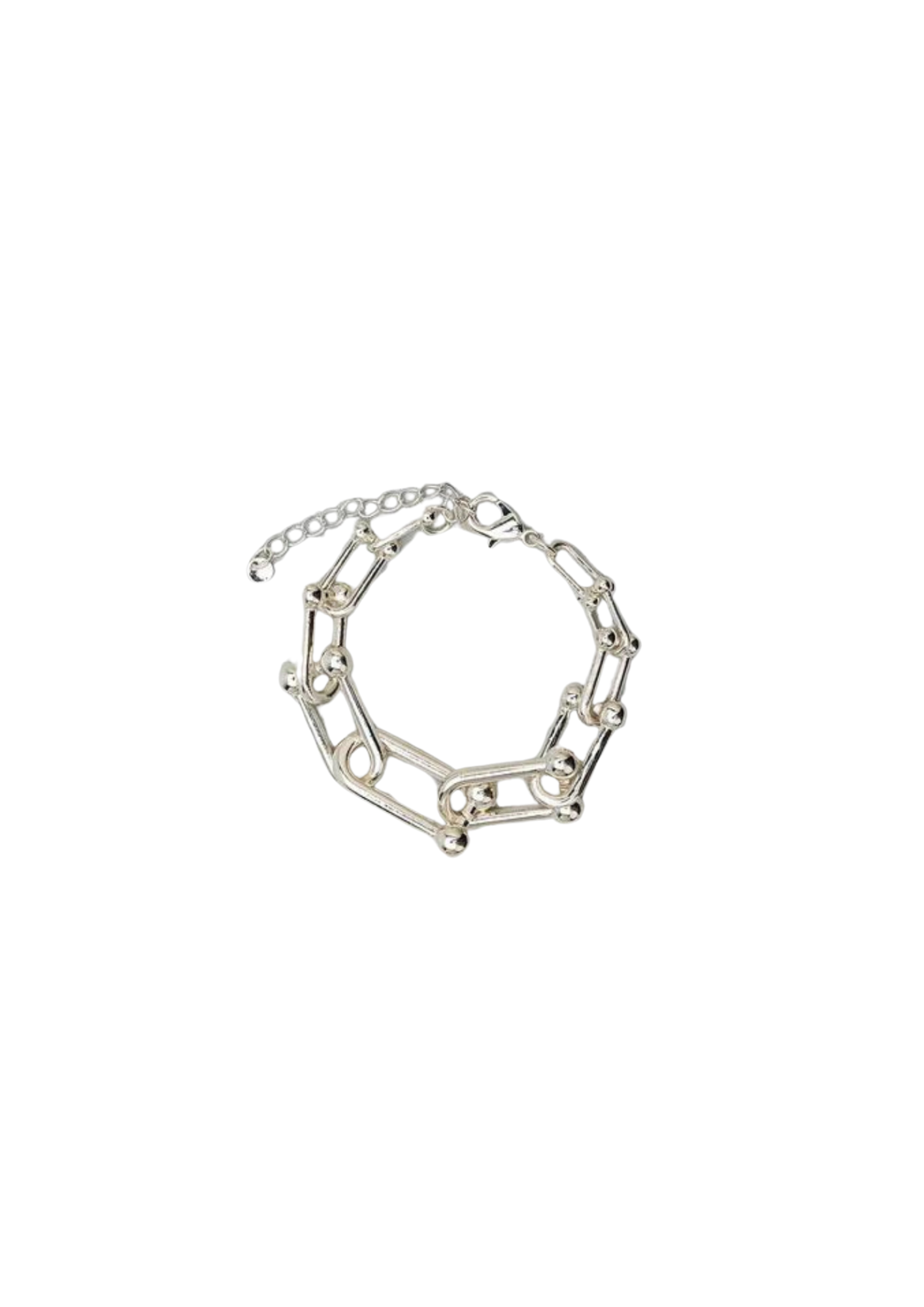 Armband van stevige metalen ketting met rechthoekige schakels. De armband heeft een verstelbare lengte en wordt vastgemaakt met een klauwsluiting. Draag Anna alleen of combineer met andere armbanden en bijpassende ketting.