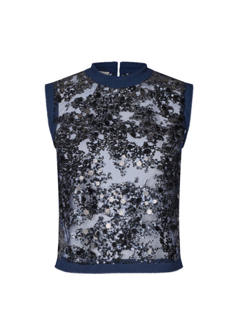 De Manira Blouse brengt een vleugje sprankeling in je garderobe met zijn opvallende en verfijnde silhouet. De mouwloze blouse heeft een transparante, rechte pasvorm met unieke paillettendetails en gerafelde randen voor een eigentijdse touch. Combineer hem met een high-waist jeans en sneakers voor een moeiteloos verfijnde look of met onze Shania Rok voor een glamoureuze avondoutfit.
