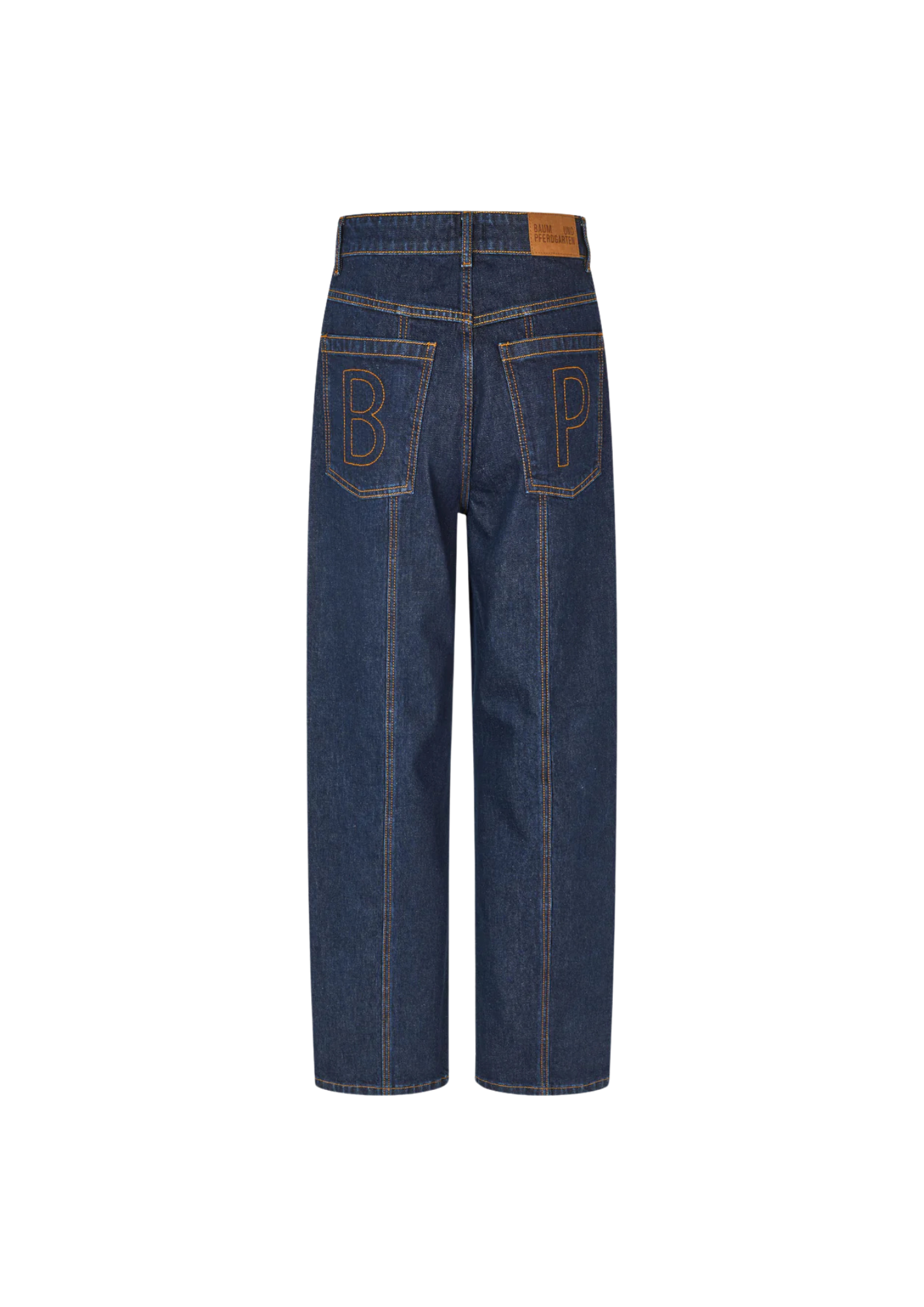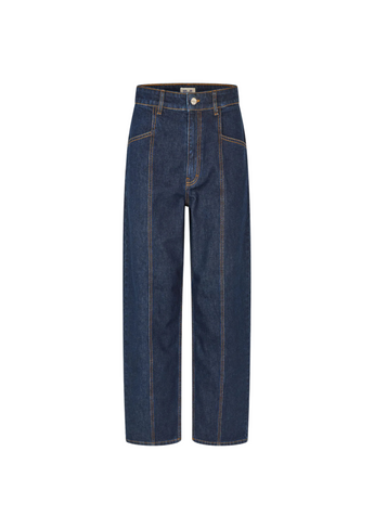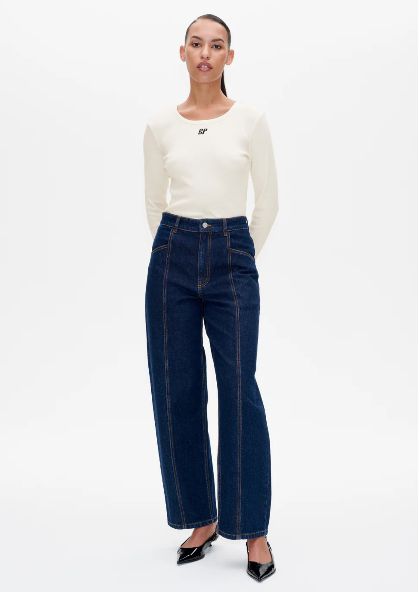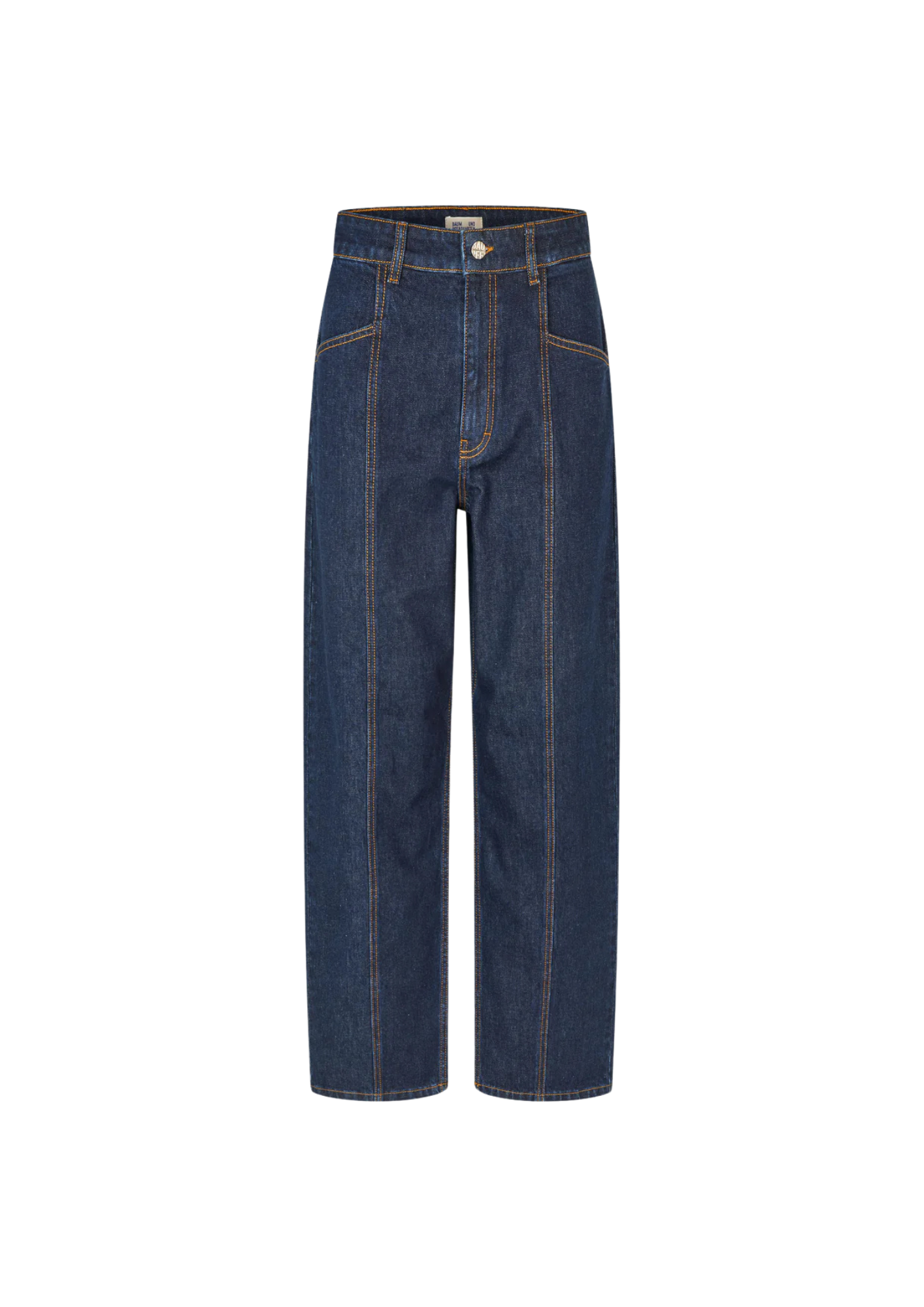 Deze high-rise jeans heeft een ritsgulp met knoopsluiting, voor- en achterzakken en een verhoogde naad in het midden. De broek is gemaakt van biologisch katoen