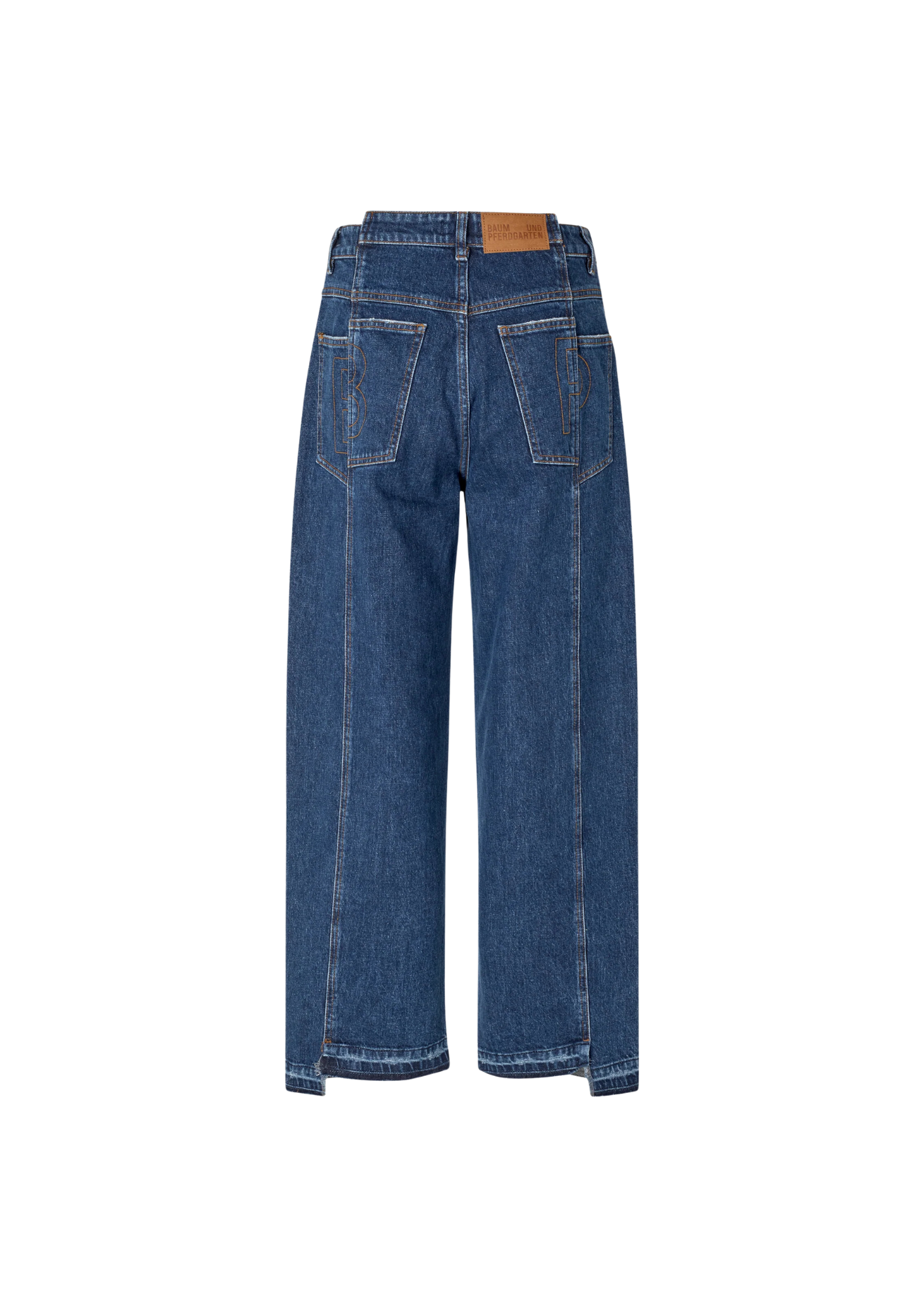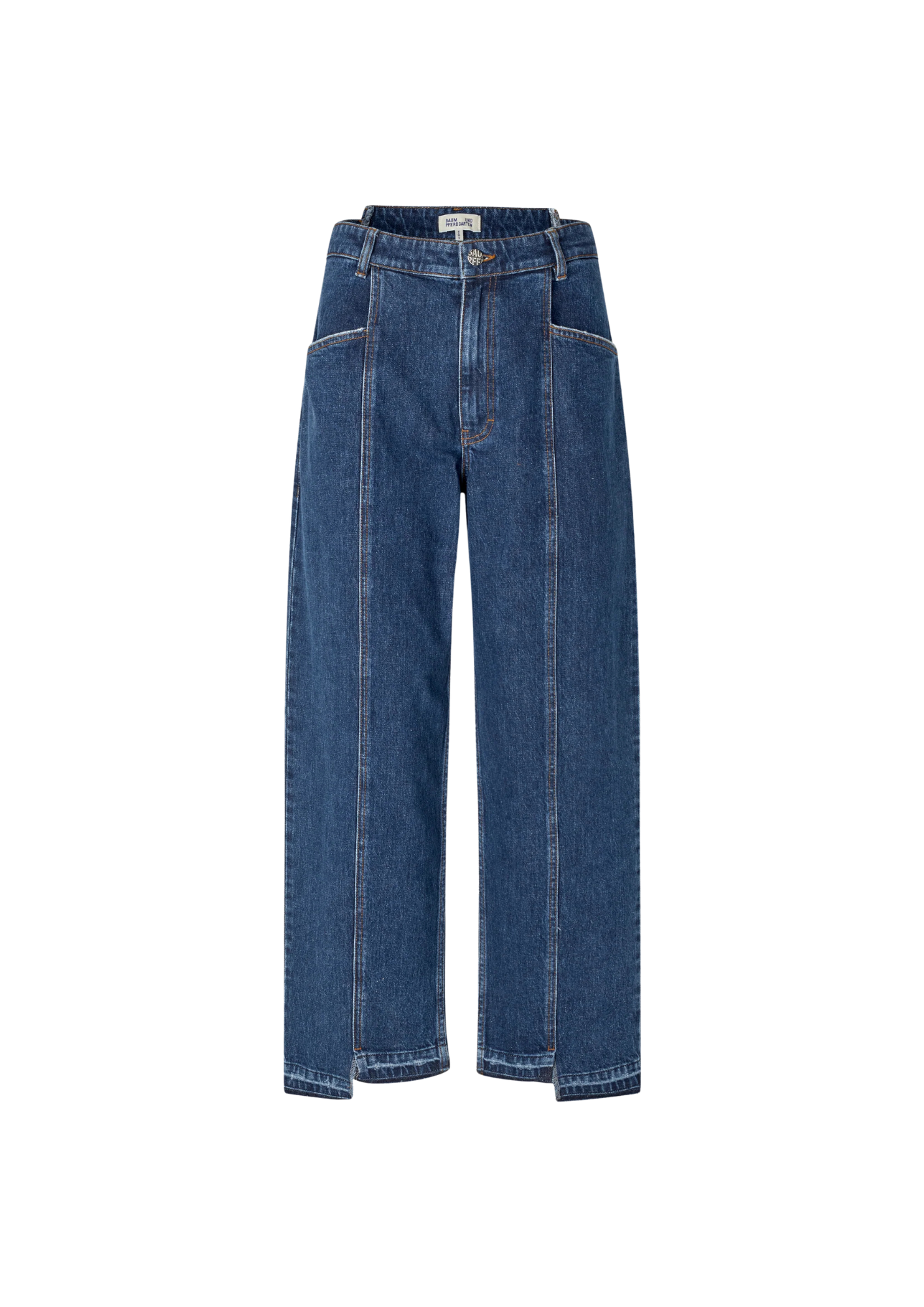 De Nanya Jeans zijn een coole variant op een klassieker met wijde pijpen en een zichtbare naad aan de voor- en achterkant. De denim jeans heeft een uniek silhouet dat de jeans bij de naden verdeelt, waardoor zelfs klassieke jeans een statement piece zijn. Combineer ze met een T-shirt voor een relaxte look of draag er een van onze blouses bij voor een chiquere look.