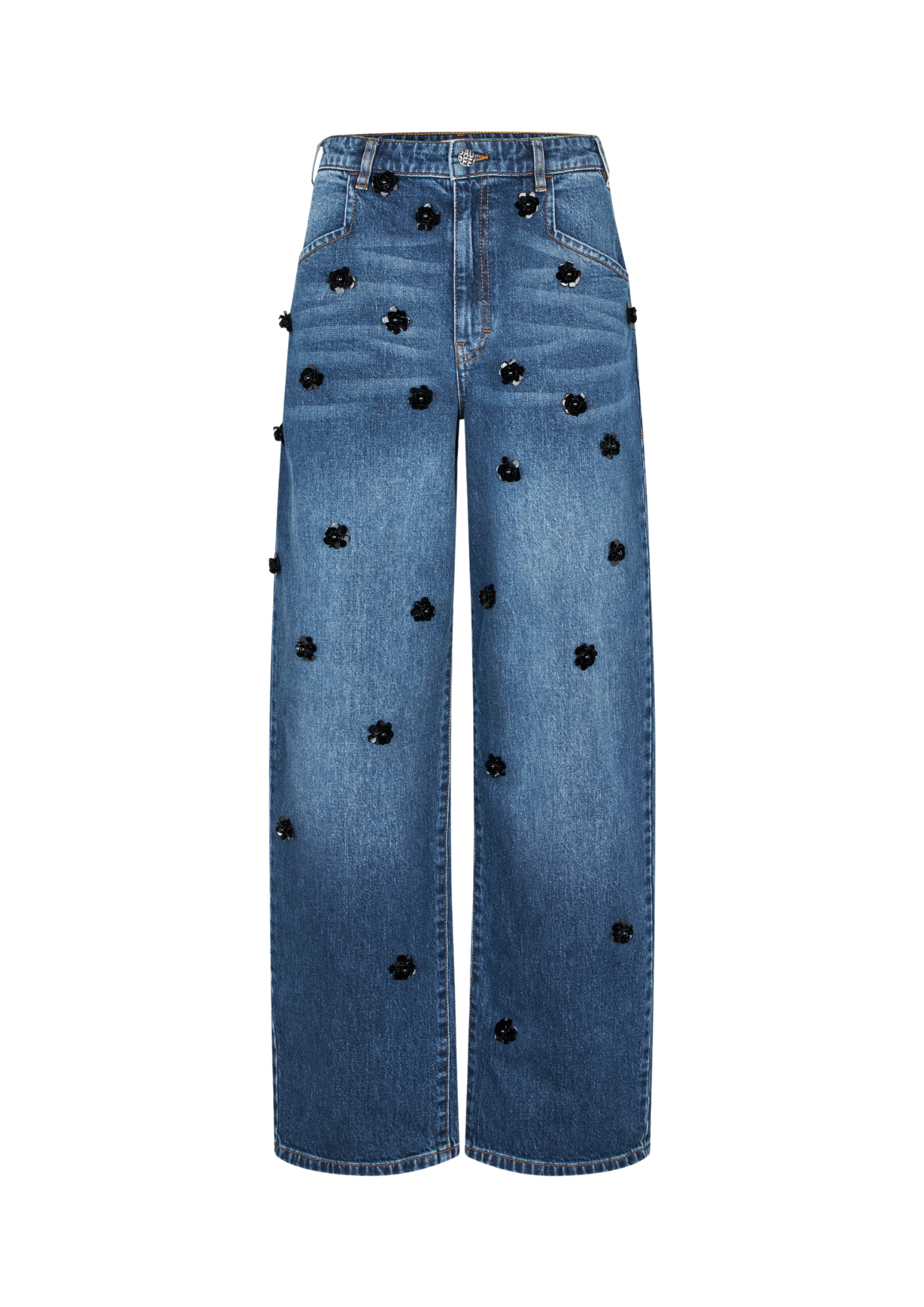 De Narane jeans geven een speelse twist aan een tijdloos silhouet met sprankelende paillettenbloemen op de voorkant. De high-waisted denim jeans is gemaakt van biologisch katoen en heeft wijde pijpen en een comfortabele, losse pasvorm. Combineer hem met je dagelijkse garderobe of maak de sprankelende denimset compleet met onze Beannie Jacket.