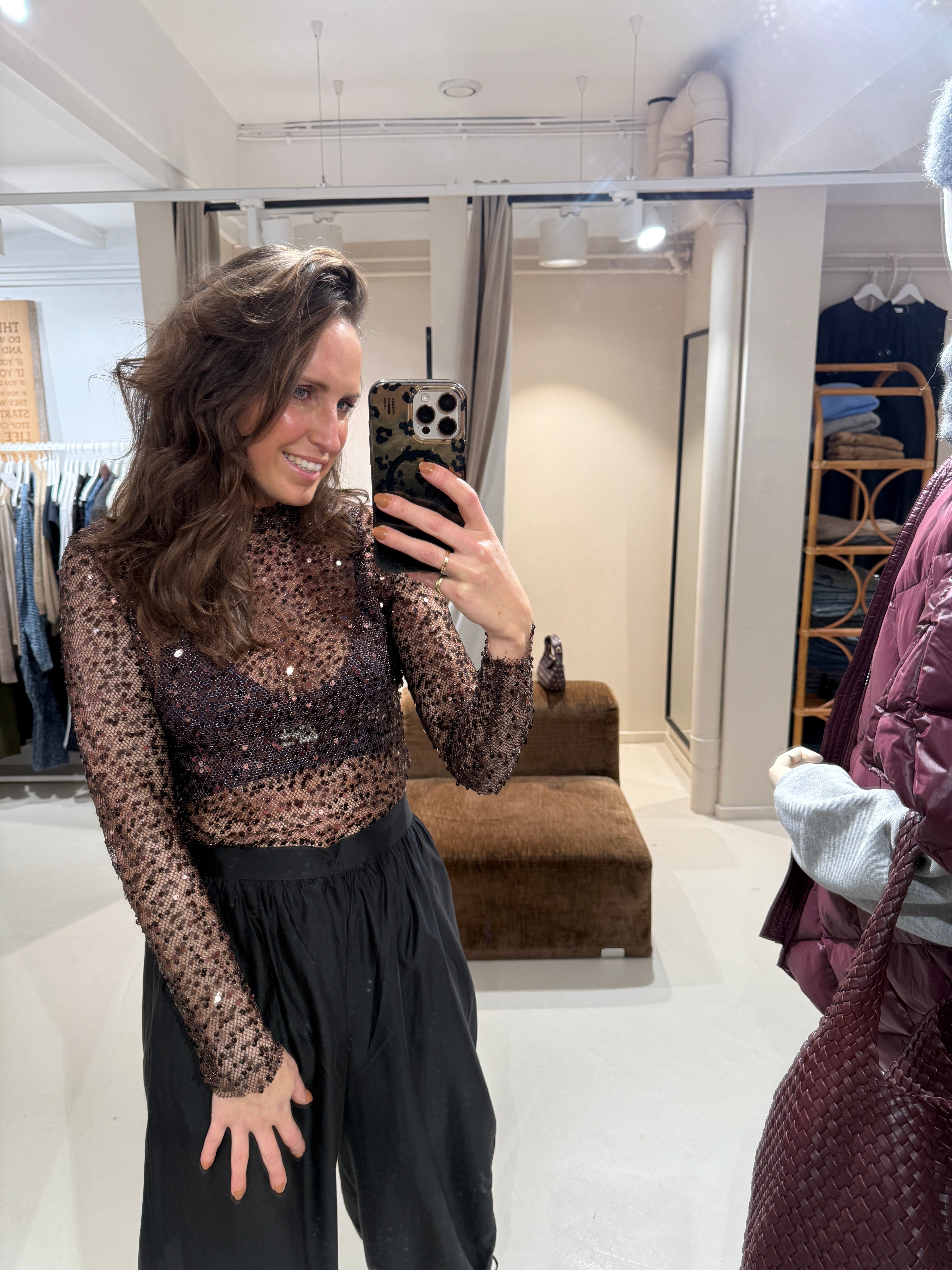 M/L / Brown / Pailletten Shirt 6279 - €49.99