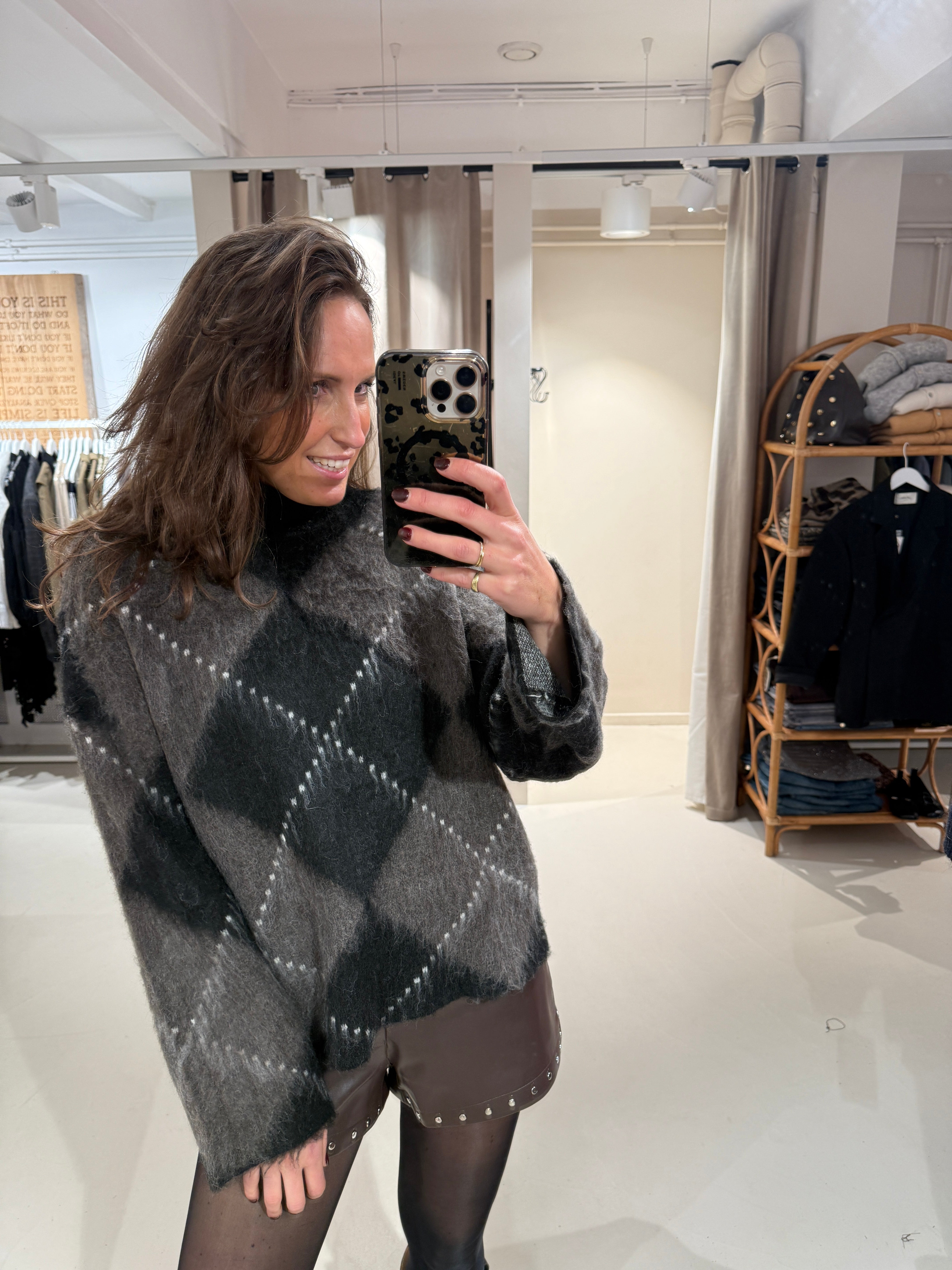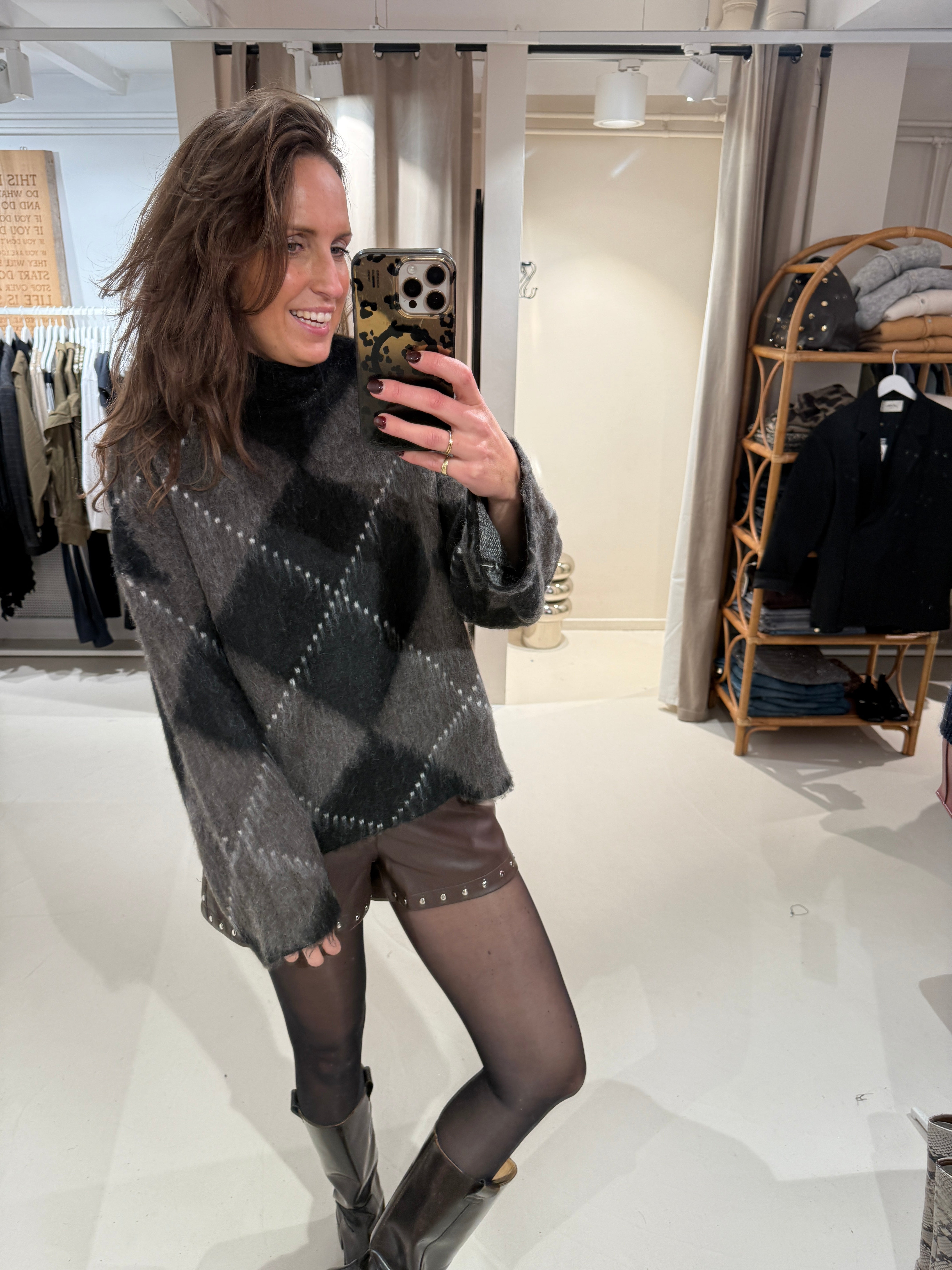 Fijn aangesloten top met lange mouwen met gouden knoopjes aan de manchetten in een heerlijke ribstof.