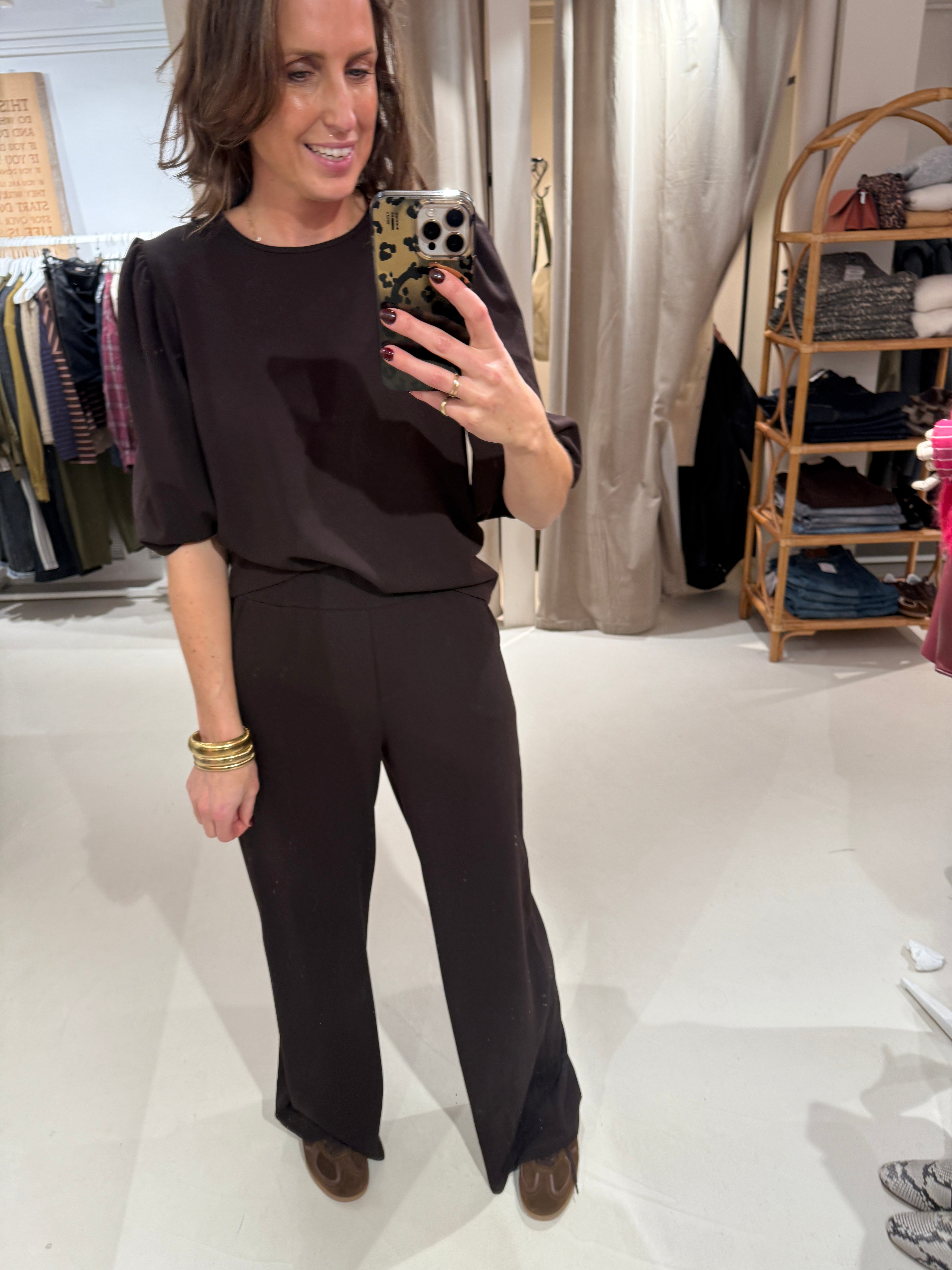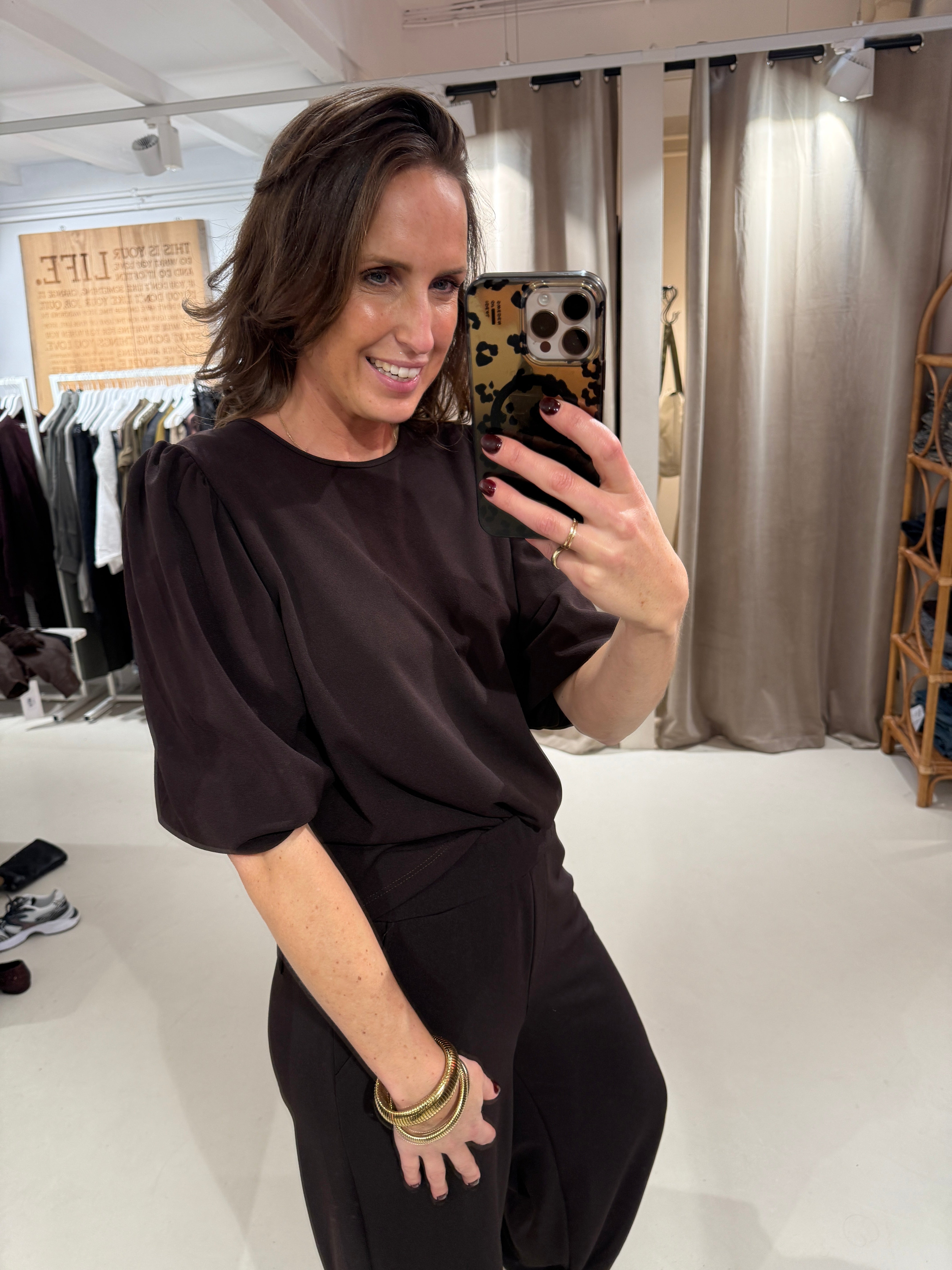 Aansluitend truitje met korte mouwen en een subtiel glimmertje.