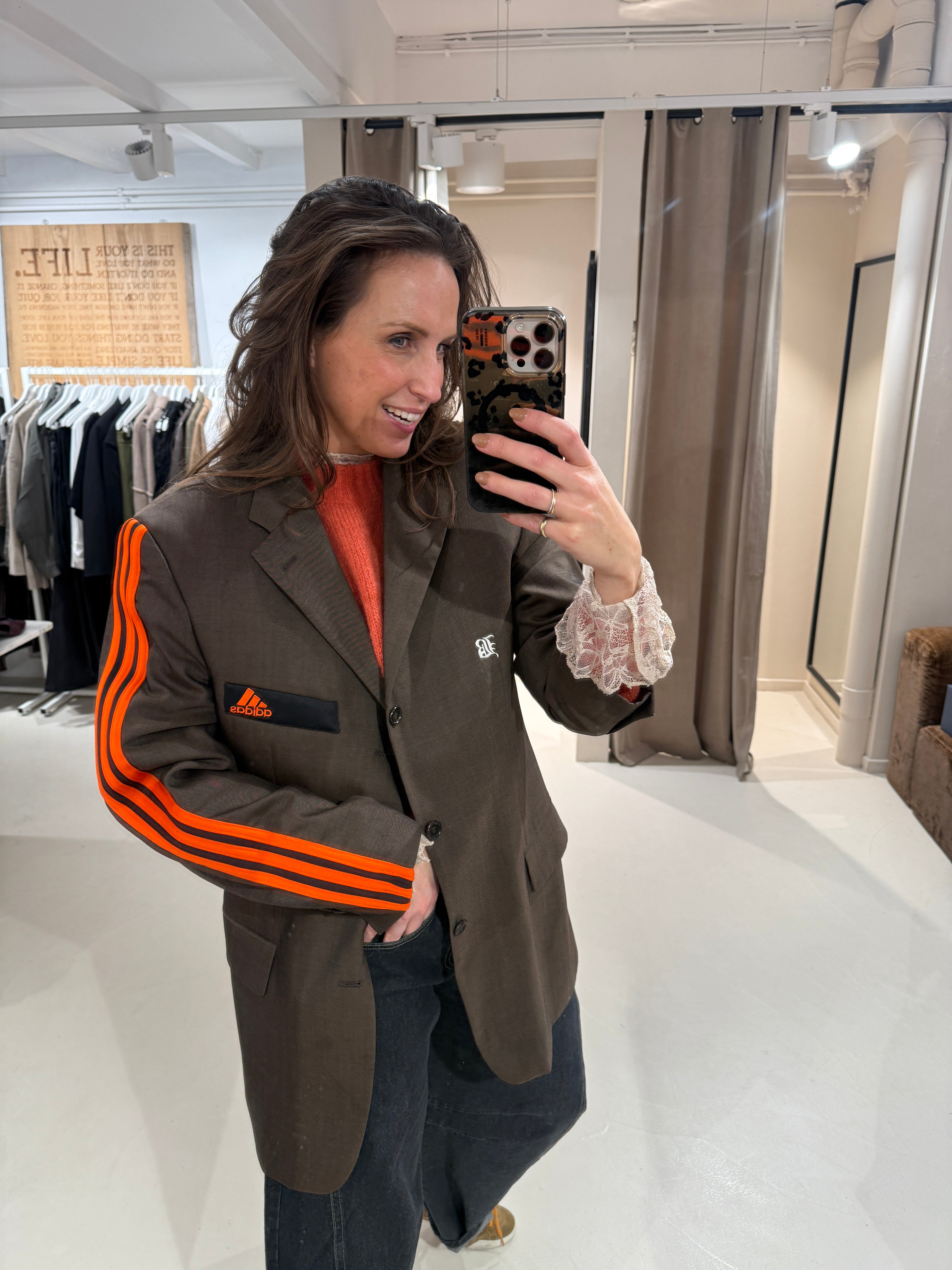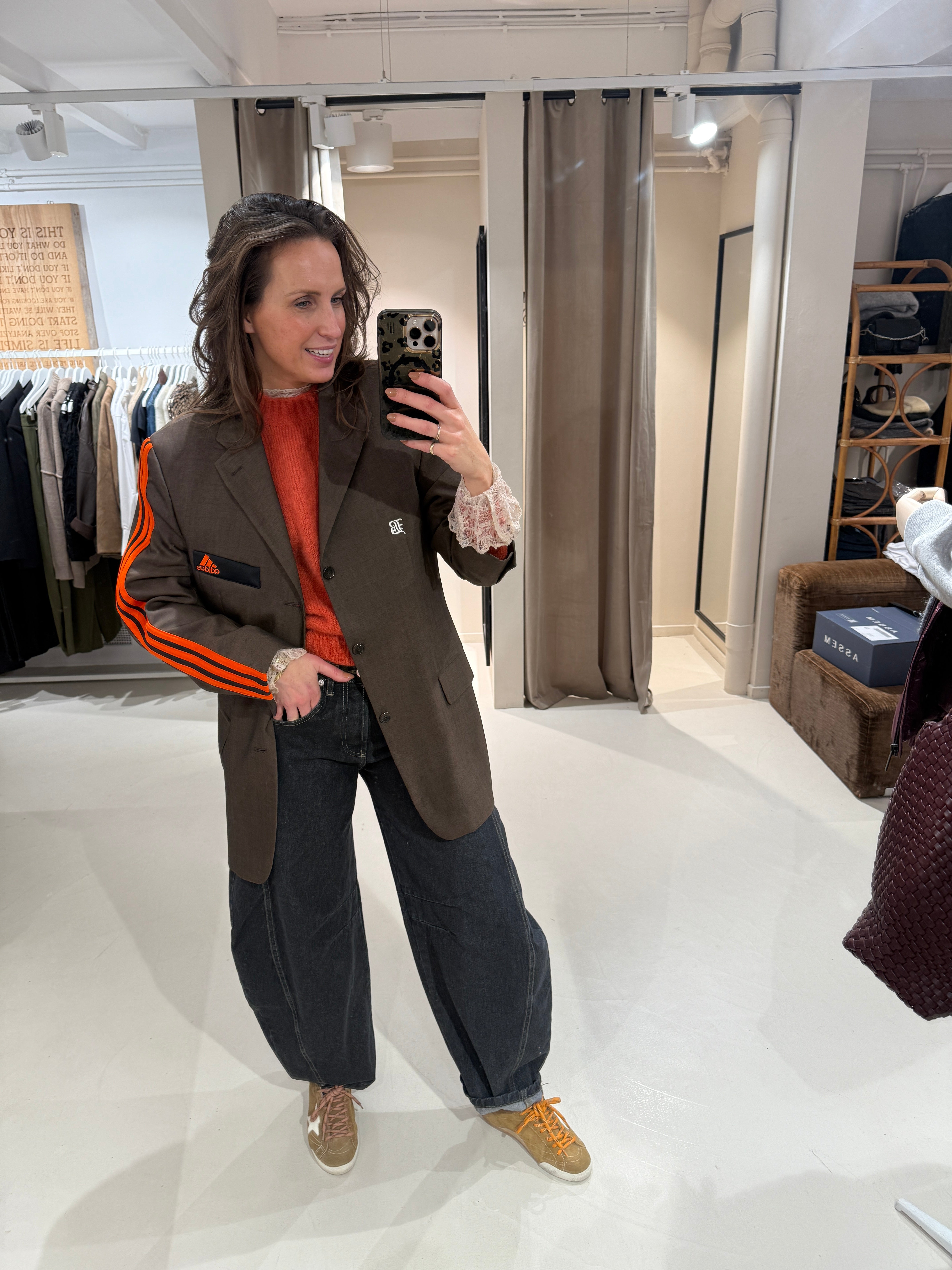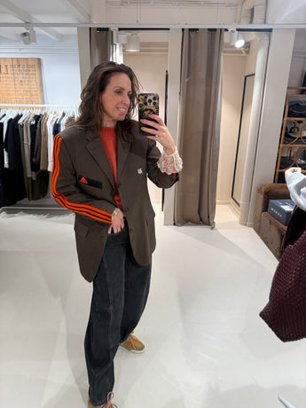 Blaze is een Amsterdams modemerk. Hun doel is om vrouwen te inspireren hun individualiteit te omarmen. De kern van het merk is om vintage items een nieuw leven te geven, terwijl ze het tegelijkertijd opfleuren met uniek maatwerk en een aantal eigentijdse accenten toevoegen aan tijdloze vormen. Iedere blazer is uniek en qua pasvorm is het aan te passen naar eigen stijl. Je kan hem oversized dragen of wat meer aangesloten. Valt als een S, mooie stevige stof.