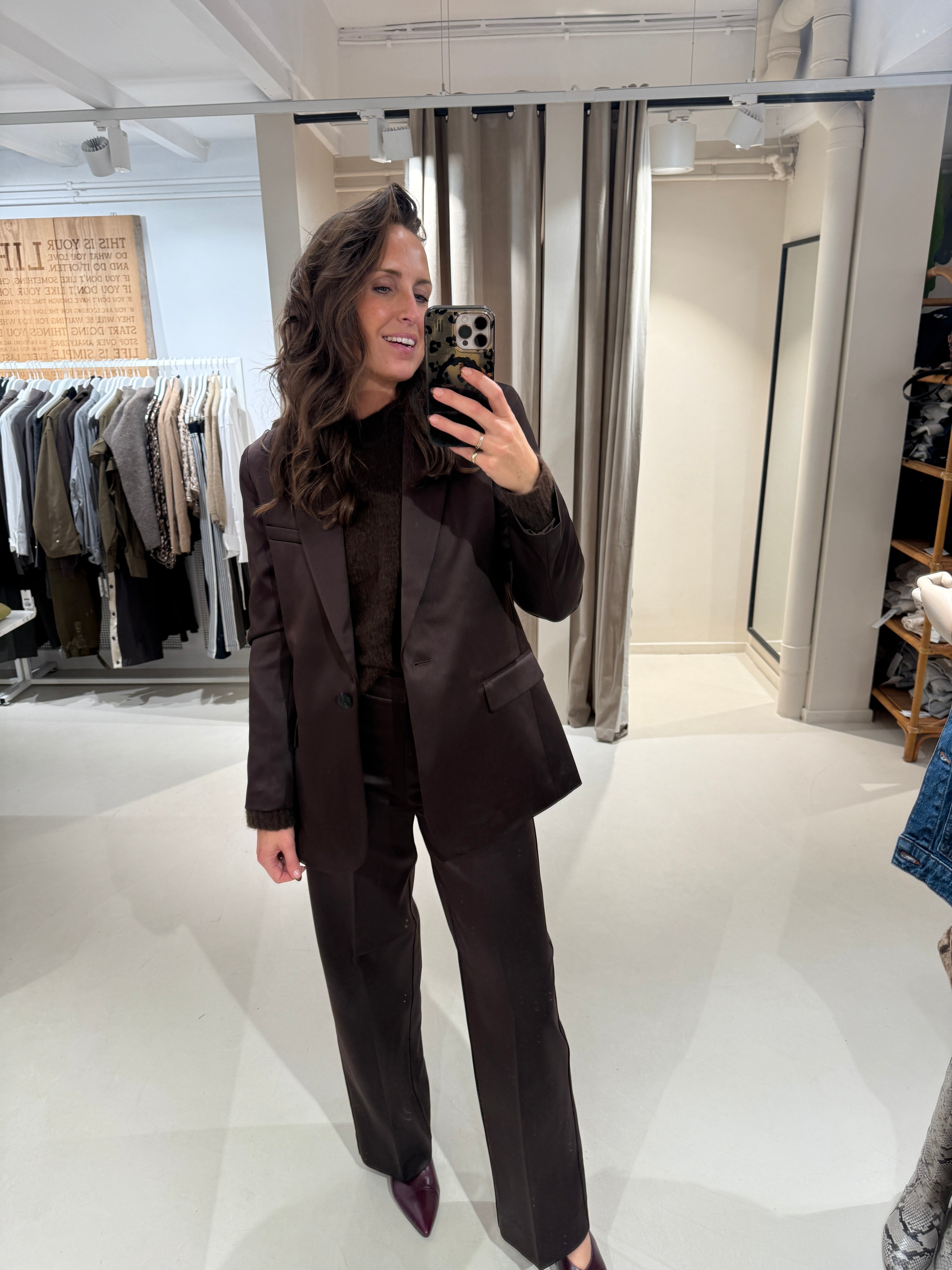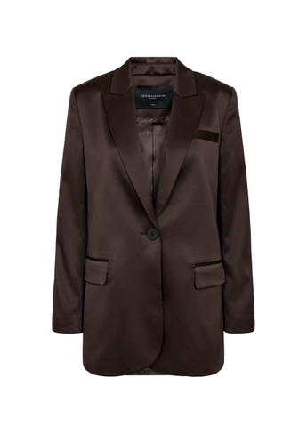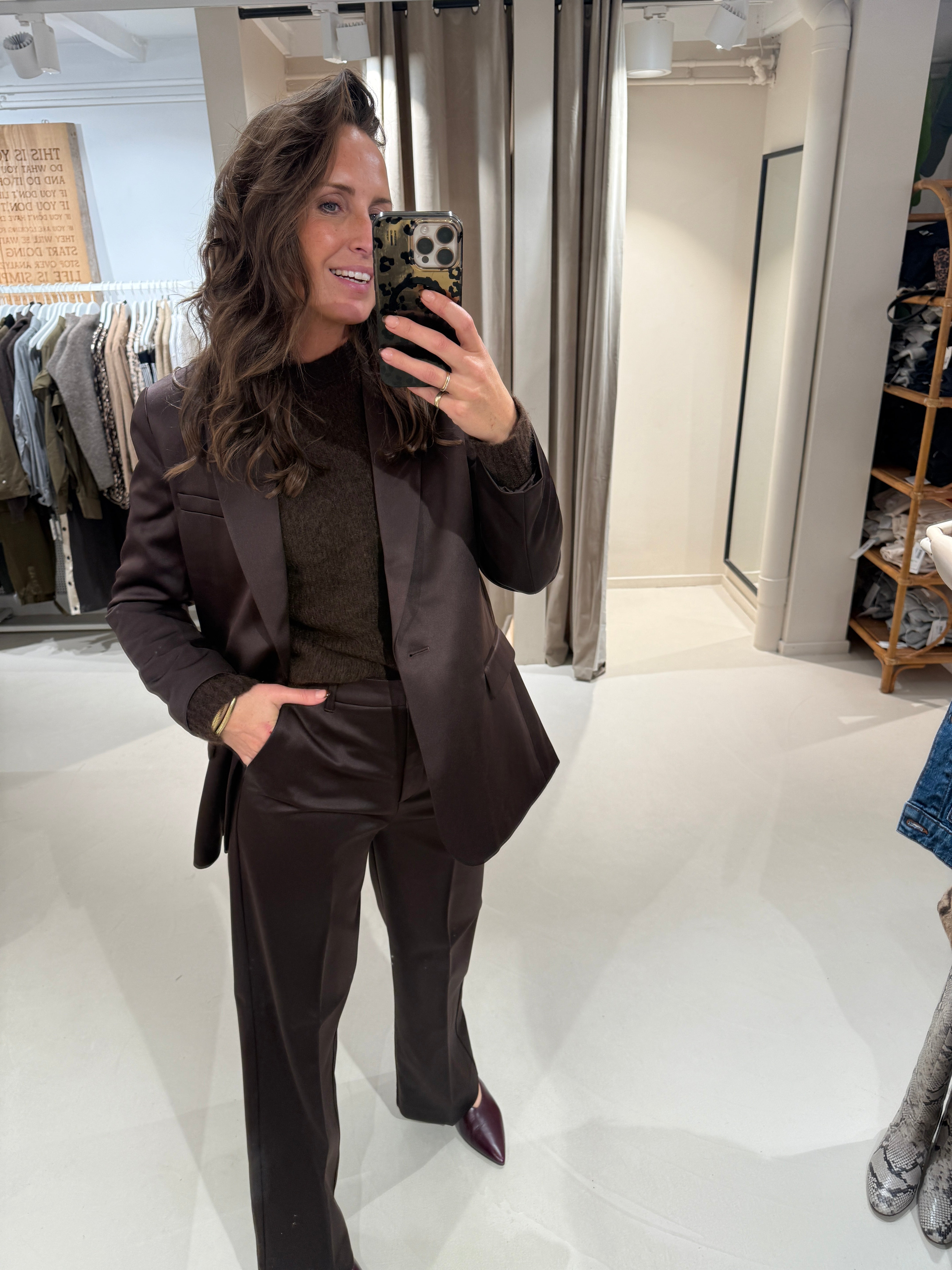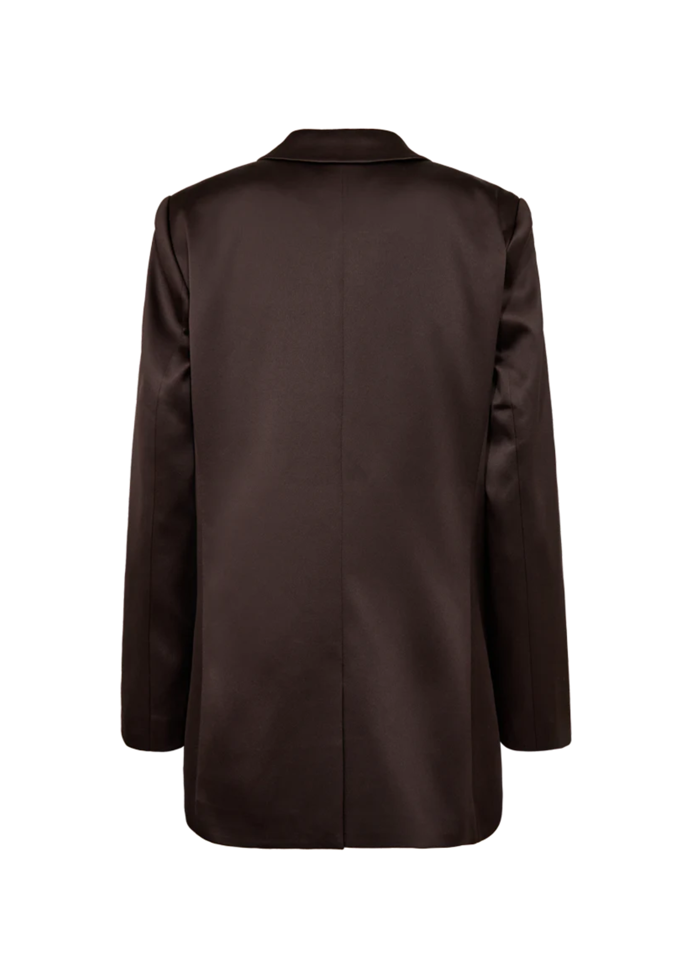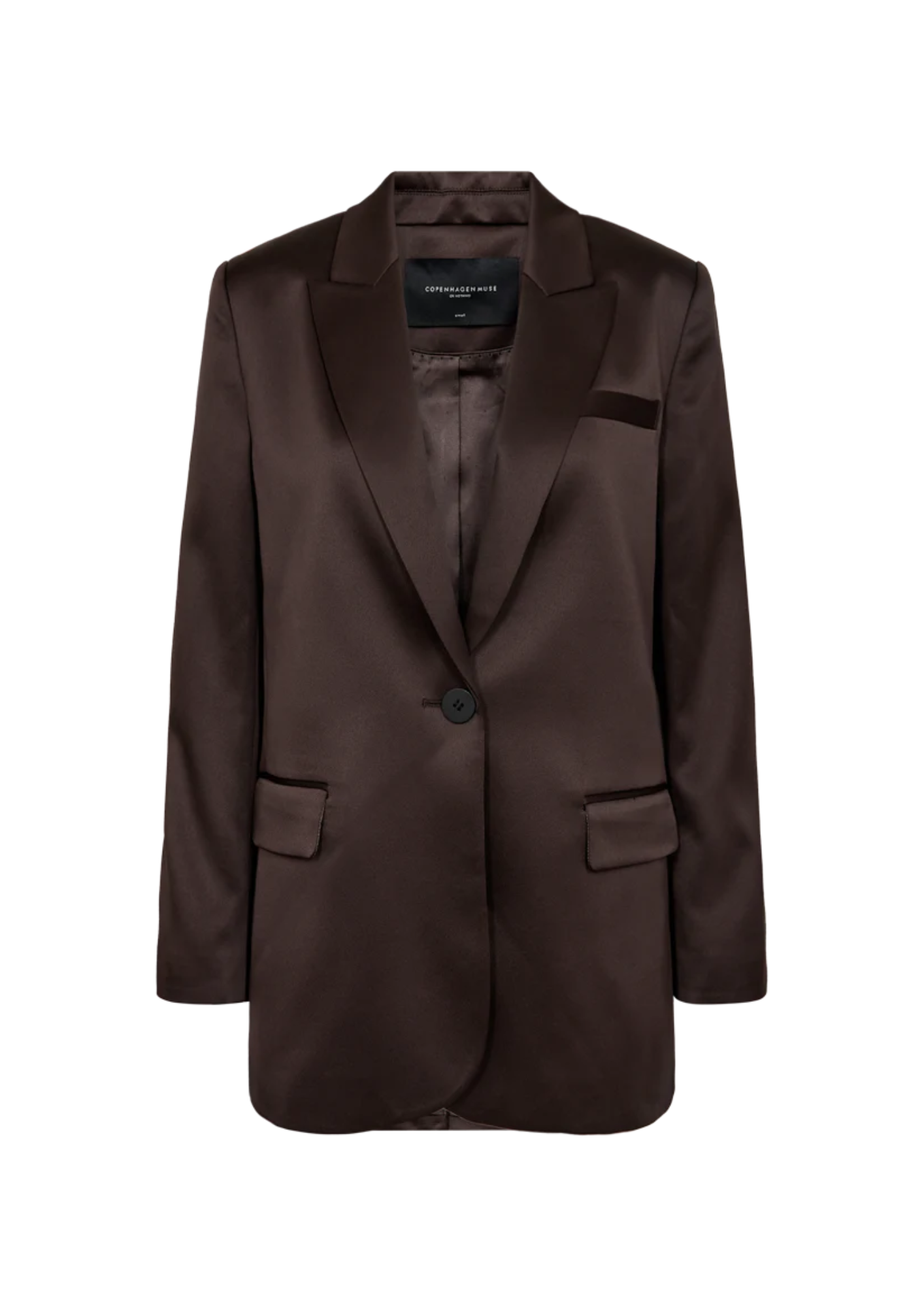 CMSHINE-BLAZER is een blazer van luxe, zware satijnen stof met logoprintvoering, een normale pasvorm, een split in de rug, brede schouders, een V-hals met revers en een knoopsluiting aan de voorkant.