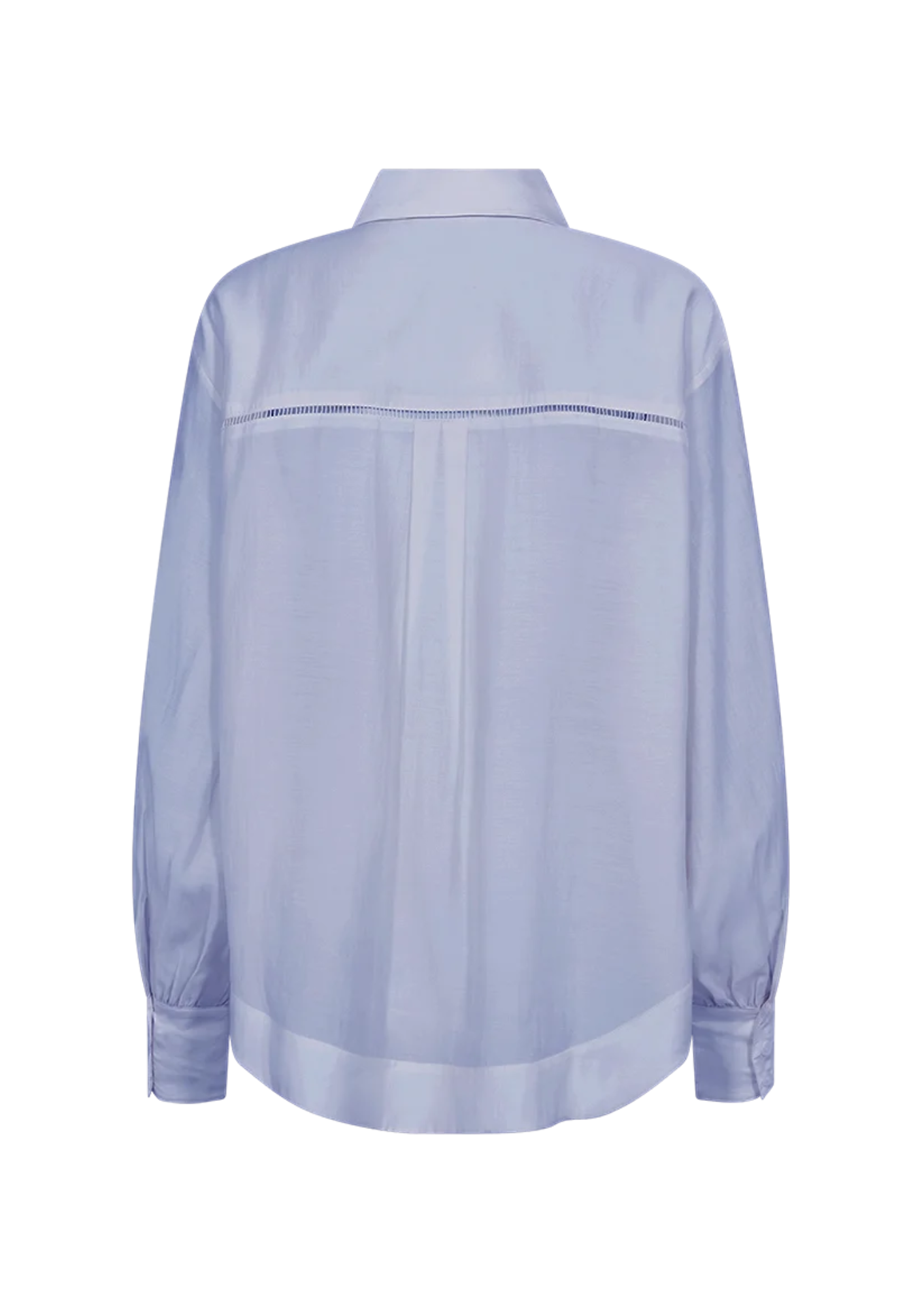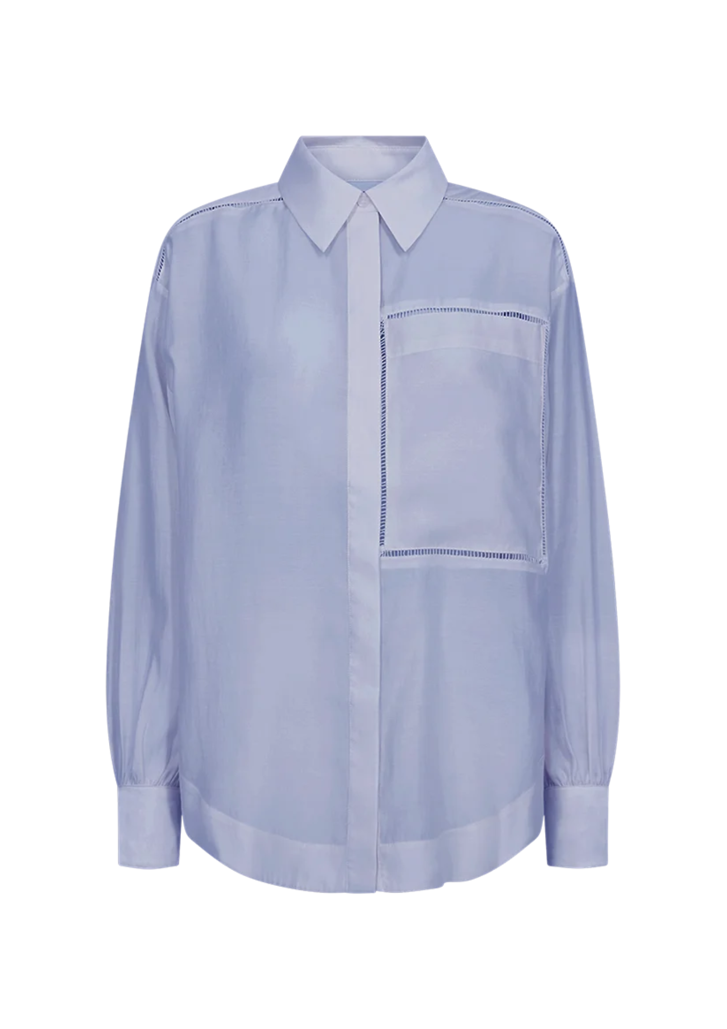 Het CMMOLLY-SHIRT is een shirt met lange mouwen van een hoogwaardig materiaal, met een verborgen knoopsluiting aan de voorkant, een oversized pasvorm, een grote borstzak en kanten inzetstukken voor een stijlvolle look.