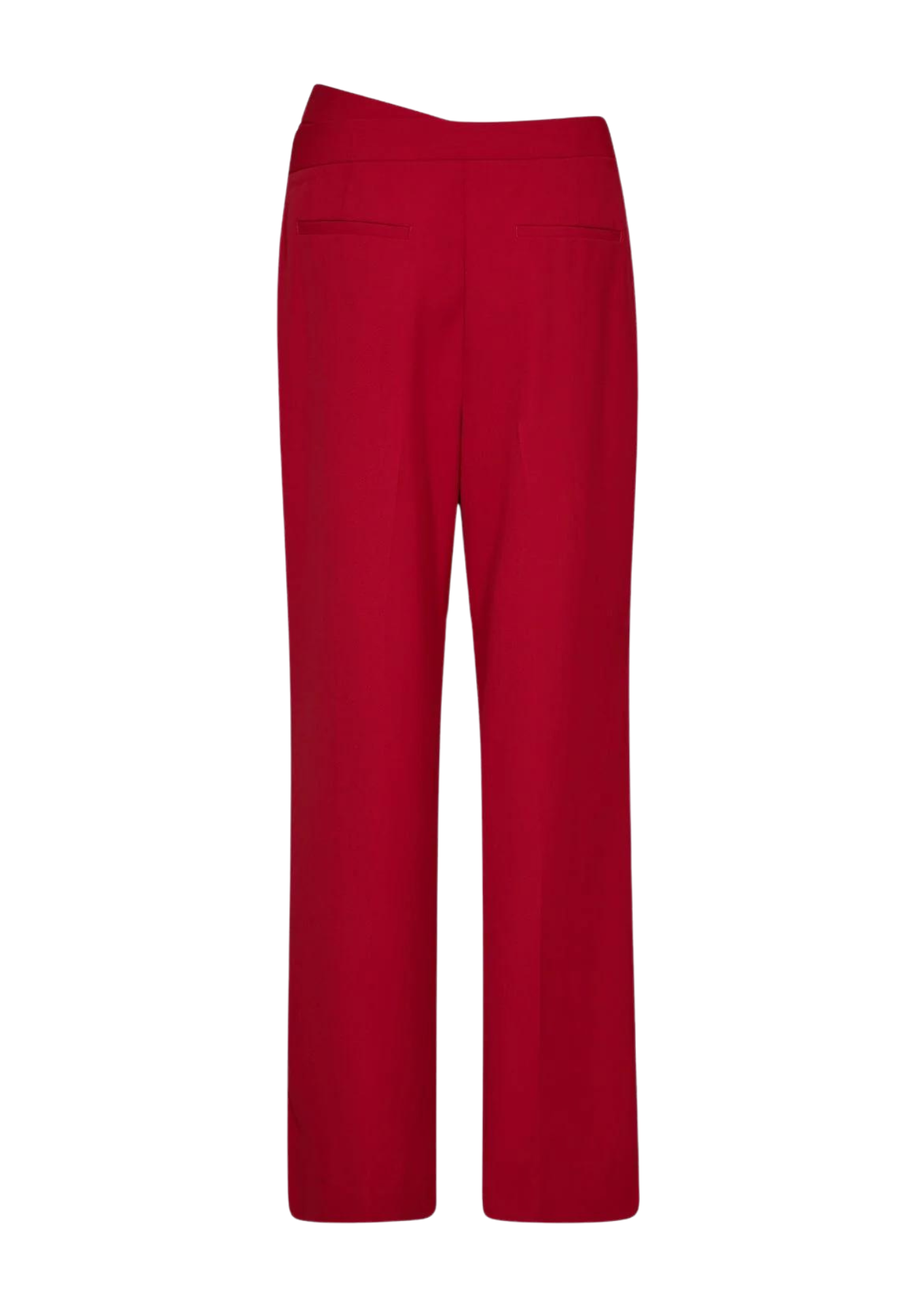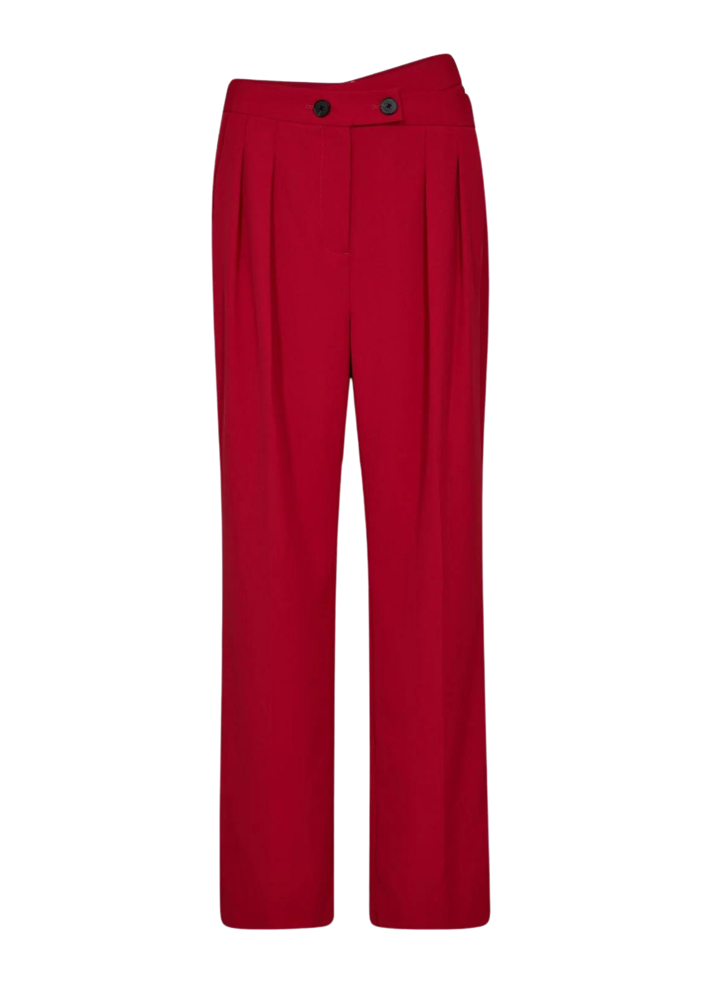 Mooie loshalende broek van het Deense merk Co'Couture. Ontworpen met plooien, een hoge schuine taille en een rits- en knoopsluiting. De broekspijp is lekker lang en loopt recht. Het model is 178cm en draagt maat S.