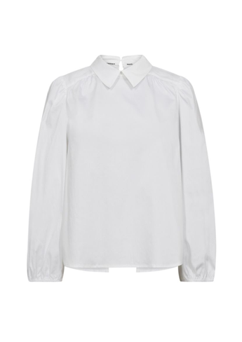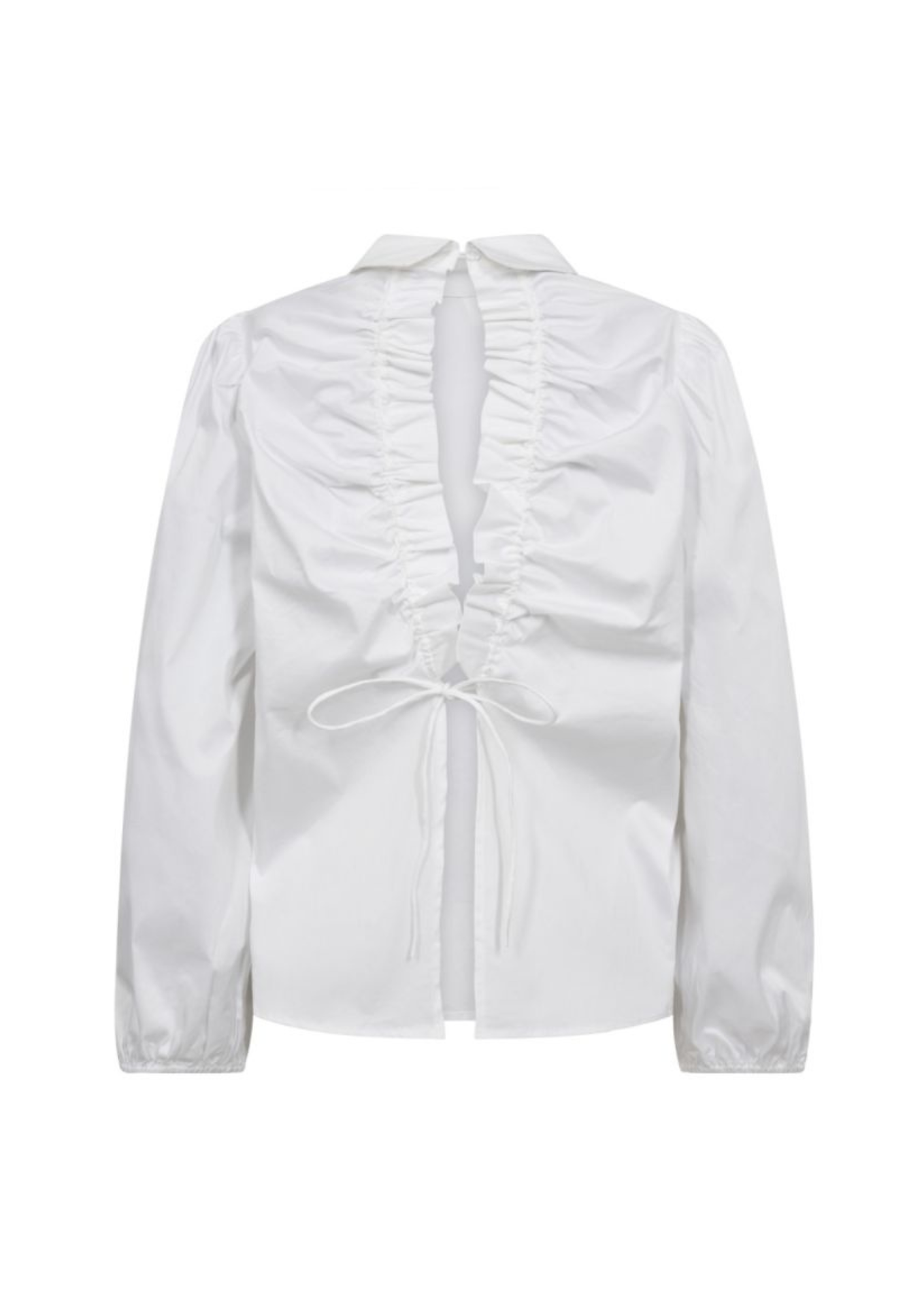 De SannaCC Drawstring Blouse in wit van Co'Couture is een echte eyecatcher met een vrouwelijke vibe. De open achterkant met speelse ruches en strikje geeft 'm een romantische touch, terwijl de klassieke kraag en pofmouwen met elastiek juist zorgen voor een stijlvolle balans. De luchtige, gladde stof valt lekker soepel en zit supercomfortabel. Of je 'm nu draagt op een jeans of een chique broek – deze blouse tilt elke look moeiteloos naar een hoger niveau.