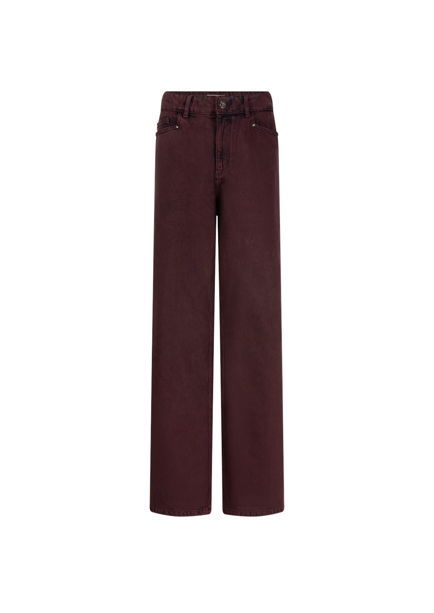 De stijl Nuit in Mulberry Red is de perfecte jeans met wijde pijpen voor elke gelegenheid. Deze stijl is gemaakt van 100% biologisch katoen, overgeverfd met pigment en snowwashed voor een unieke afwerking. Ontworpen met een klassieke five-pocket-look, een hoge taille en wijde pijpen, biedt hij de juiste balans tussen comfort en stijl. Of je hem nu formeel of casual draagt, je past altijd bij de look.