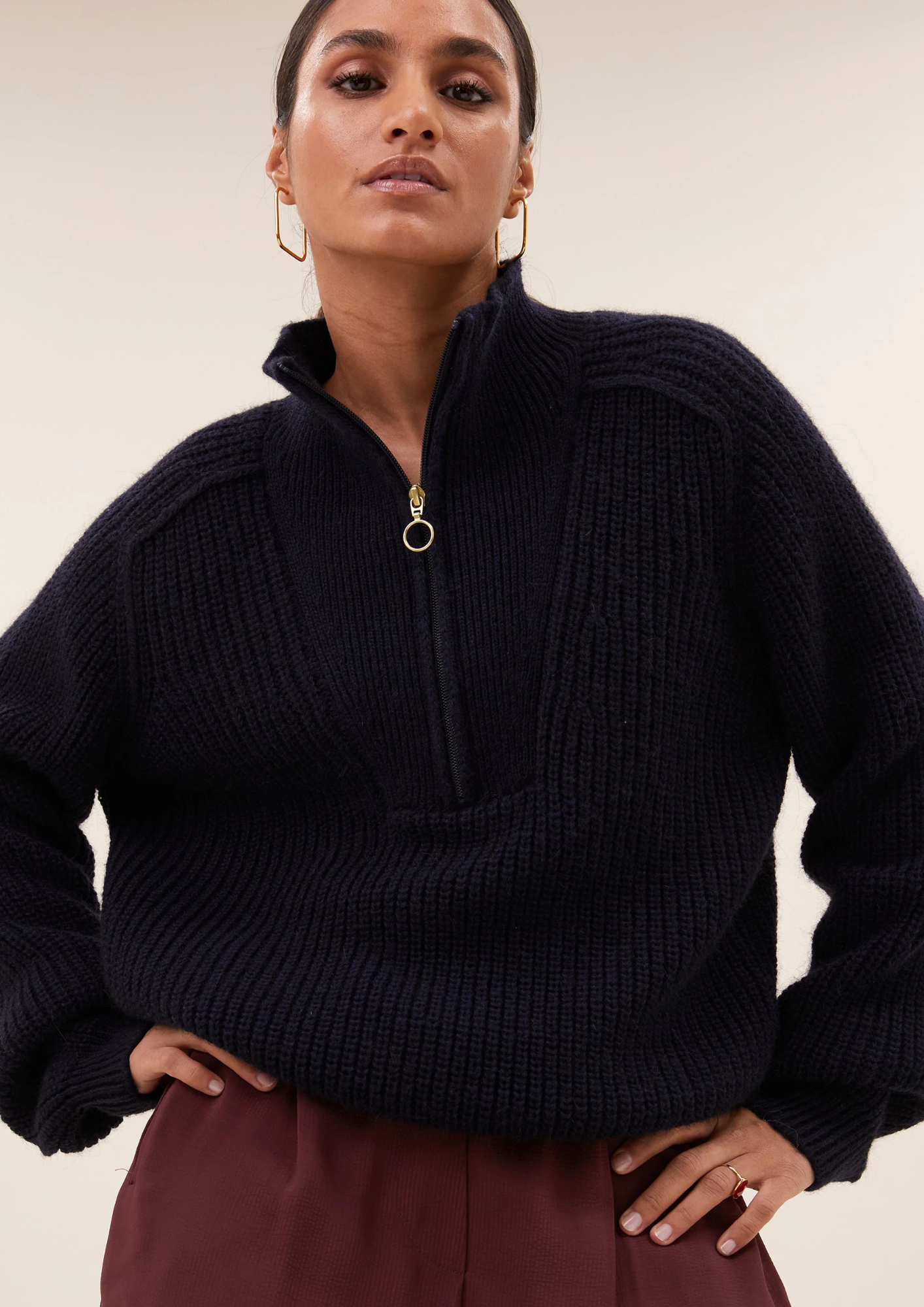 Ervaar het ultieme comfort met de belle pullover, een casual trui met een perfecte normale pasvorm. De zachte wolblend omhult je in warmte, terwijl het stijlvolle ribpatroon een tijdloze uitstraling geeft. De opstaande kraag en ritssluiting voegen een eigentijdse touch toe, ideaal voor elke dag.