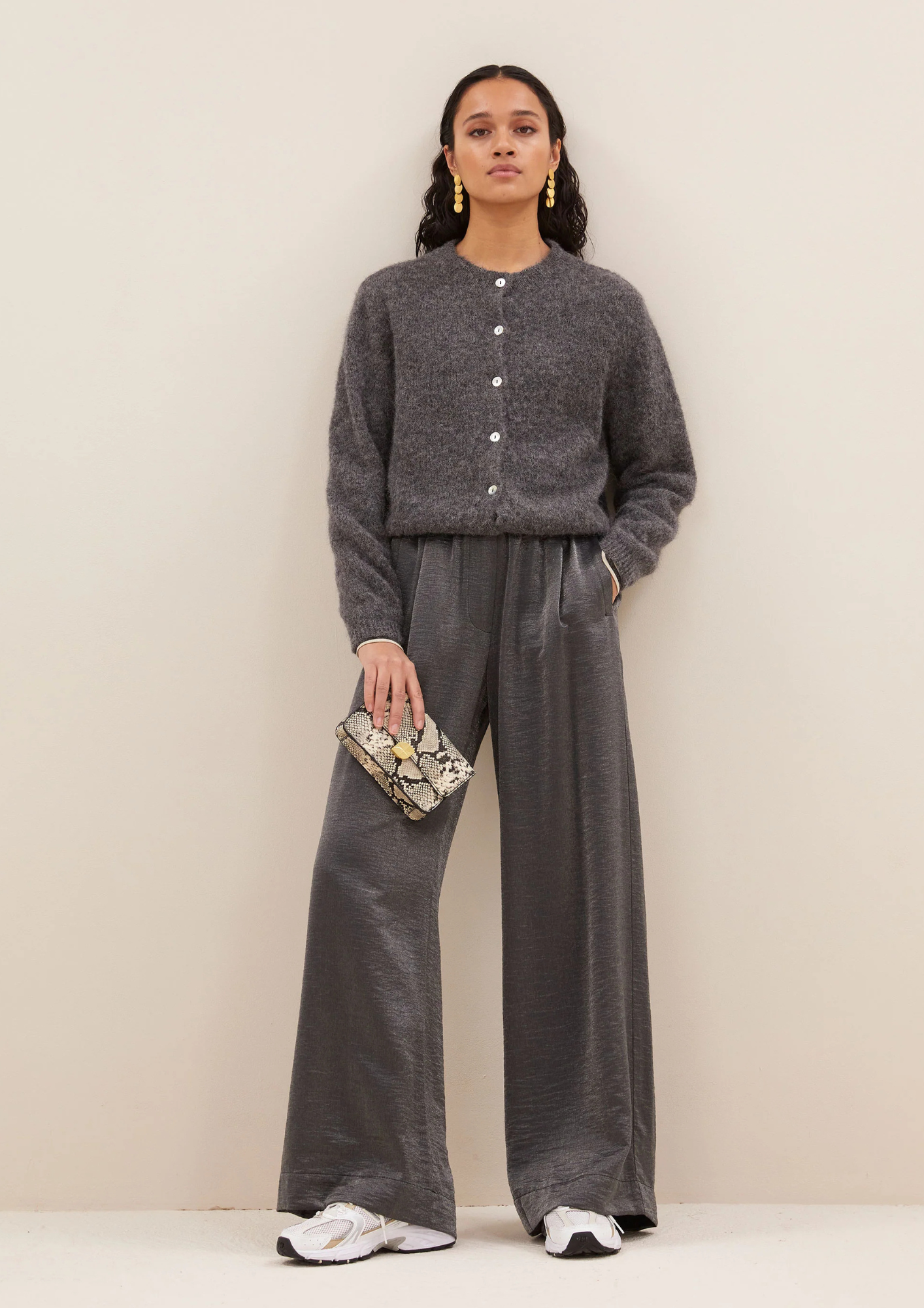 De benji metallic pants combineert comfort en stijl met een losse pasvorm en hoge taille. Dankzij de elastische band en verborgen steekzakken geniet je van een perfecte fit en praktische opbergruimte. De geplooide details geven deze broek een verfijnde uitstraling, ideaal voor gelegenheden waarbij je wilt stralen.