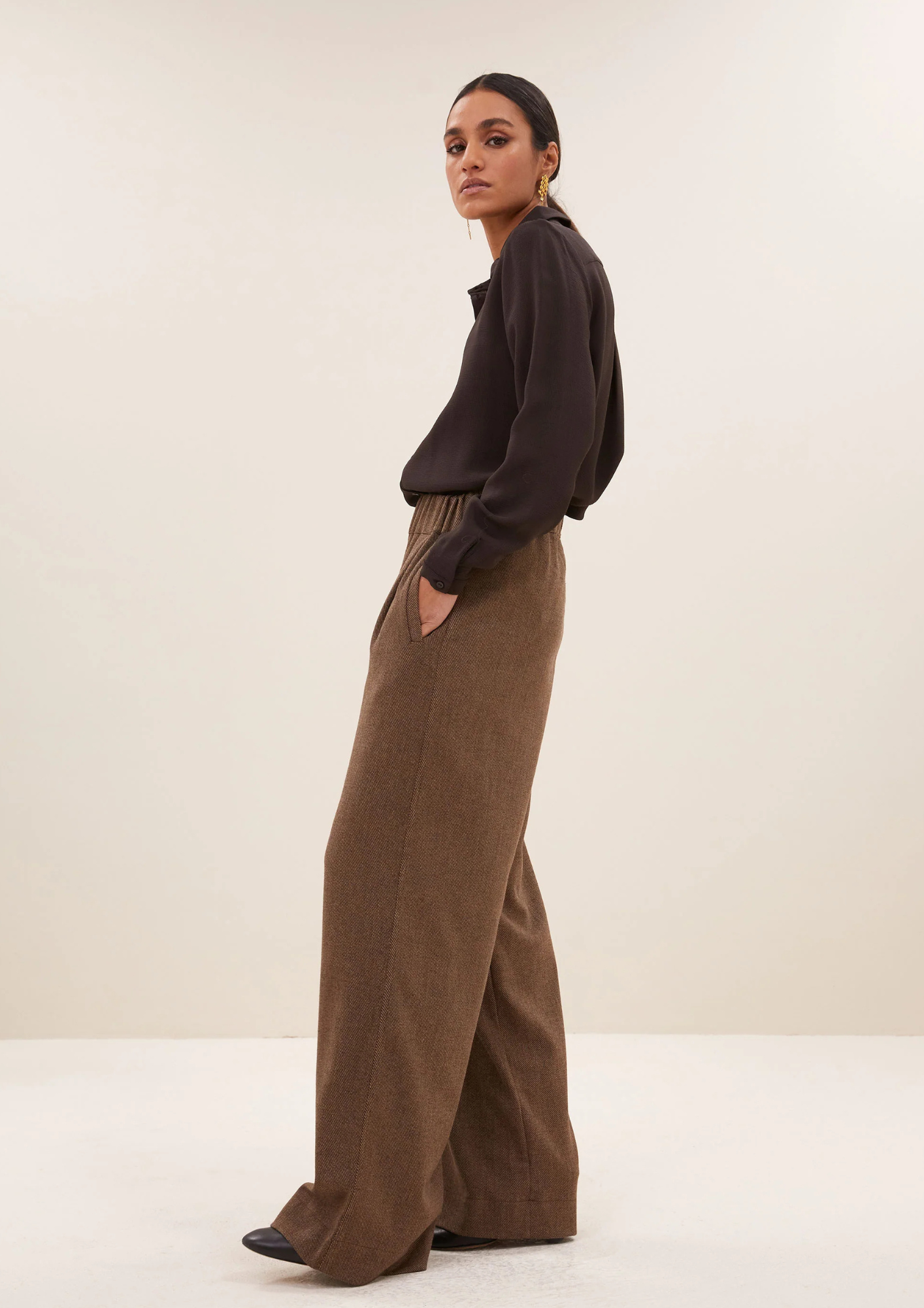 Ontdek het comfort van de benji tweed pants, perfect voor een casual look met een losvallende pasvorm die moeiteloos beweegt. Dankzij de elastieken band en steekzakken geniet je van gemak en stijl in één. De normale taille en lange lengte maken deze broek een veelzijdige must-have voor elke dag. Ideaal voor wie op zoek is naar comfort en elegantie!