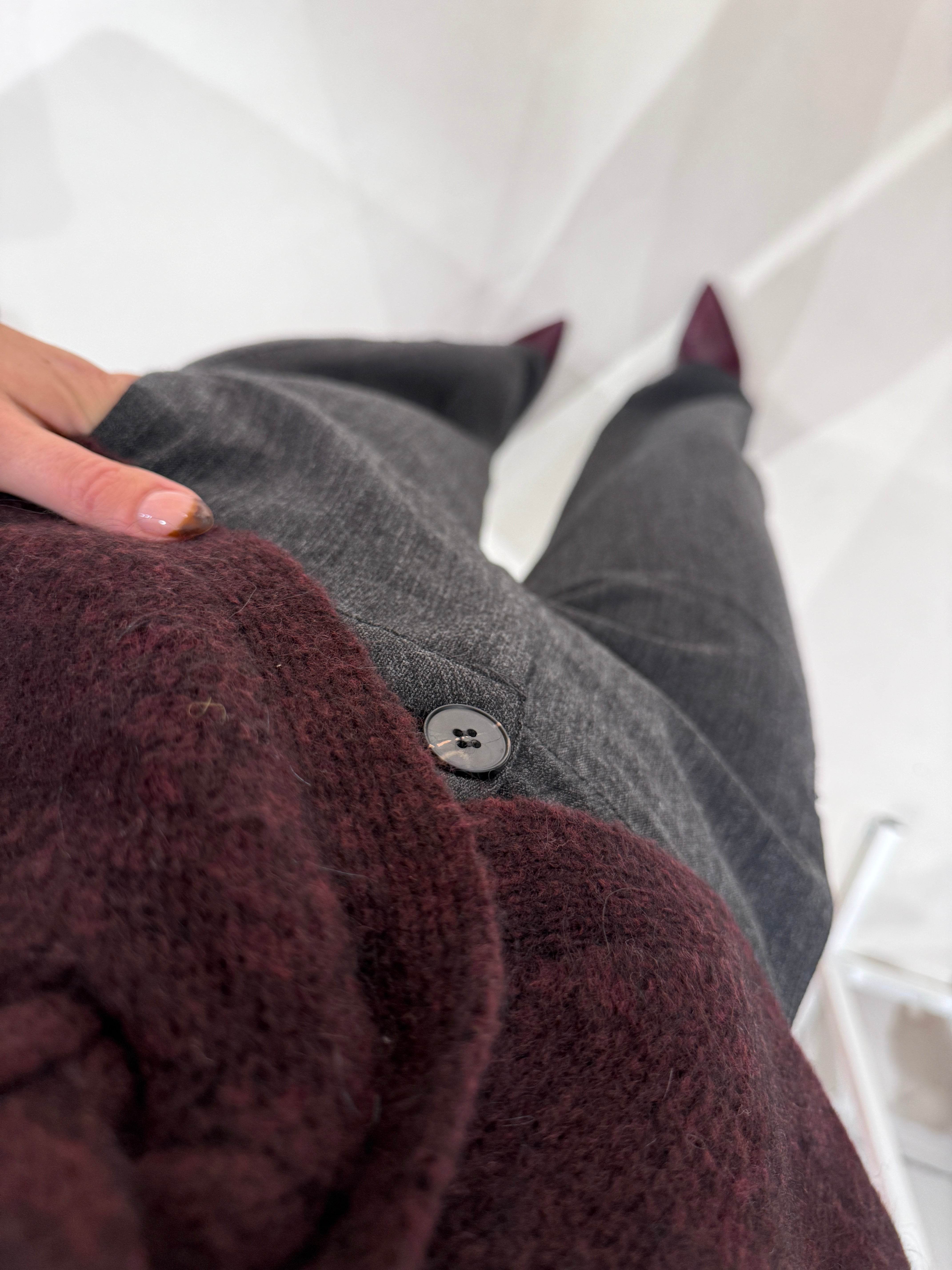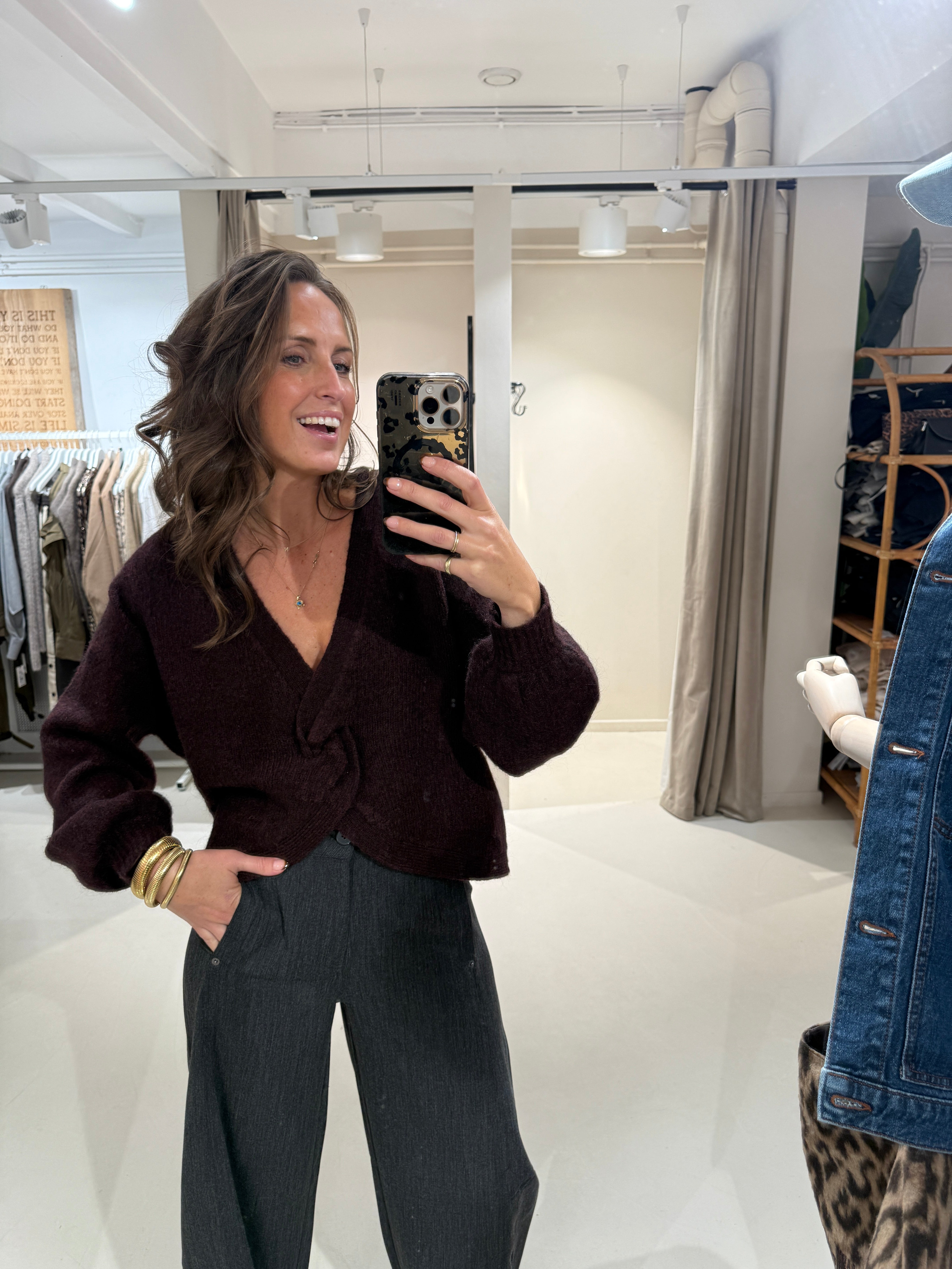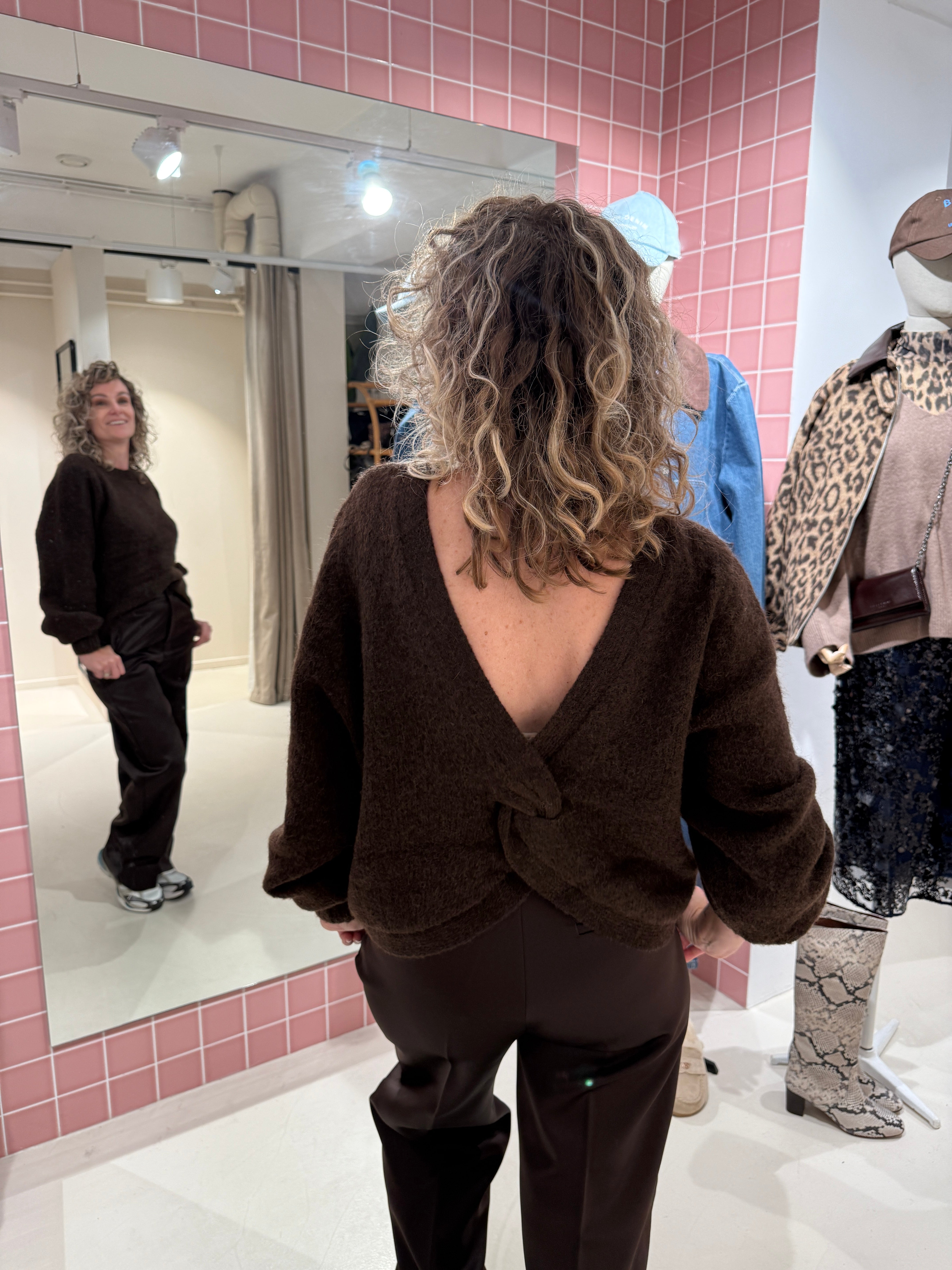 Yes daar is 'ie weer, onze favoriete knit. Deze prachtige grijze trui met gedraaide achterkant zorgt ervoor dat er een mooie diepe v-hals aan de achterkant van de trui valt! Heerlijke zachte kwaliteit. De maat van de Cozy Twist back valt normaal, wel een losvallend model.