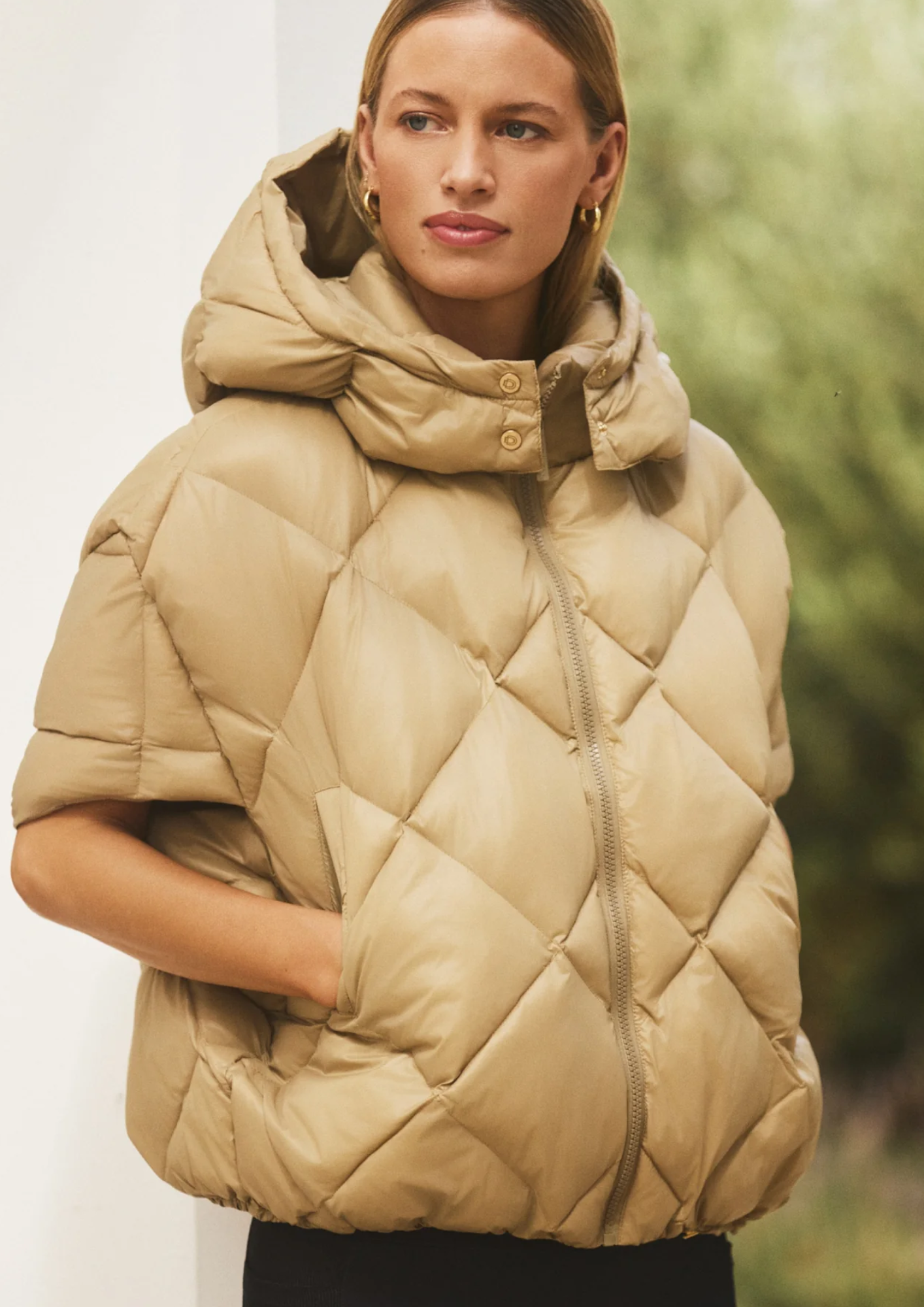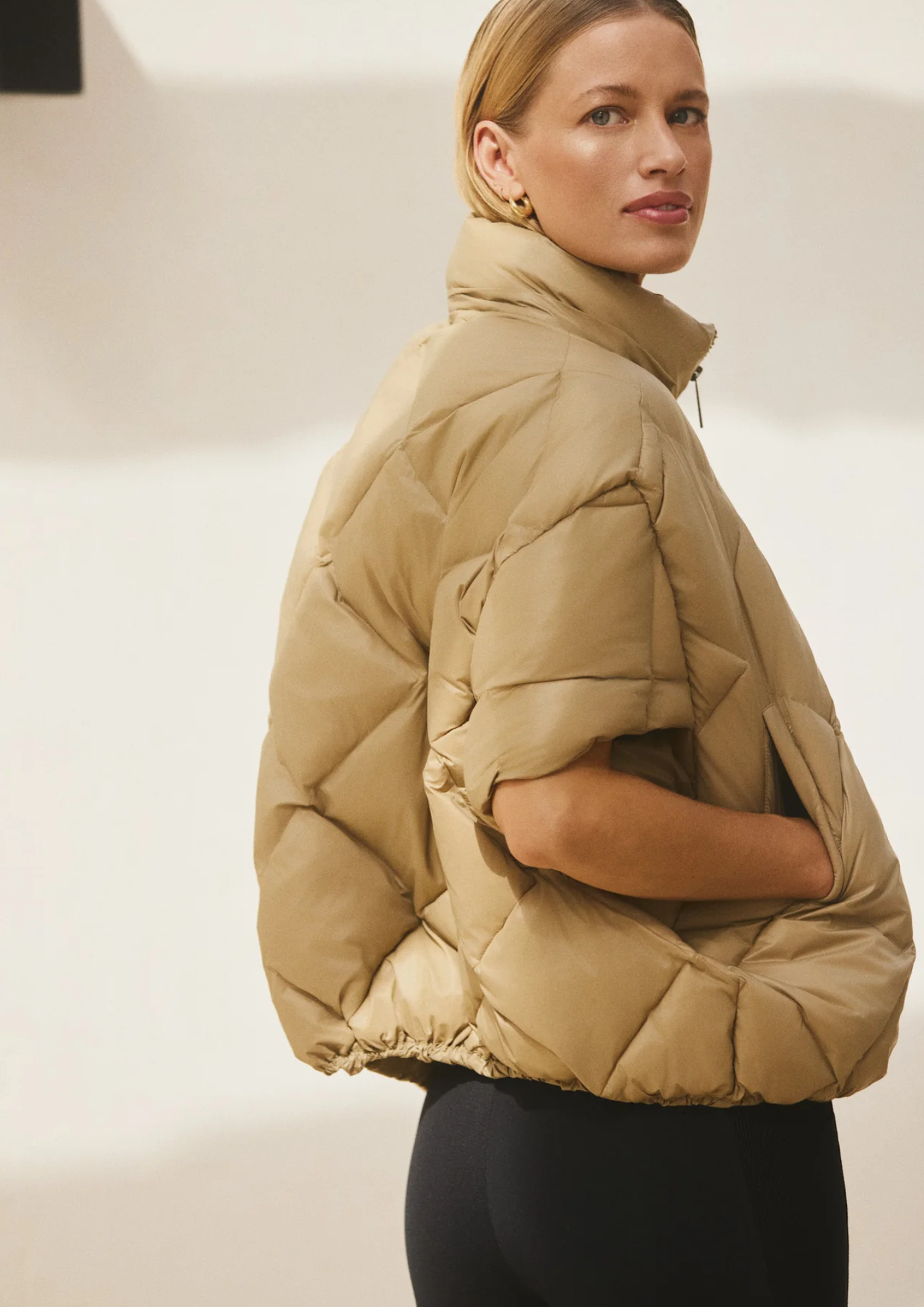 Gemaakt van gladde lichtgewicht tech fabric met subtiele glans. Windwerend en waterafstotend, isolerende vulling, doorgestikt in ruitpatroon.