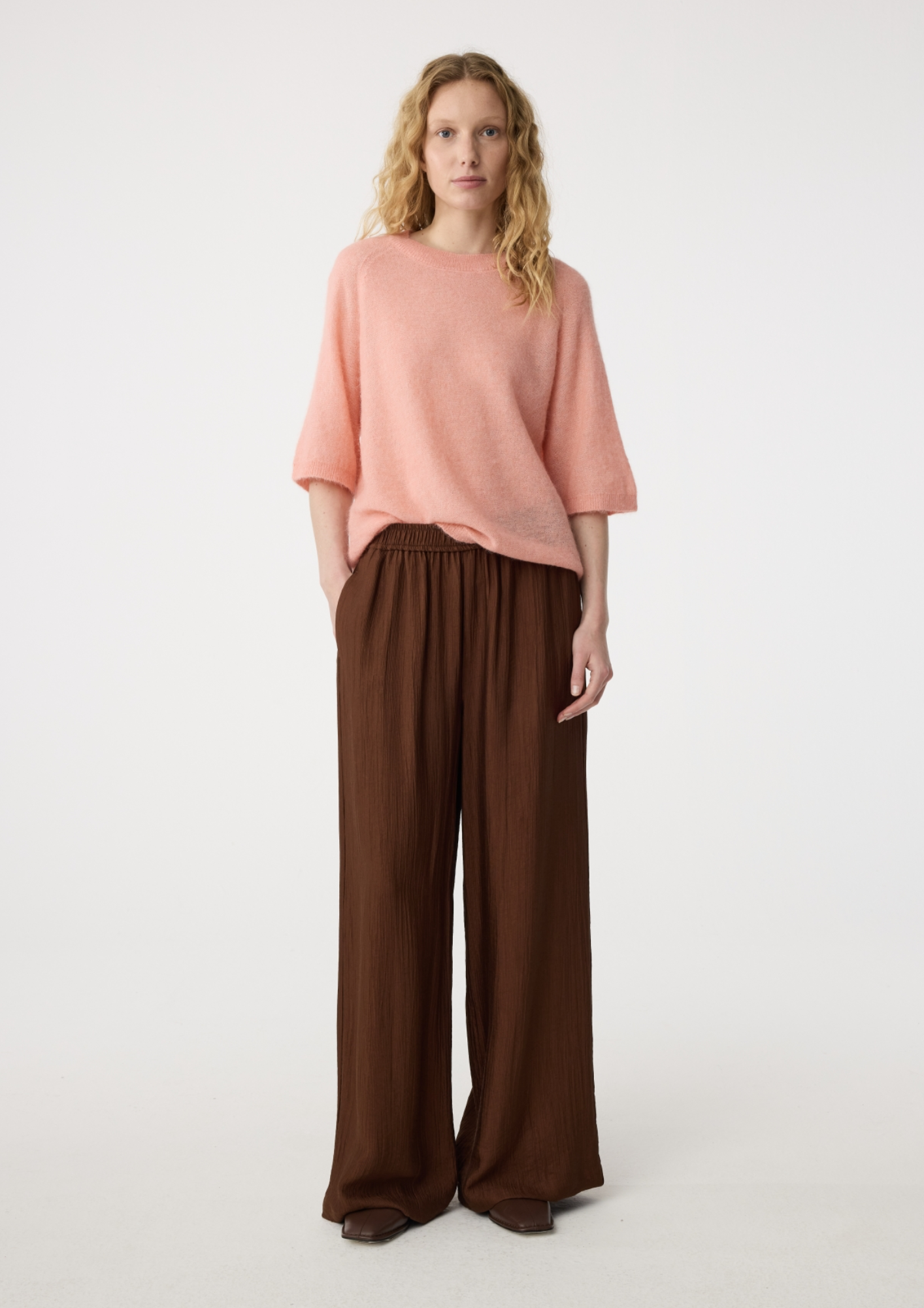 Janou is de broek waar je naar grijpt als je stijlvol én comfortabel voor de dag wilt komen. De plooien en elastische tailleband geven haar een relaxte uitstraling, en de zijzakken maken haar lekker praktisch. Of je nu een dagje op kantoor bent, door de stad slentert of uit eten gaat, in Janou wil je wel gezien worden.