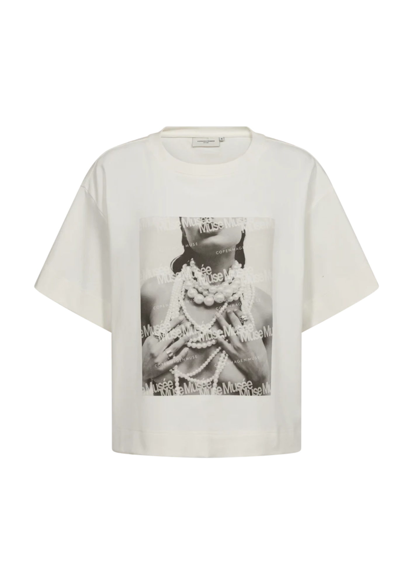 CMMUSE-TEE is een lang T-shirt in een zacht materiaal met een ronde halslijn met ribboord, korte mouwen met verlaagde schouders, een casual pasvorm en een print op de voorkant.