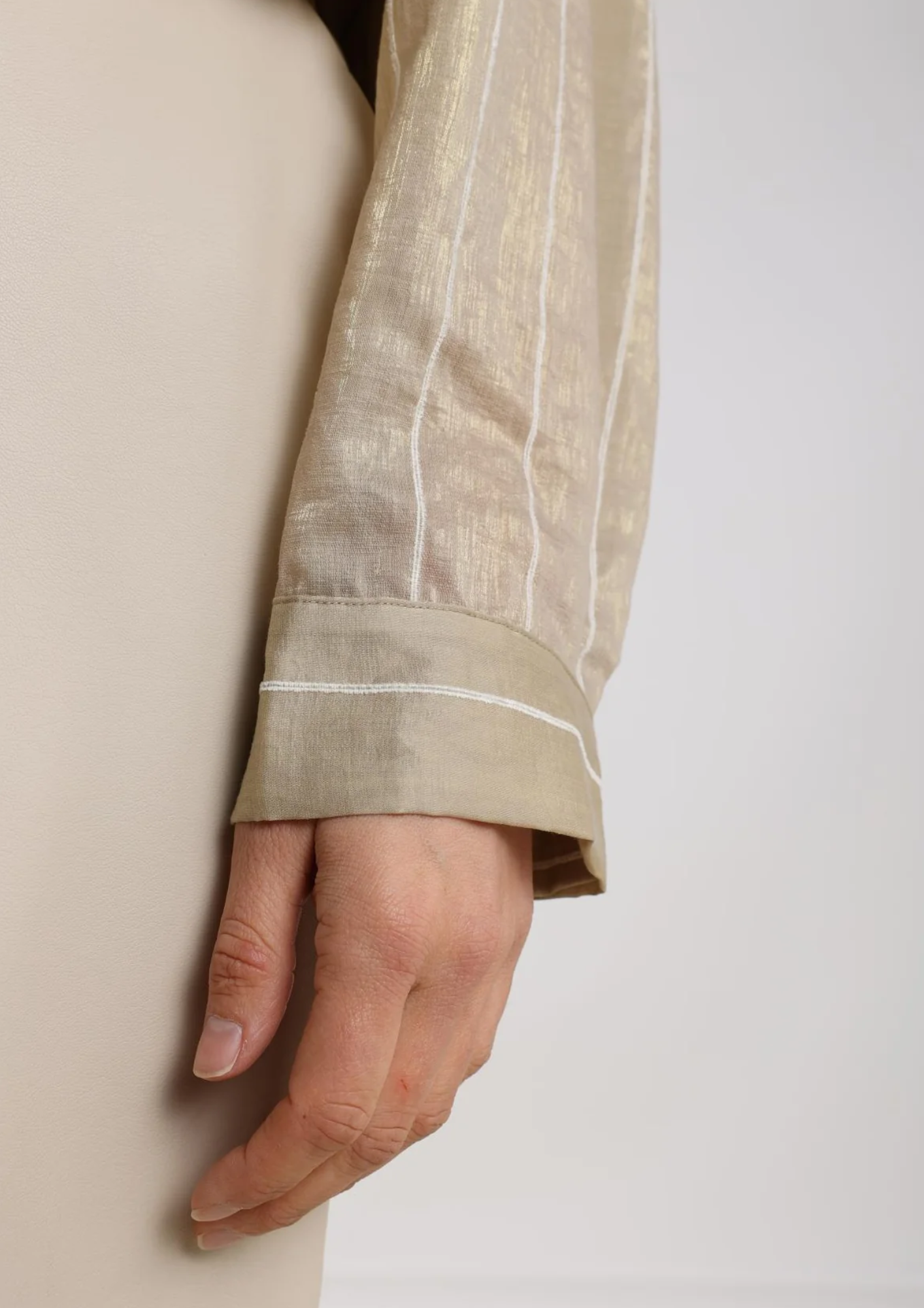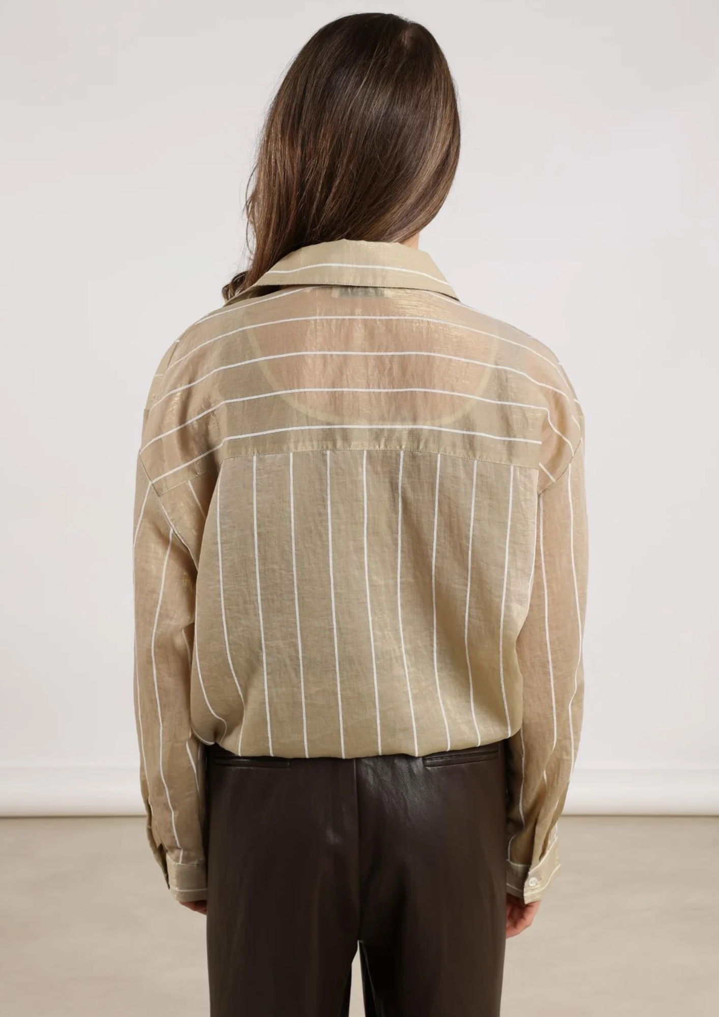 De Iris blouse is een tijdloos item met een moderne twist. Deze blouse met off white strepen is gemaakt van een zachte mix van tencel en katoen en heeft een regular fit. De fijne knoopsluiting en luchtige stof maken het de perfecte keuze voor een casual, maar verzorgde look. Style hem af met je favoriete abby jeans of jill pantalon.