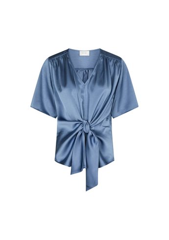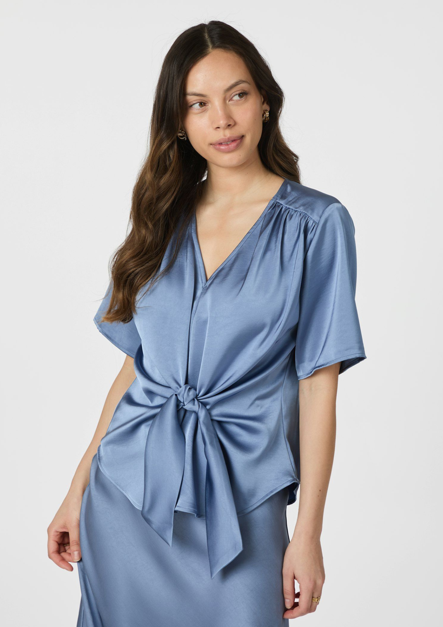 Let op blouse valt iets groter. Bij twijfel maatje kleiner aanhouden. Vrouwelijke blouse met knoopdetail aan de voorkant, waardoor de taille verstelbaar is doordat het strakker of losser kan worden gemaakt. De stof is een zachte en luxueuze satijn.