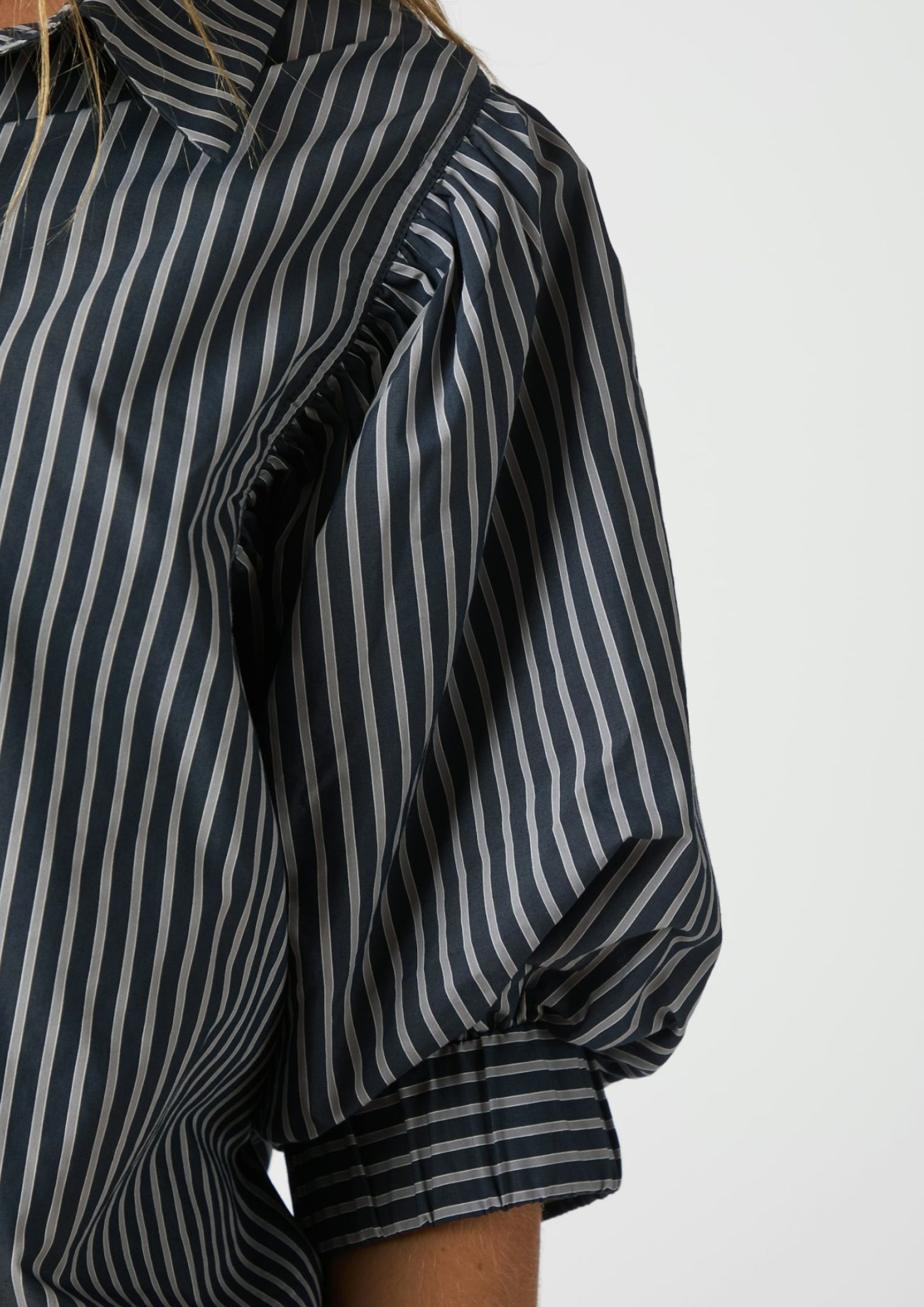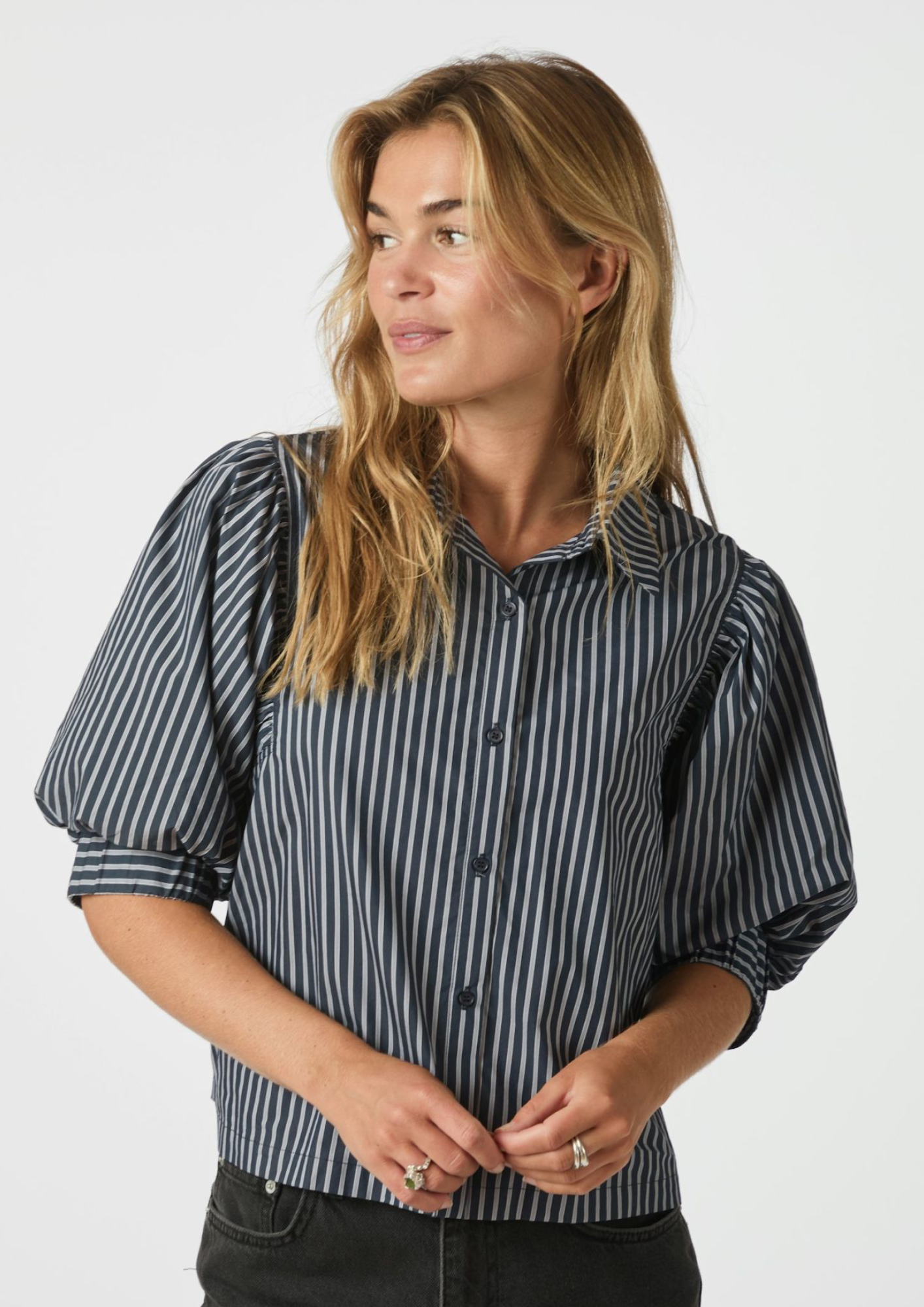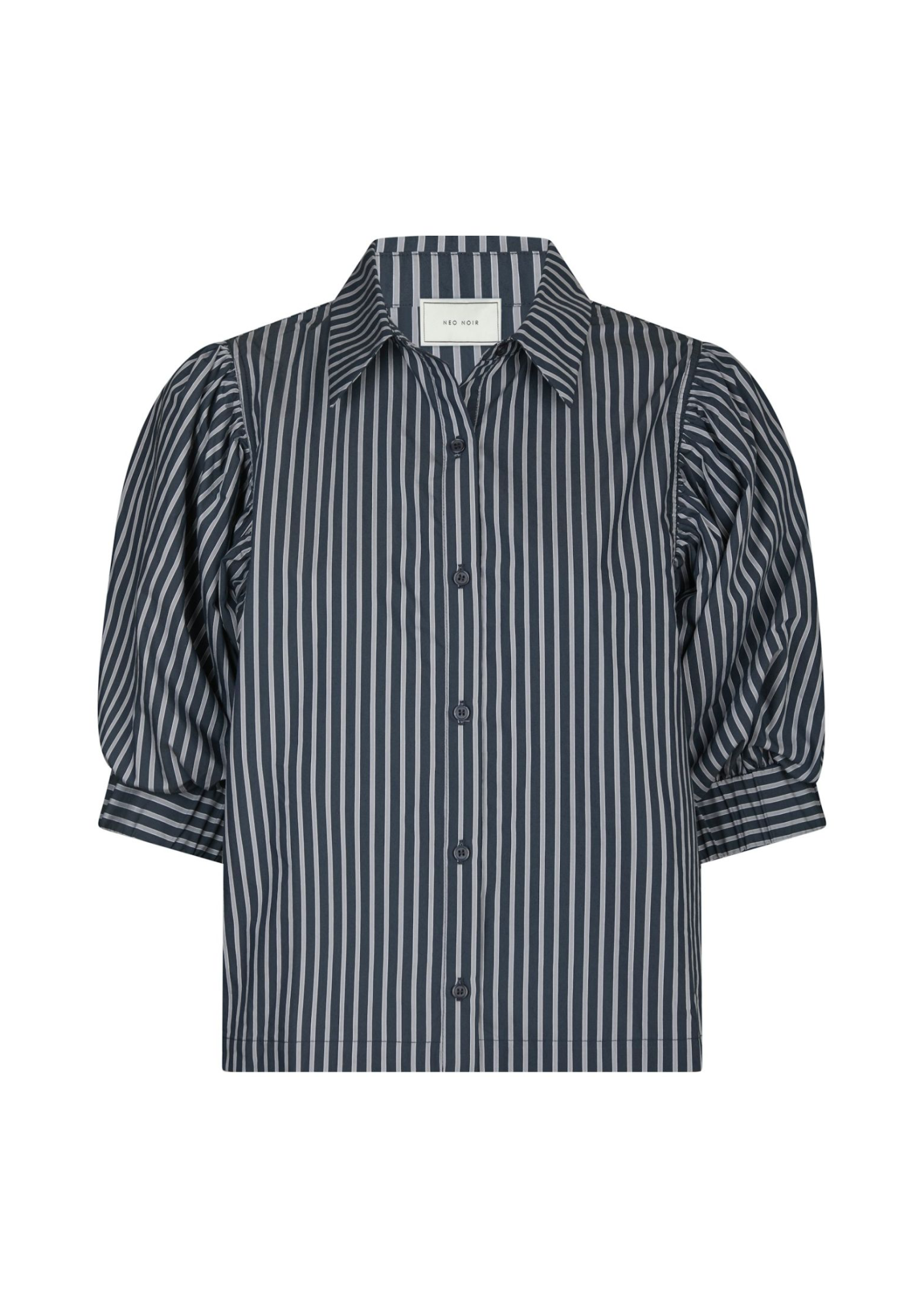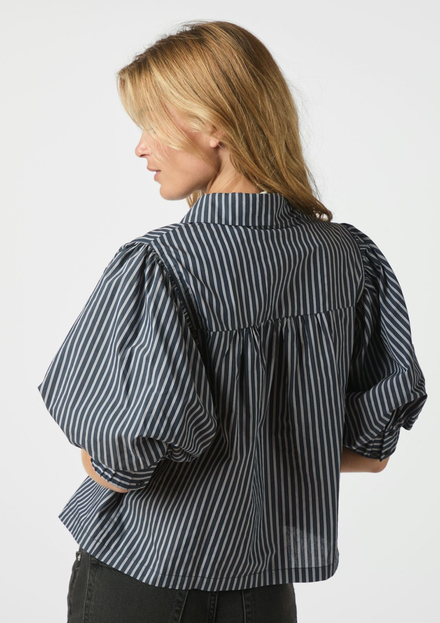 Schattig gestreept shirt met korte pofmouwen en knopen aan de voorkant.