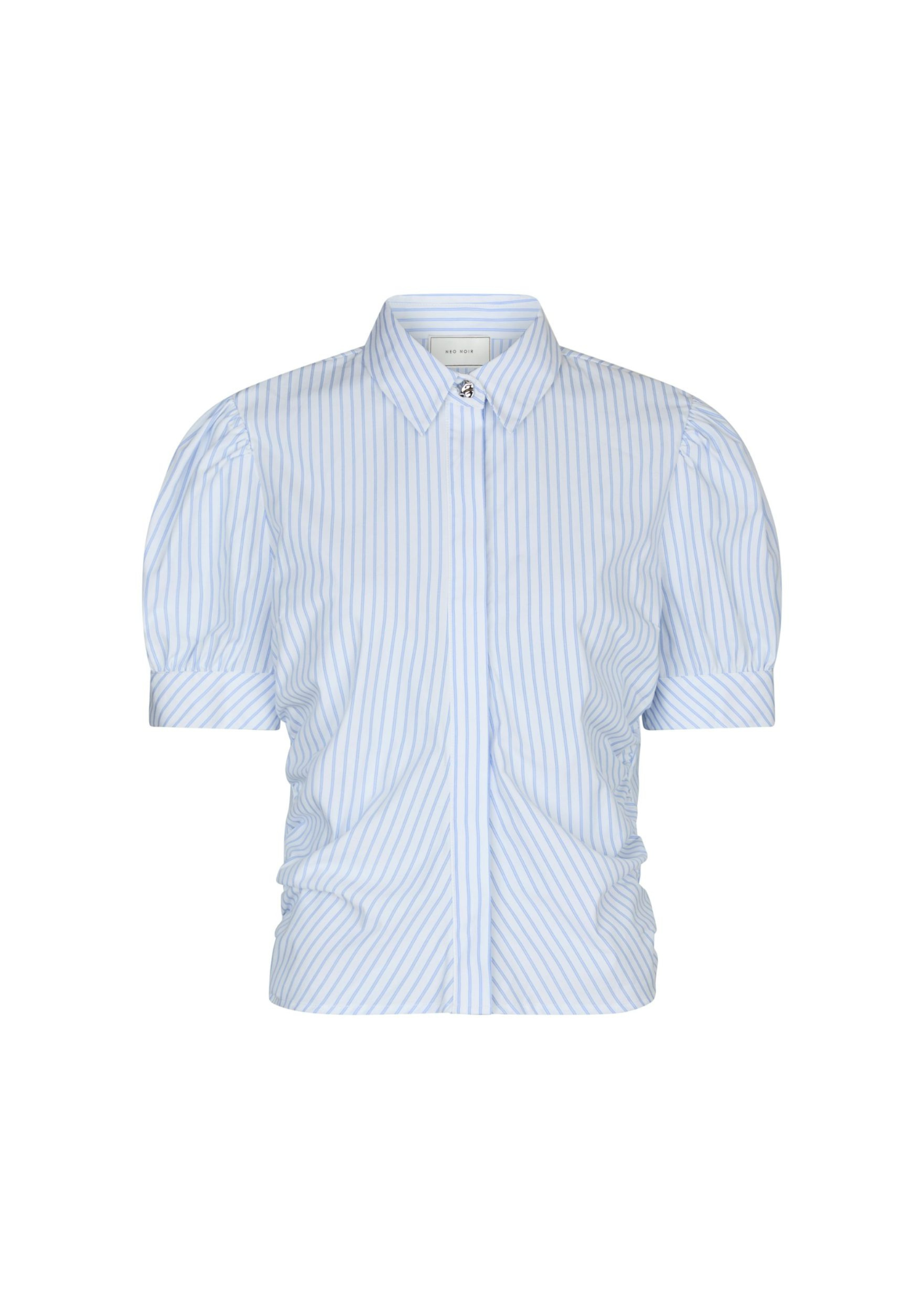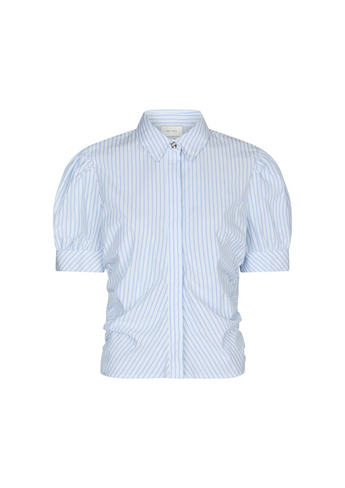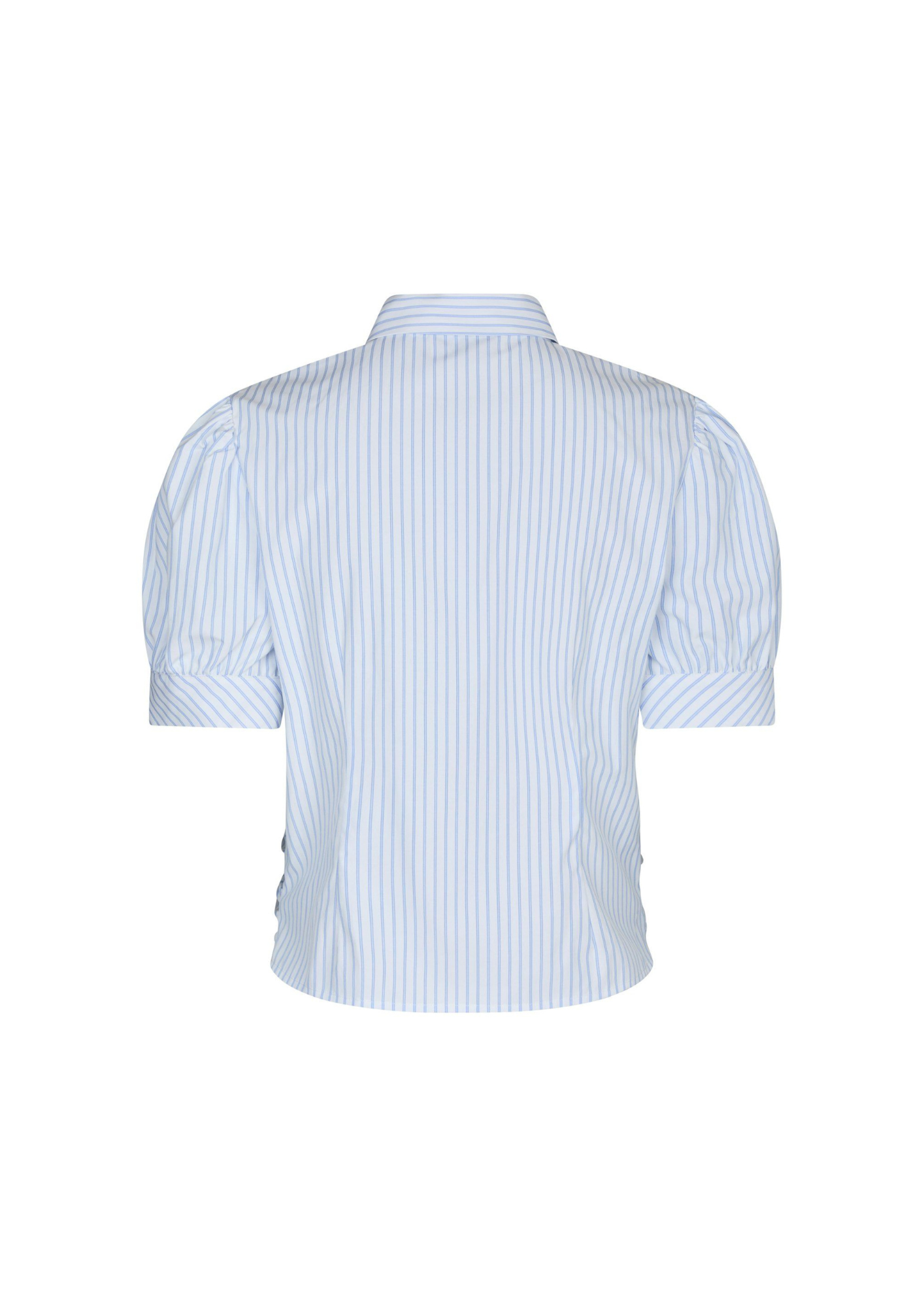 Cool cropped shirt met pofmouwen en sierknoop bij de kraag.
