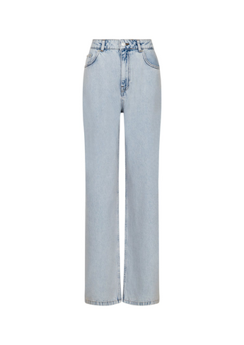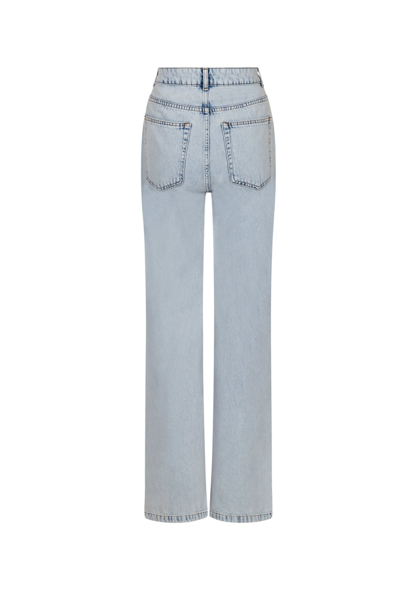 Mid-waist denim broek met rits en knoopsluiting aan de voorkant.