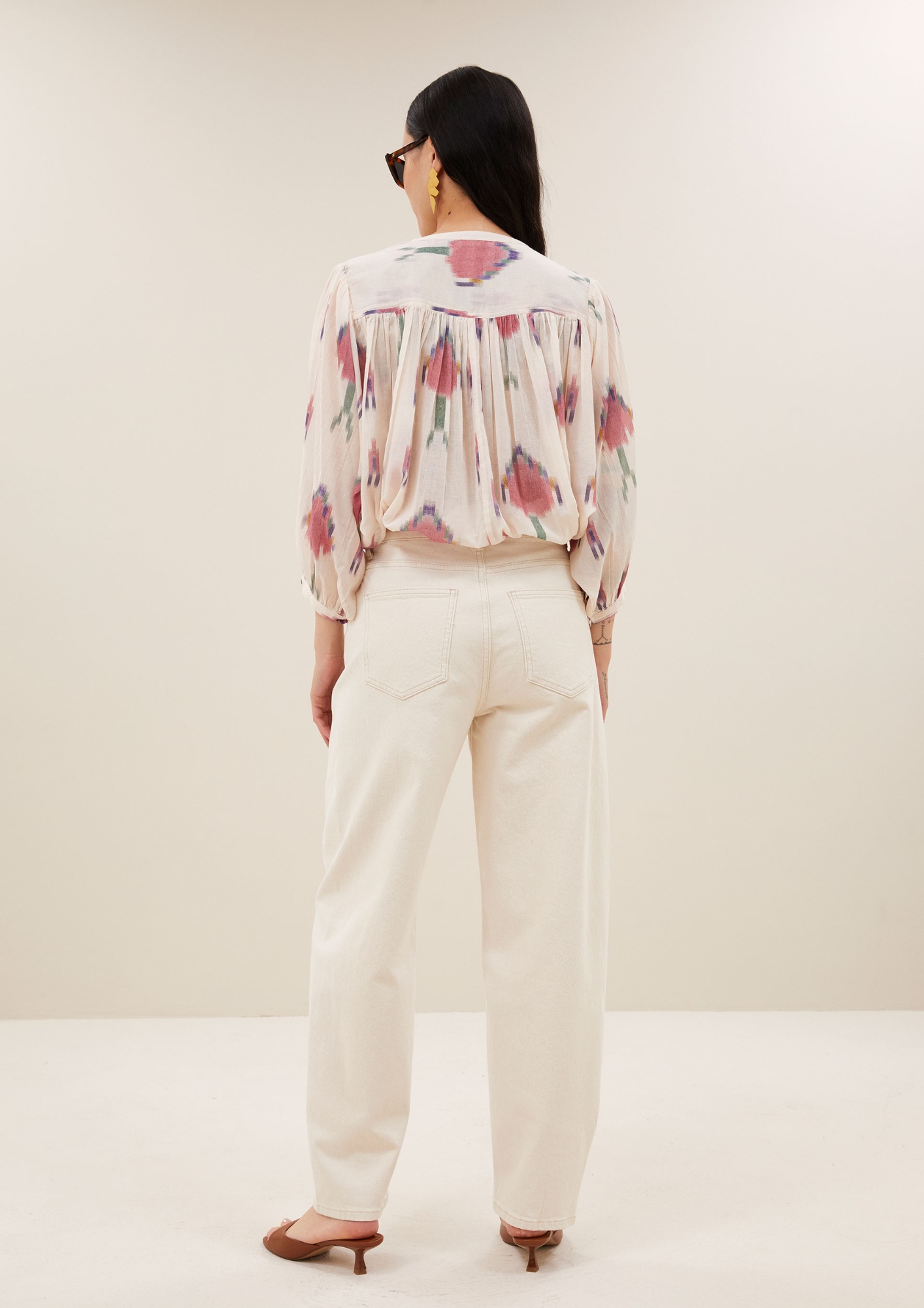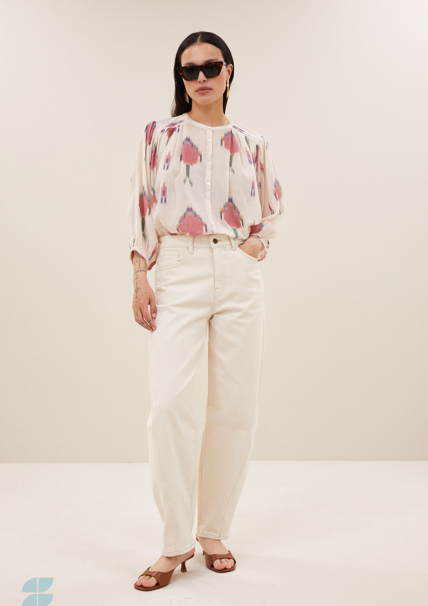 Ontdek de becky ikat blouse, een casual top met een comfortabele, losvallende pasvorm. Deze blouse valt op maat en is voorzien van volumineuze mouwen, een ronde halslijn en een stijlvolle knoopsluiting. De geplooide details en het speelse dessin geven het ontwerp een frisse, modieuze uitstraling. Een duurzame keuze die perfect is voor elke dag.