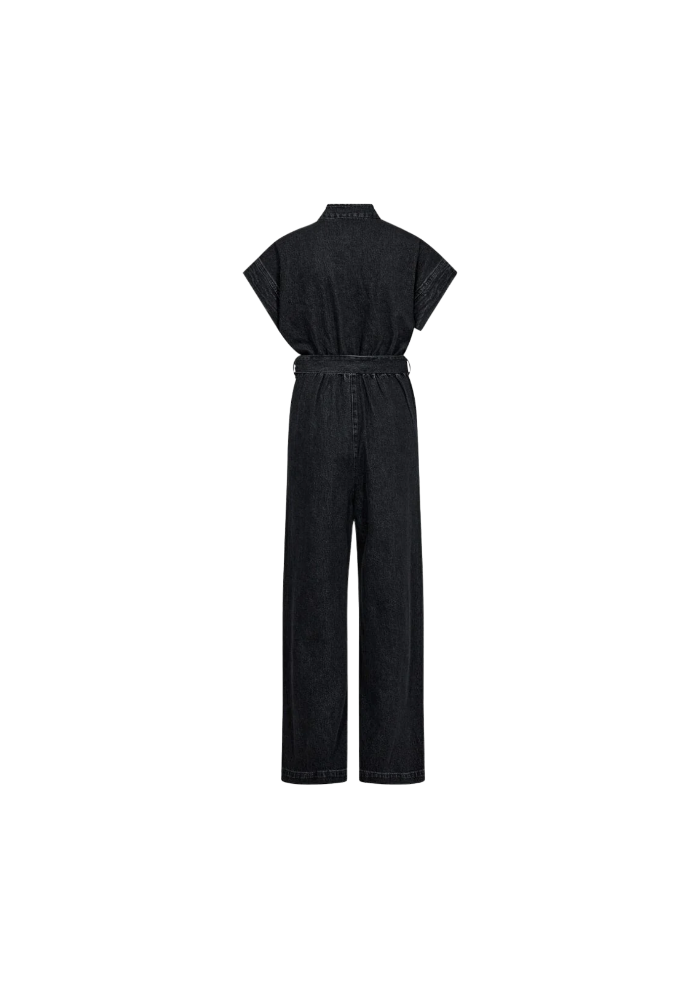 Zwarte jumpsuit van Co´Couture, gemaakt van 100% katoen. De jumpsuit heeft korte mouwen, een overhemdkraag en een losse pasvorm.