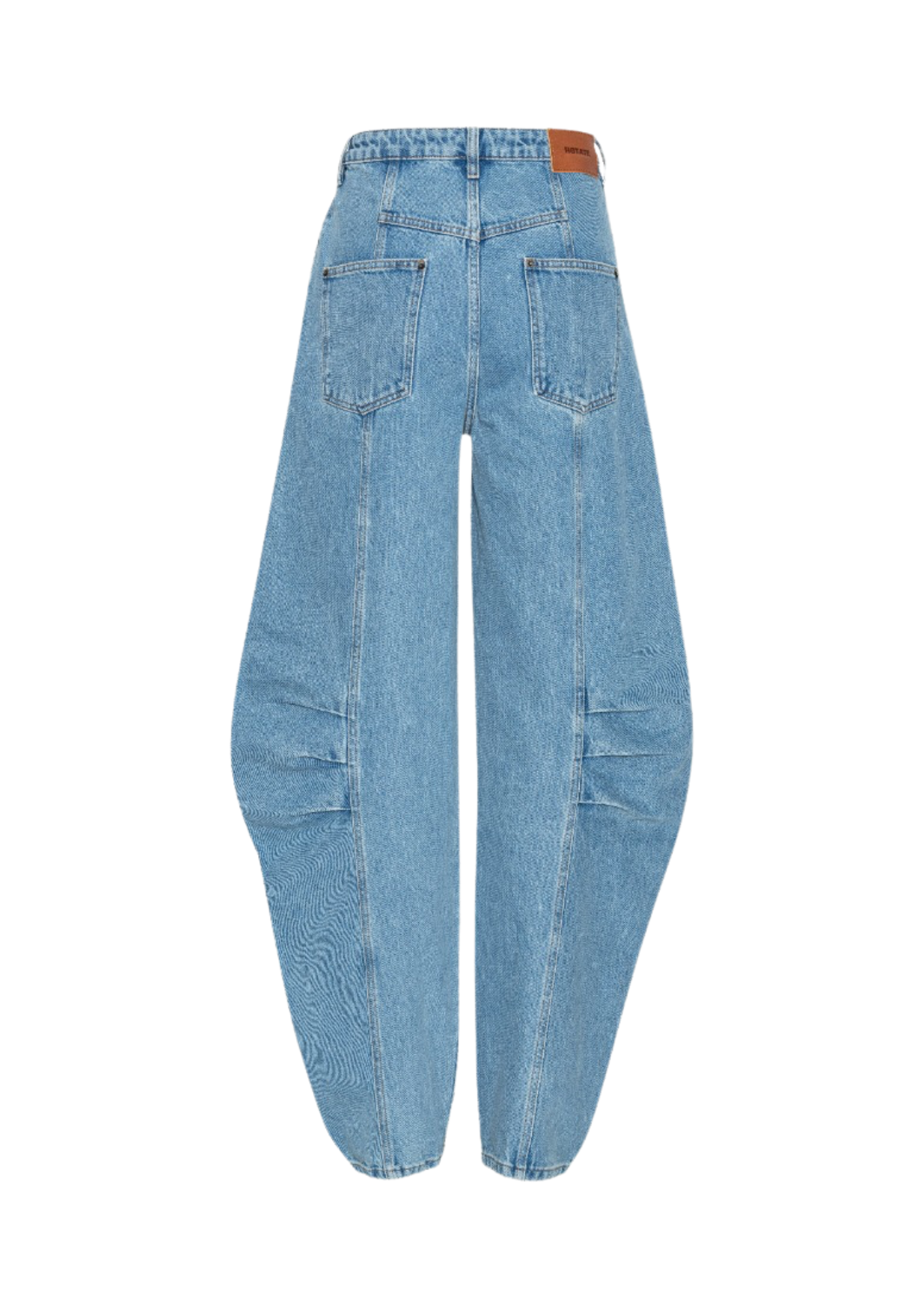 Deze blauwe cargodenim broek is ontworpen als onderdeel van de officiële Rotate x DBU reiscollectie voor het Deense nationale damesvoetbalteam. De broek heeft een middelhoge taille en een relaxte, wijde pasvorm. Hij is voorzien van een knoop- en ritssluiting, riemlussen en meerdere praktische zakken. Verstevigde kniestukken en gestructureerde naden geven de broek een functionele afwerking.