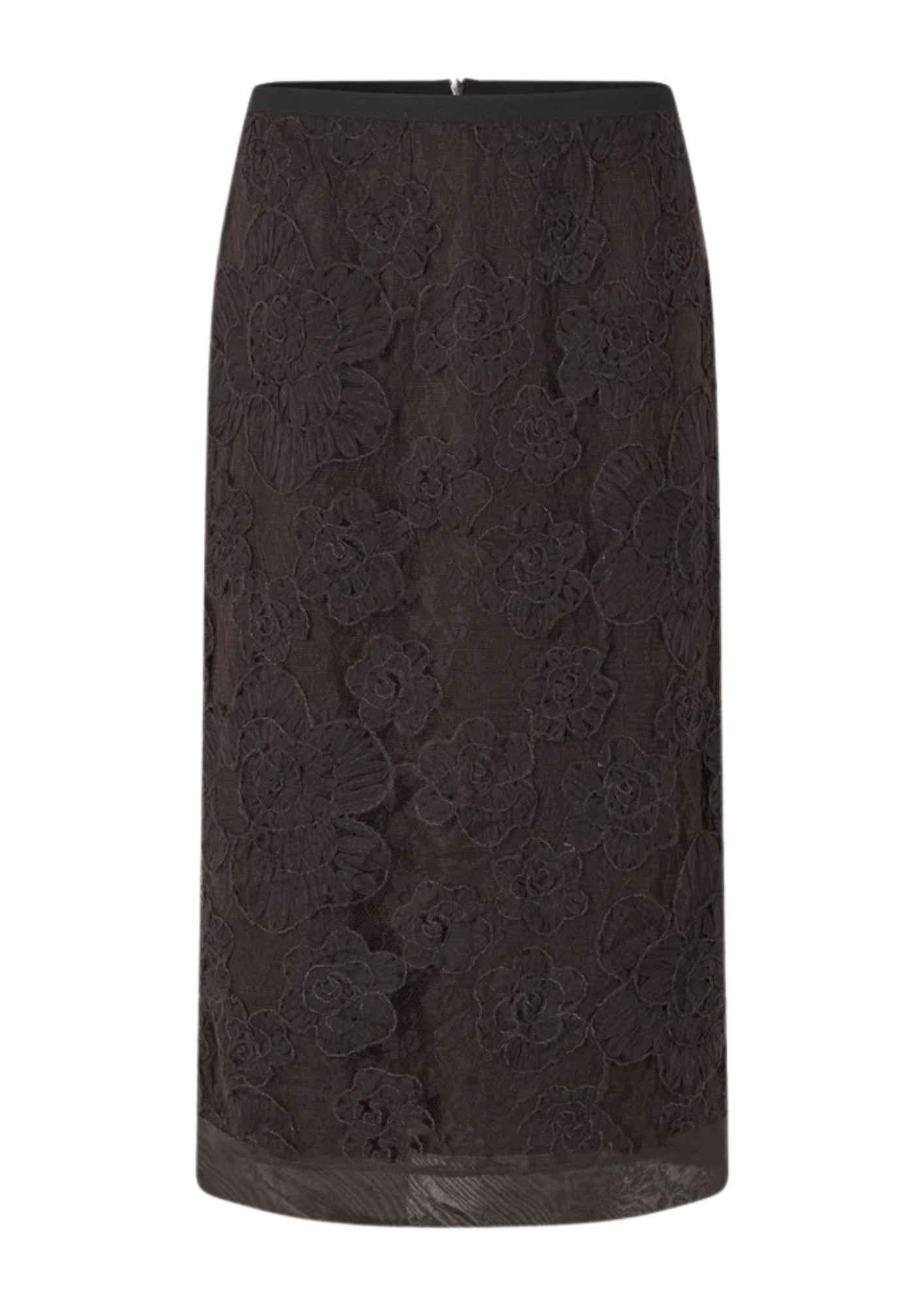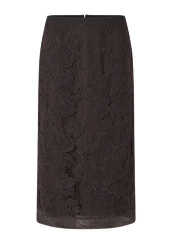 Kanten rok met bloemen. De rok bestaat uit een laag kant en gestructureerde bloemen over een effen onderlaag. Voorzien van een verborgen ritssluiting aan de achterkant en een smalle elastische tailleband. Details van contrasterende stof en onafgewerkte zoom. Rechte pasvorm. Leuk te combineren met de bijpassende Daysee top