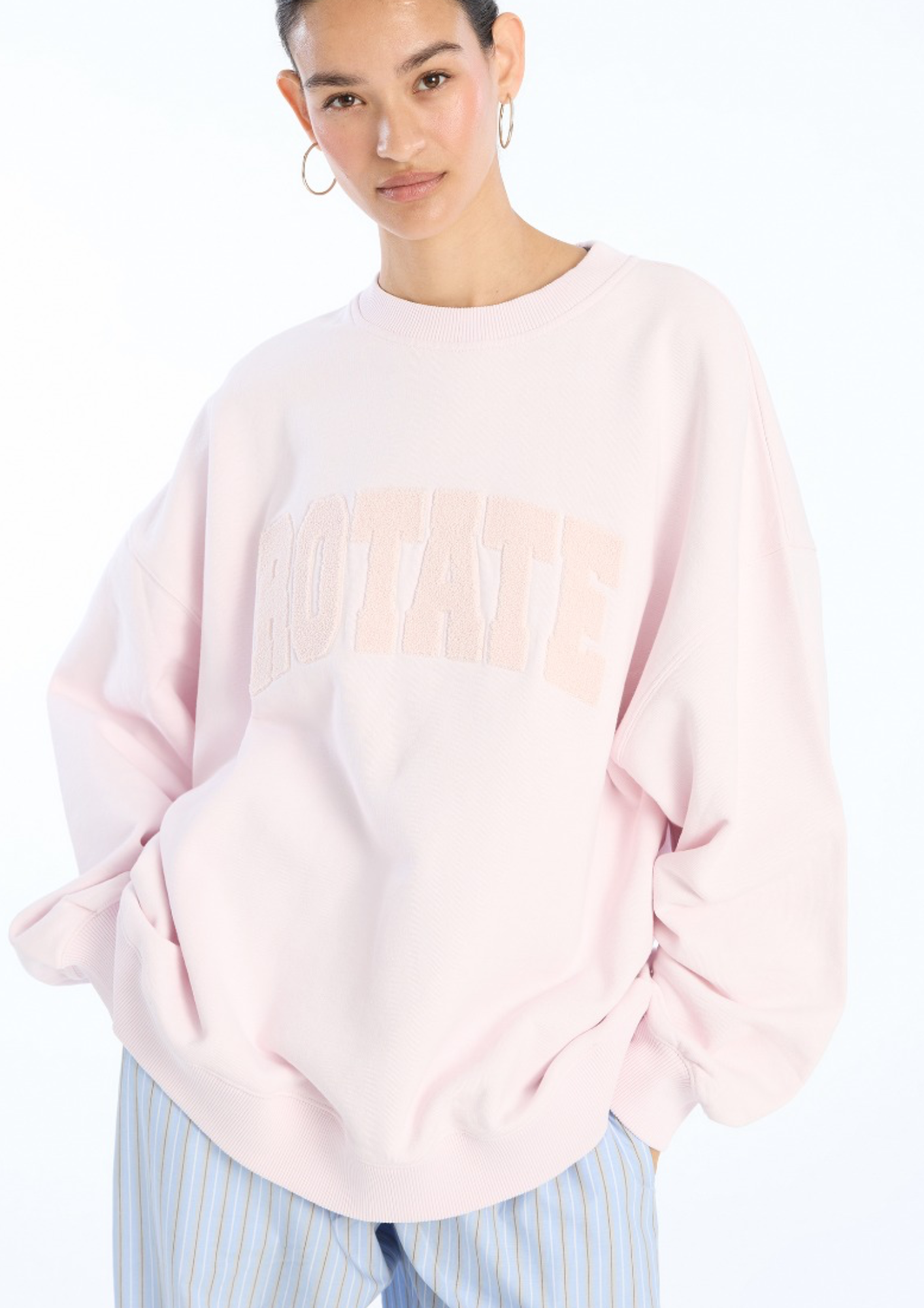 De heavy sweat crewneck heeft een relaxte oversized pasvorm met een geribbde halslijn, manchetten en zoom. deze is geborduurd met rotate-letters op de borst en de afgehangen schouders zorgen voor een relaxte silhouet.
