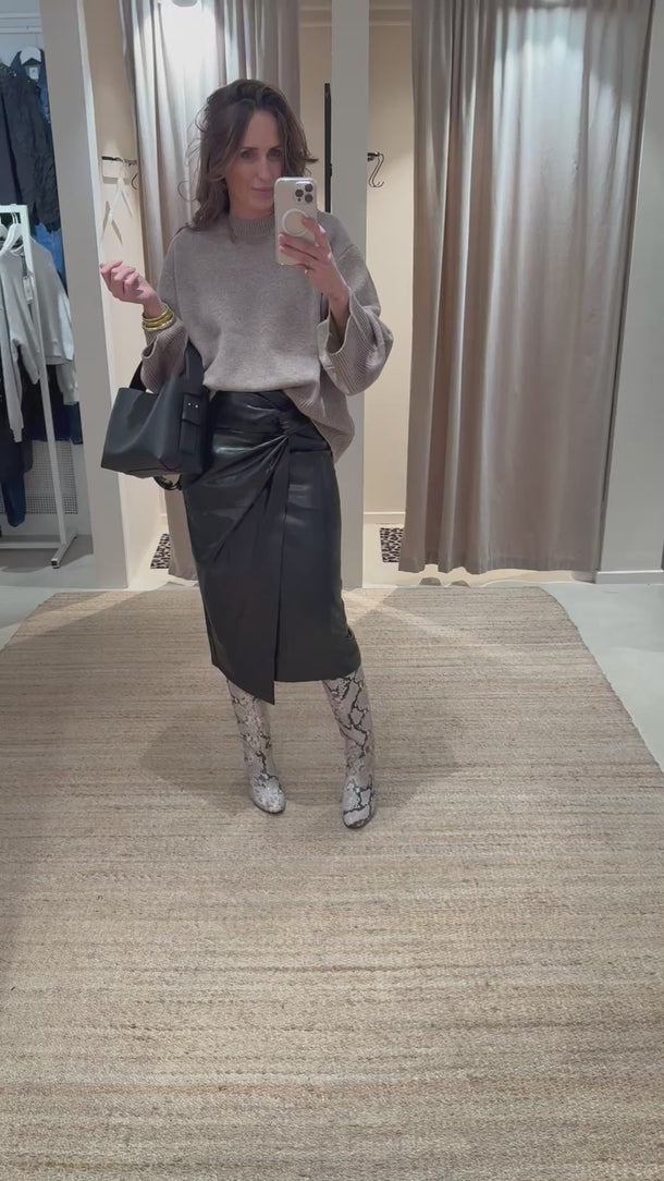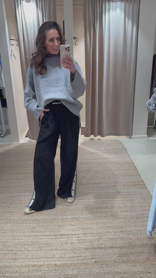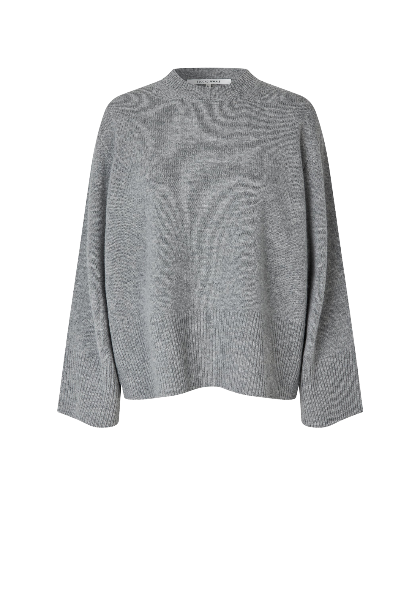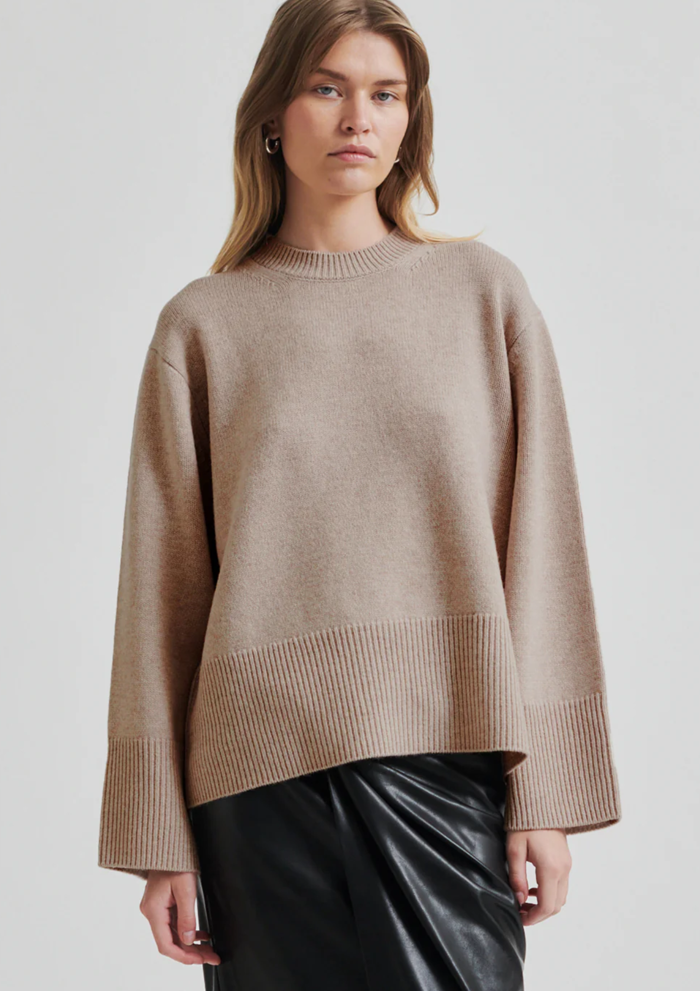 De pullover is gemaakt van zacht wol. Met een ronde hals en licht verlaagde schouders met extra brede, lange mouwen. Geribbelde hals, met extra brede rib bij de manchetten en onderzoom. Wijde, relaxte pasvorm.
