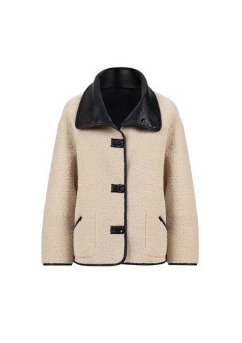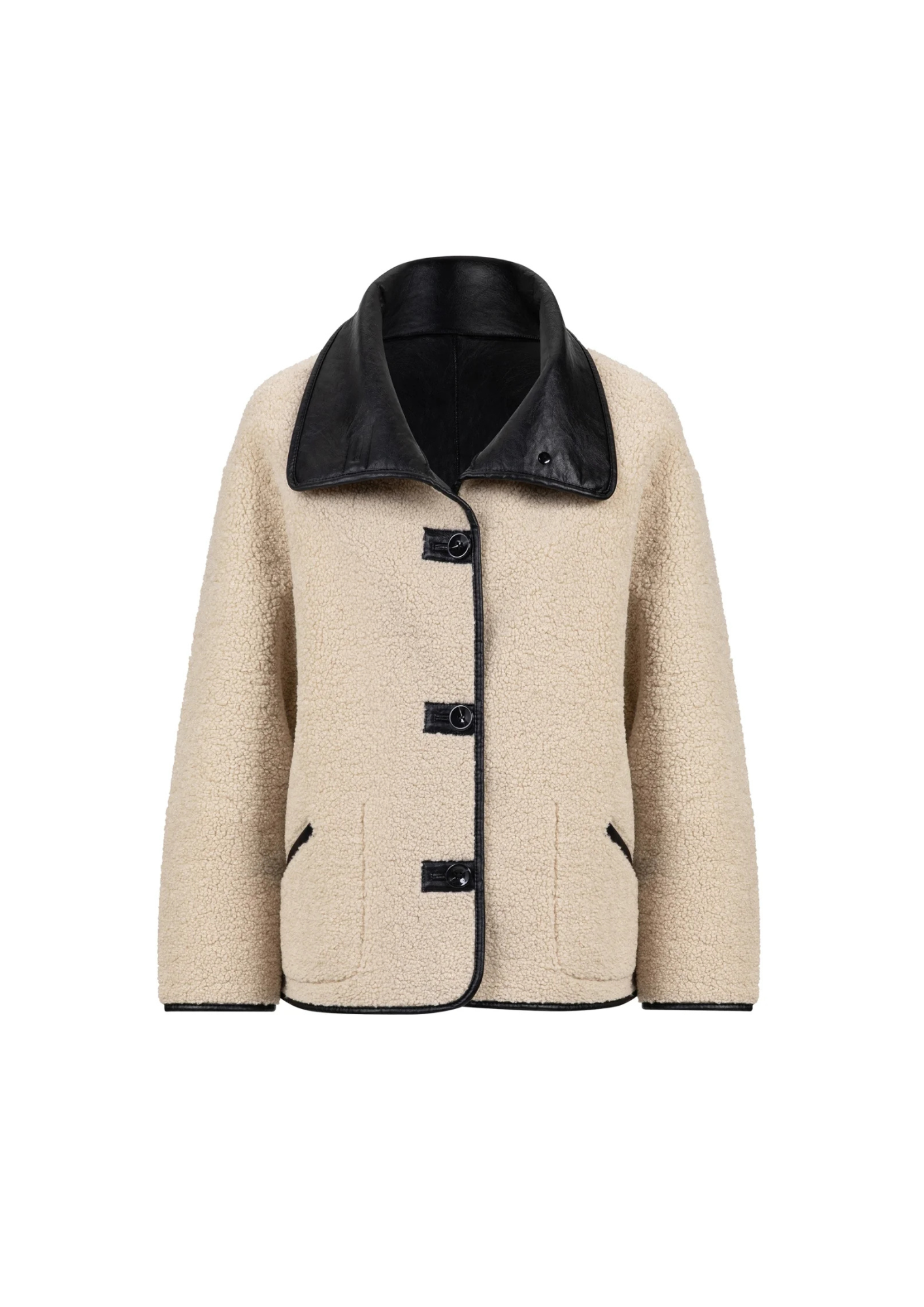 Sommige dagen vragen om zachtheid, andere om een beetje pit - jasje Cosy biedt je beide. Met een zachte teddytextuur aan de ene kant en glad imitatieleer aan de andere kant, past dit omkeerbare jasje zich aan je stemming aan. De opvallende kraag, klassieke knopen en het twee-in-één-ontwerp maken het meer dan alleen praktisch. Het is het soort kledingstuk dat aankleden leuk maakt.