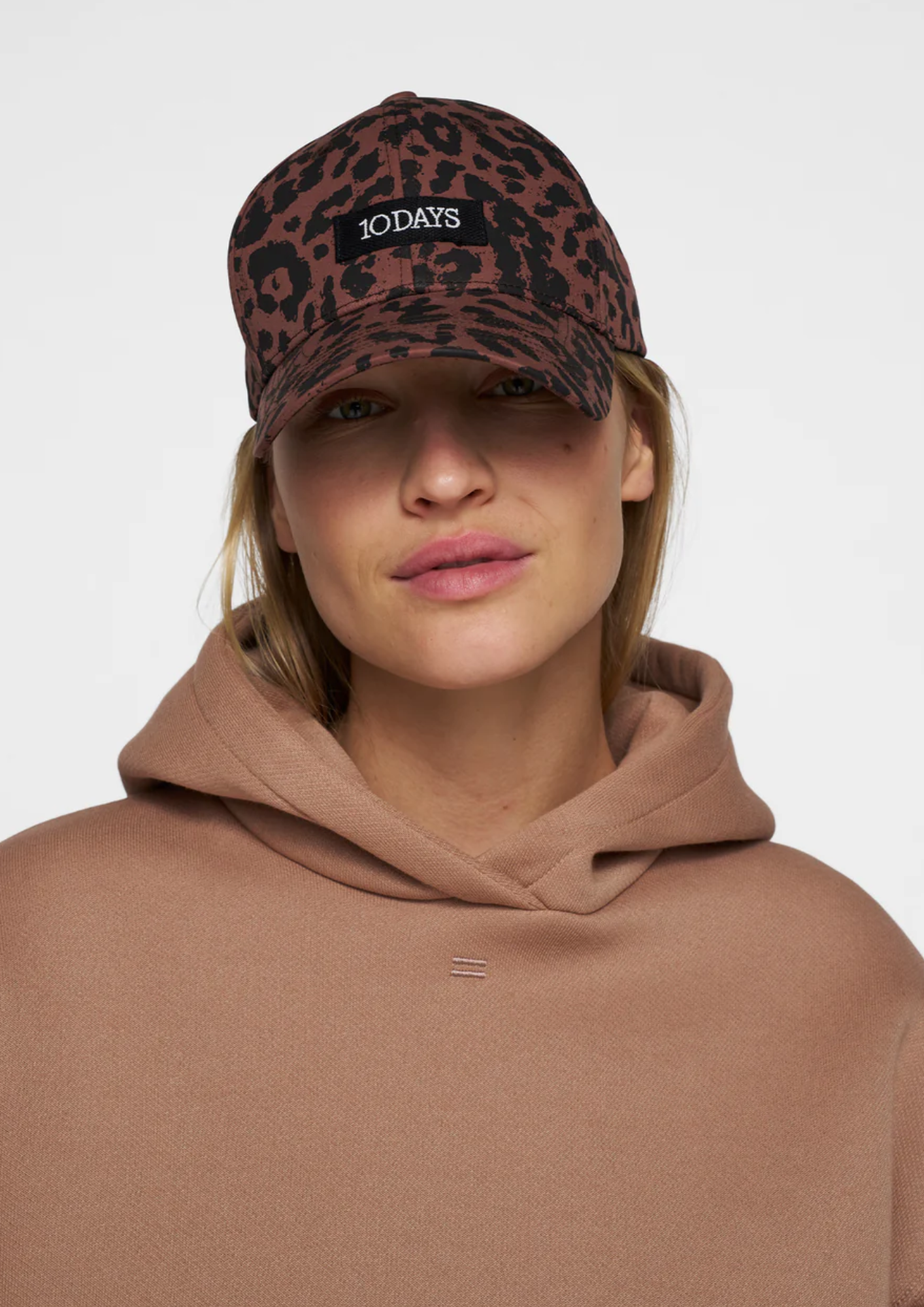 Luipaardprint pet van katoen, met 10DAYS label aan de voorzijde. Voorzien van een '10' monogram borduring op de linkerzijde achter en een verstelbare riem achter.