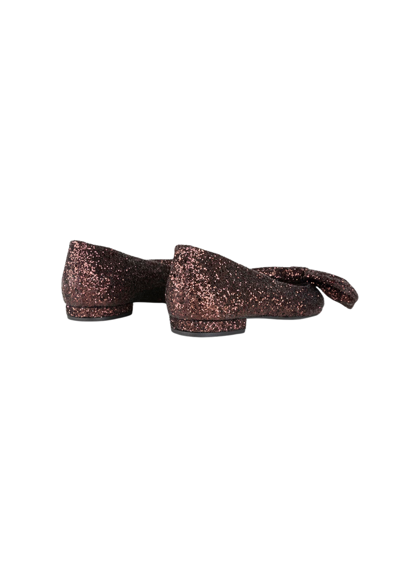 De Abbey-flats in moerbeirood geven je dag een sprankelende touch. Deze instappers, bedekt met rode glitters en voorzien van een puntige neus en strik, zijn zowel elegant als comfortabel.