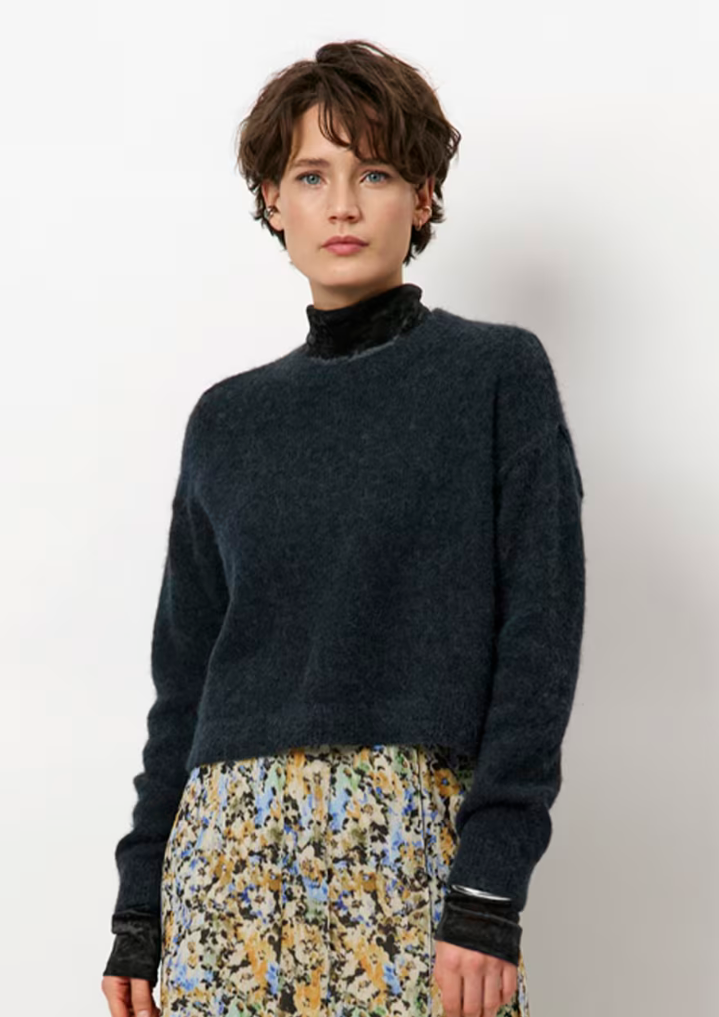 Looking for a refined, everyday knit? Our Ariama jumper in Midnight Green is the perfect choice. This relaxed-fit style is made from a lightweight alpaca wool blend and features a ribbed crew neck, dropped shoulders and long sleeves with ribbed cuffs. For your next girls' night out, team it with our Spotted animal print trousers for a stylish look.