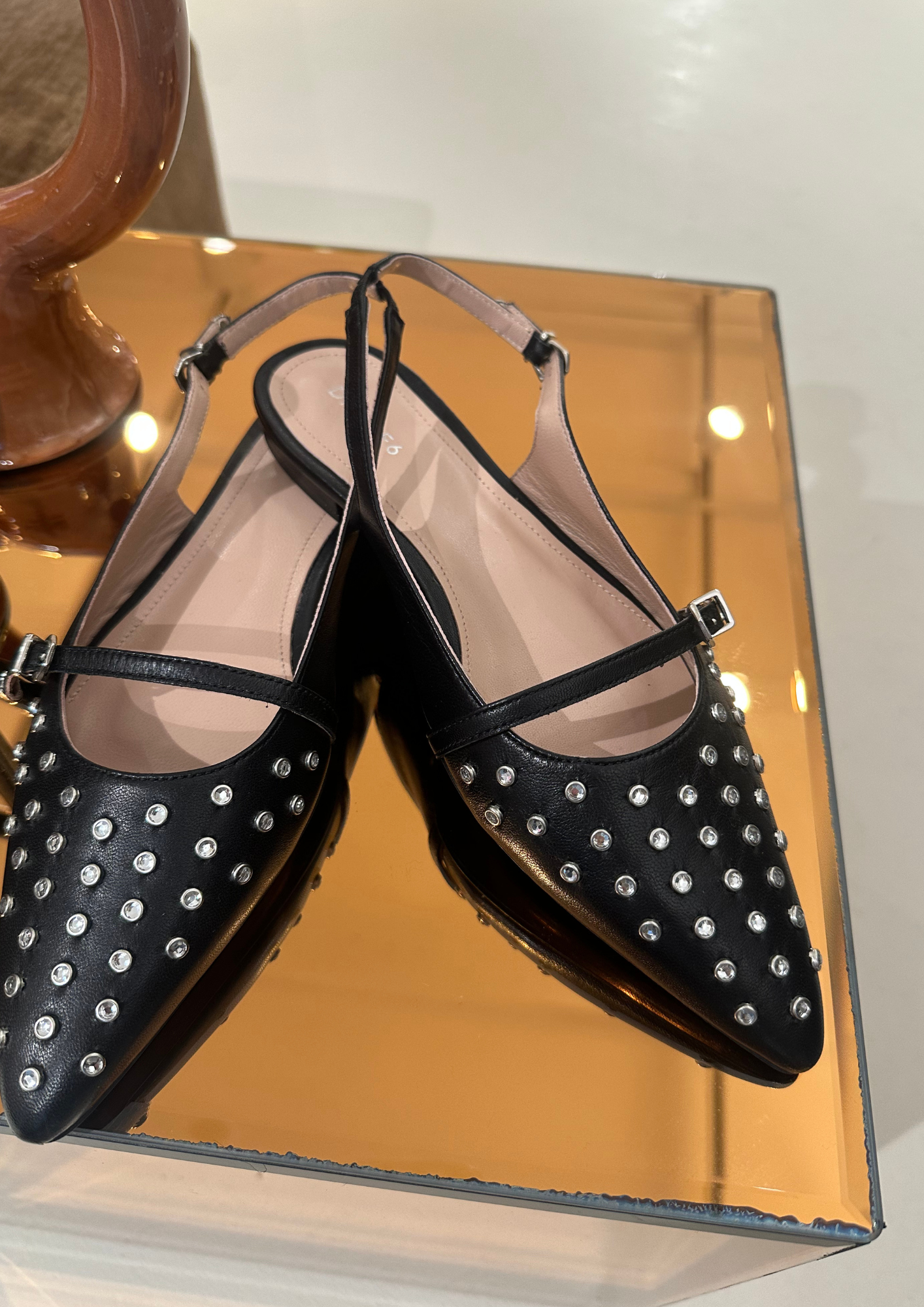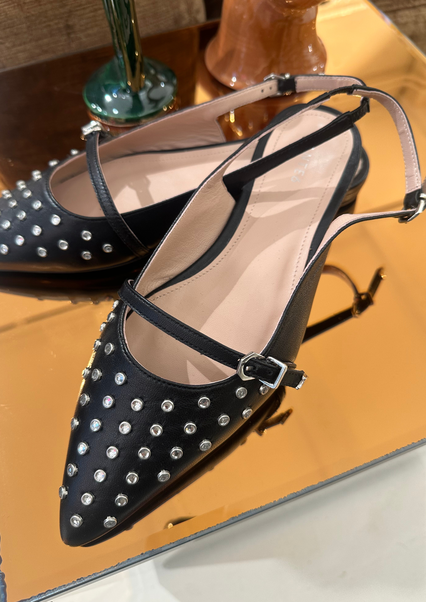 Dante6 | Cinque Studded Leather Flat Slingbacks