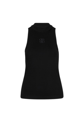 Een mooie top met col mag in geen enkele garderobe ontbreken. Kies voor de Lako in het zwart. Deze nauwsluitende tanktop heeft een kleine opstaande kraag en is voorzien van ons DANTE6-logo op de voorkant. Hij is gemaakt van verfijnde ribjersey, waardoor hij stijlvol en comfortabel is.