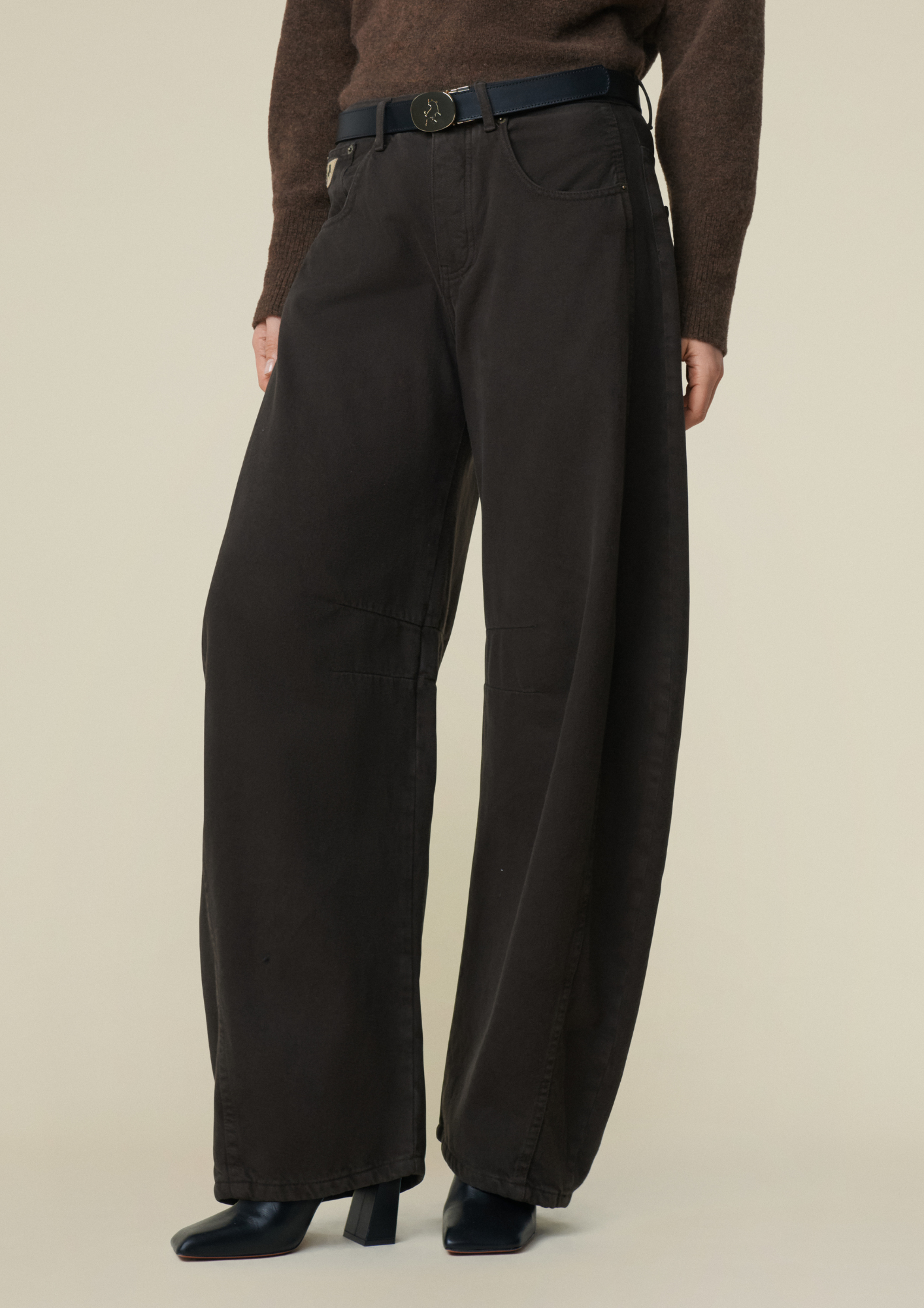 Valling: low waisted, balloon fit. De broek valt op maat.