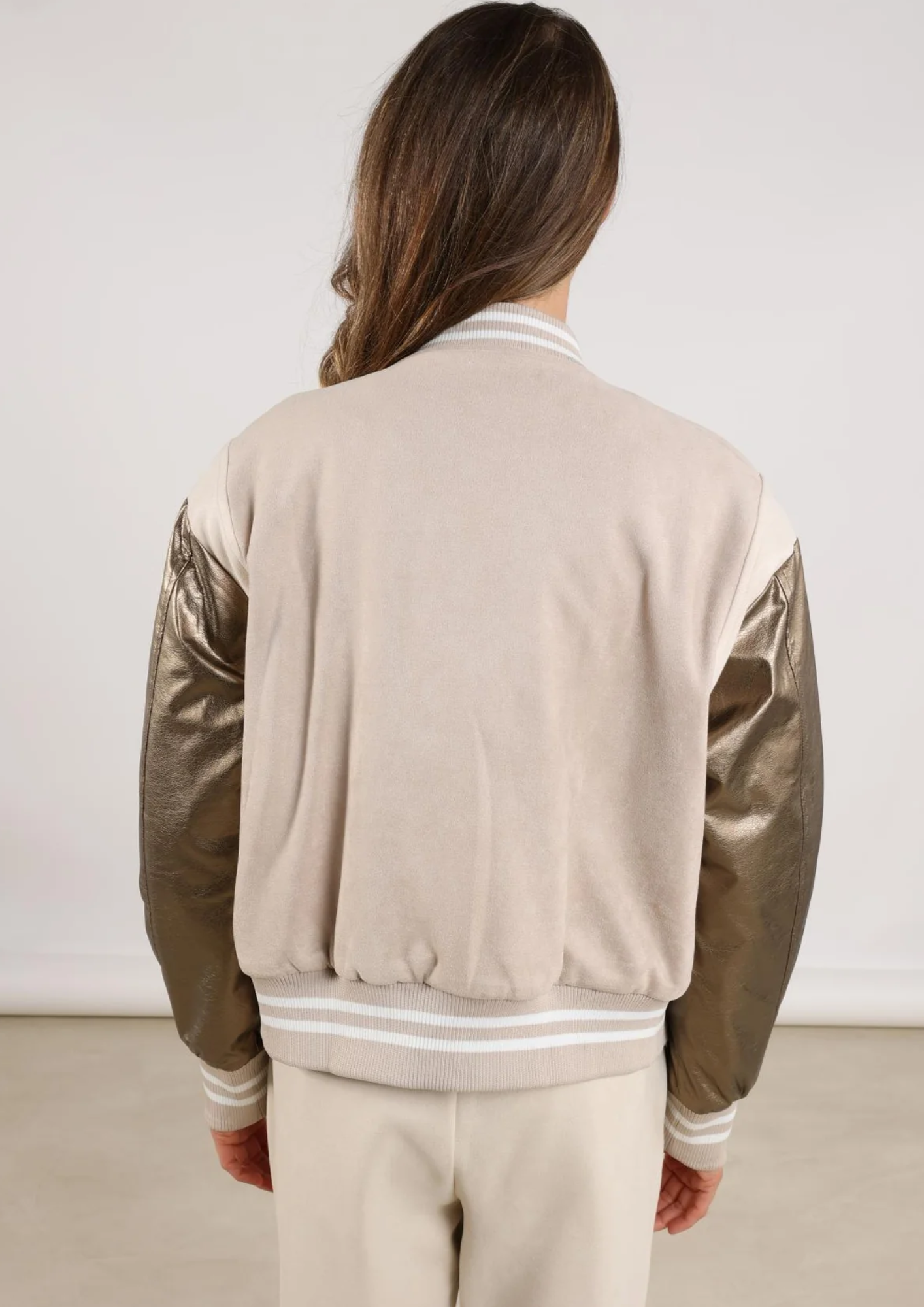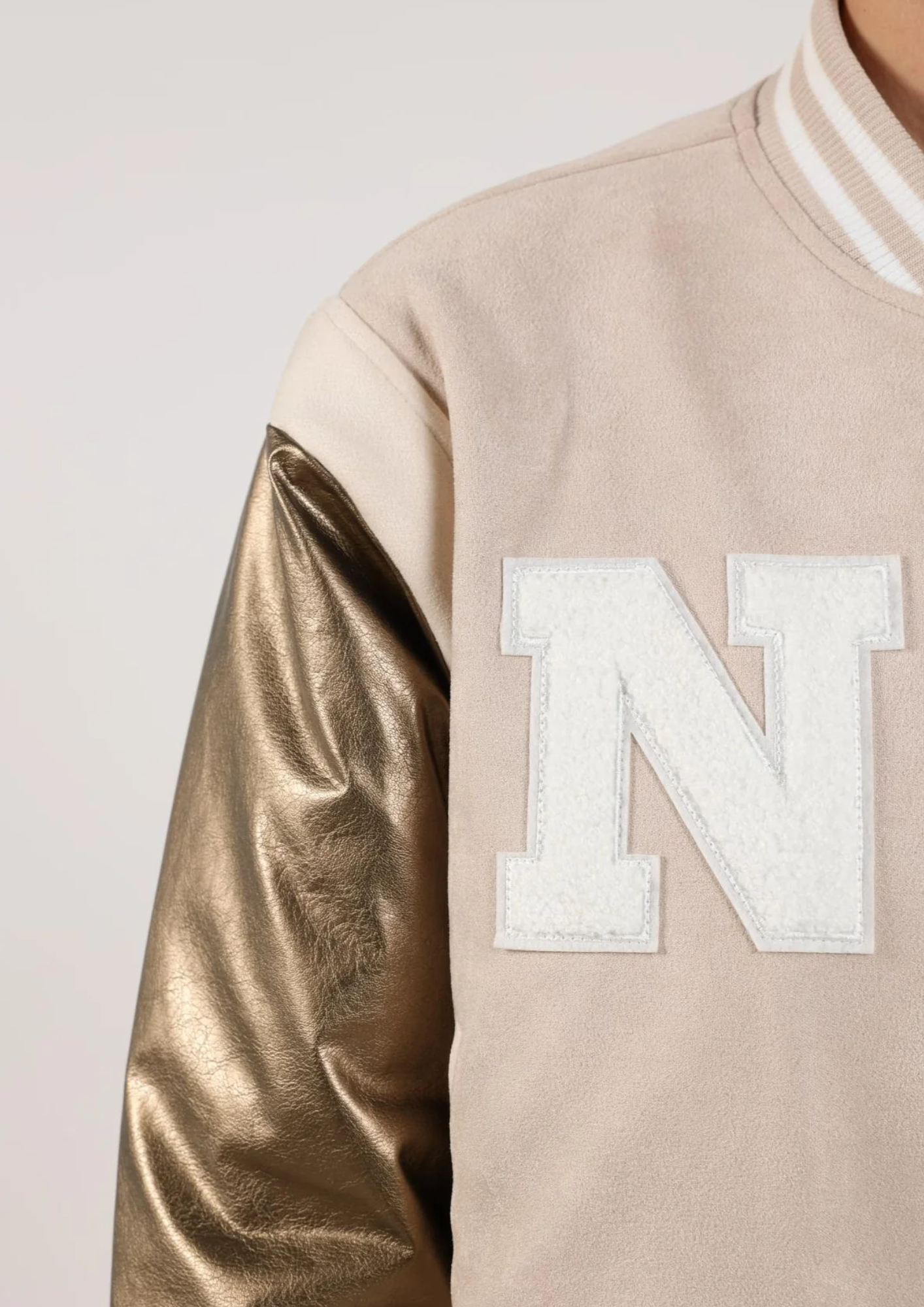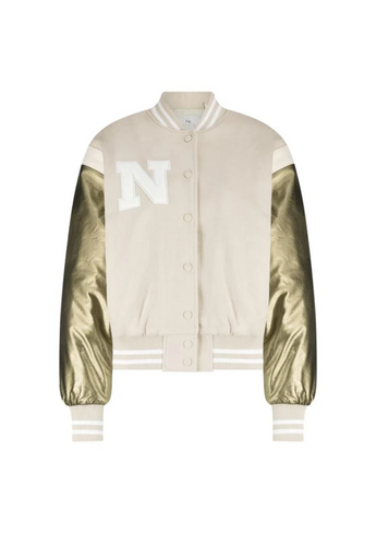 De Gent Jacket is een stoere bomber met een grote N op de borst, bronzen mouwen, knoopsluiting, twee zakken en aansluiting bij de mouwen.