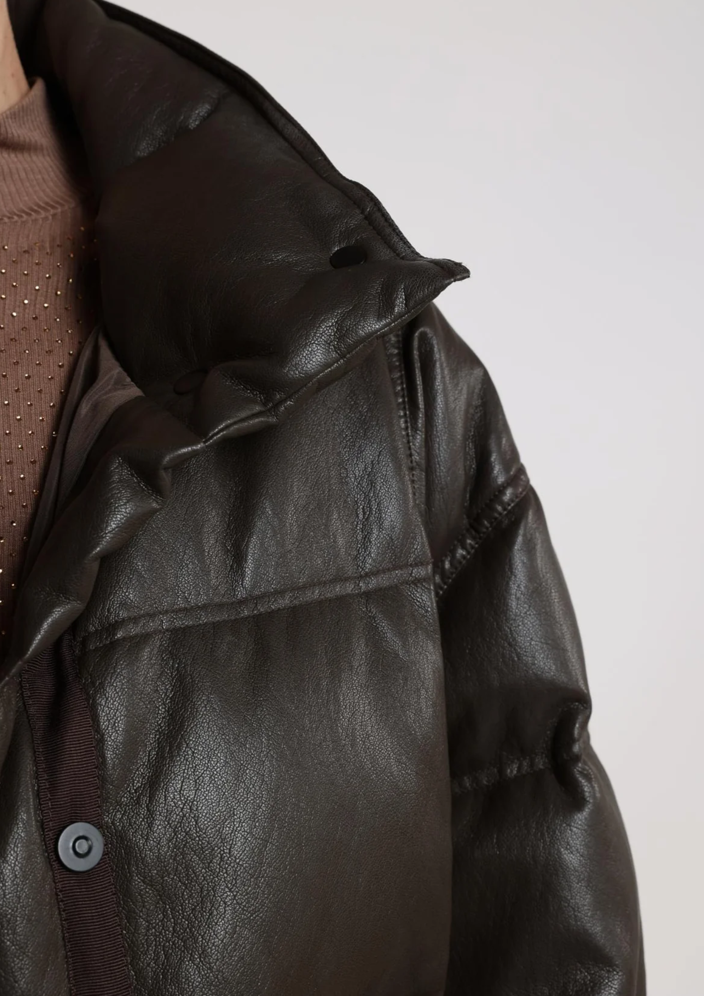 De Leanne Jacket is een stoere en comfortabele leerlook jas met gewatteerde voering, perfect voor koude dagen. Het geeft je outfit direct een edgy en moderne uitstraling. Combineer ‘m met een wide leg jeans en een warme trui voor een relaxte, stijlvolle look.