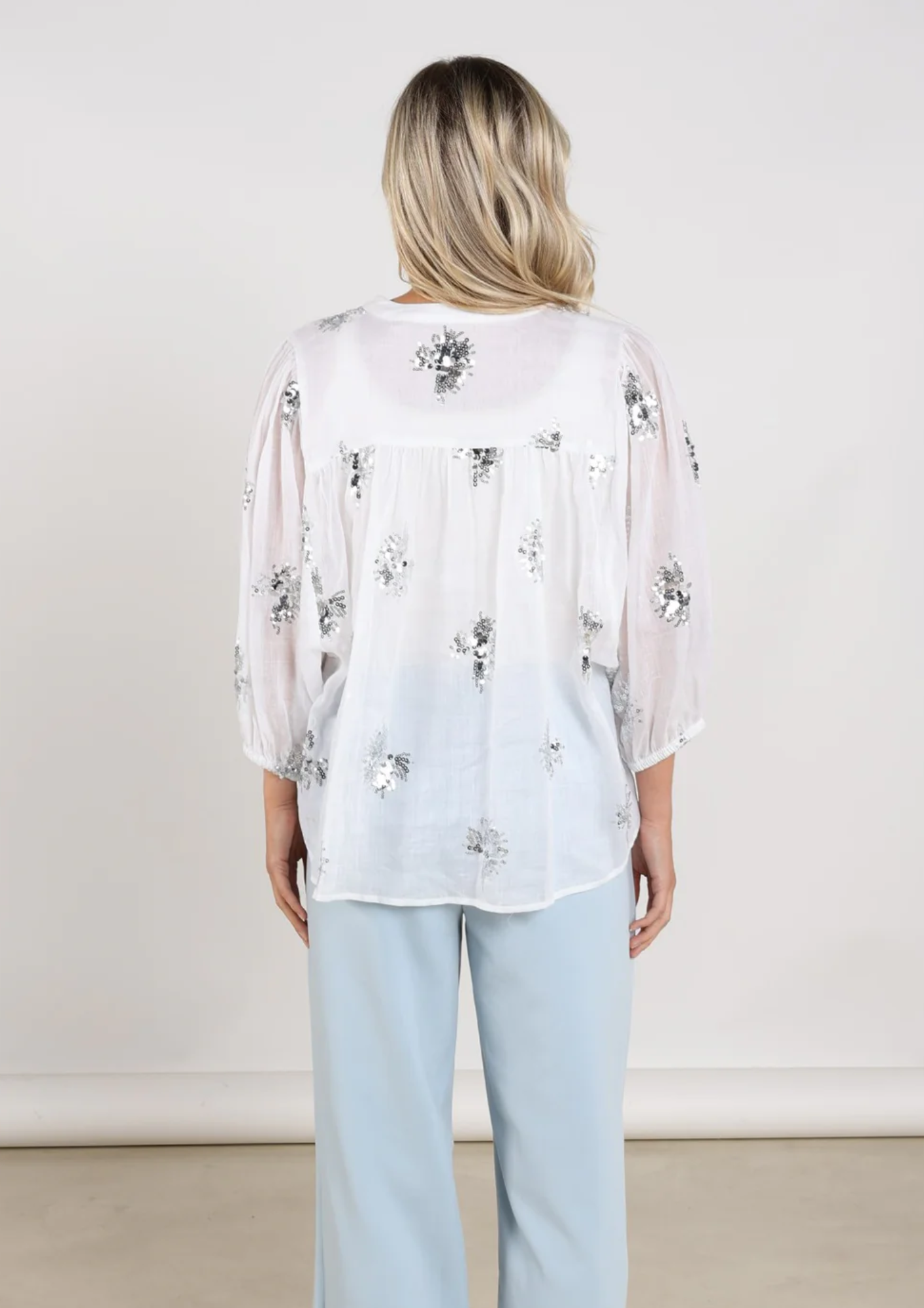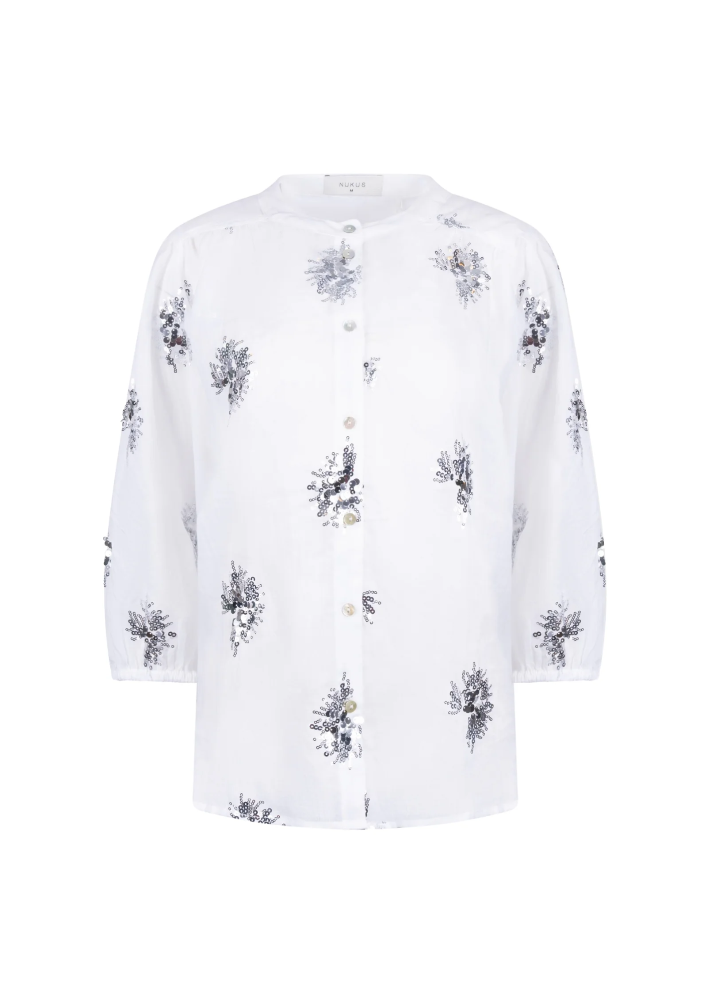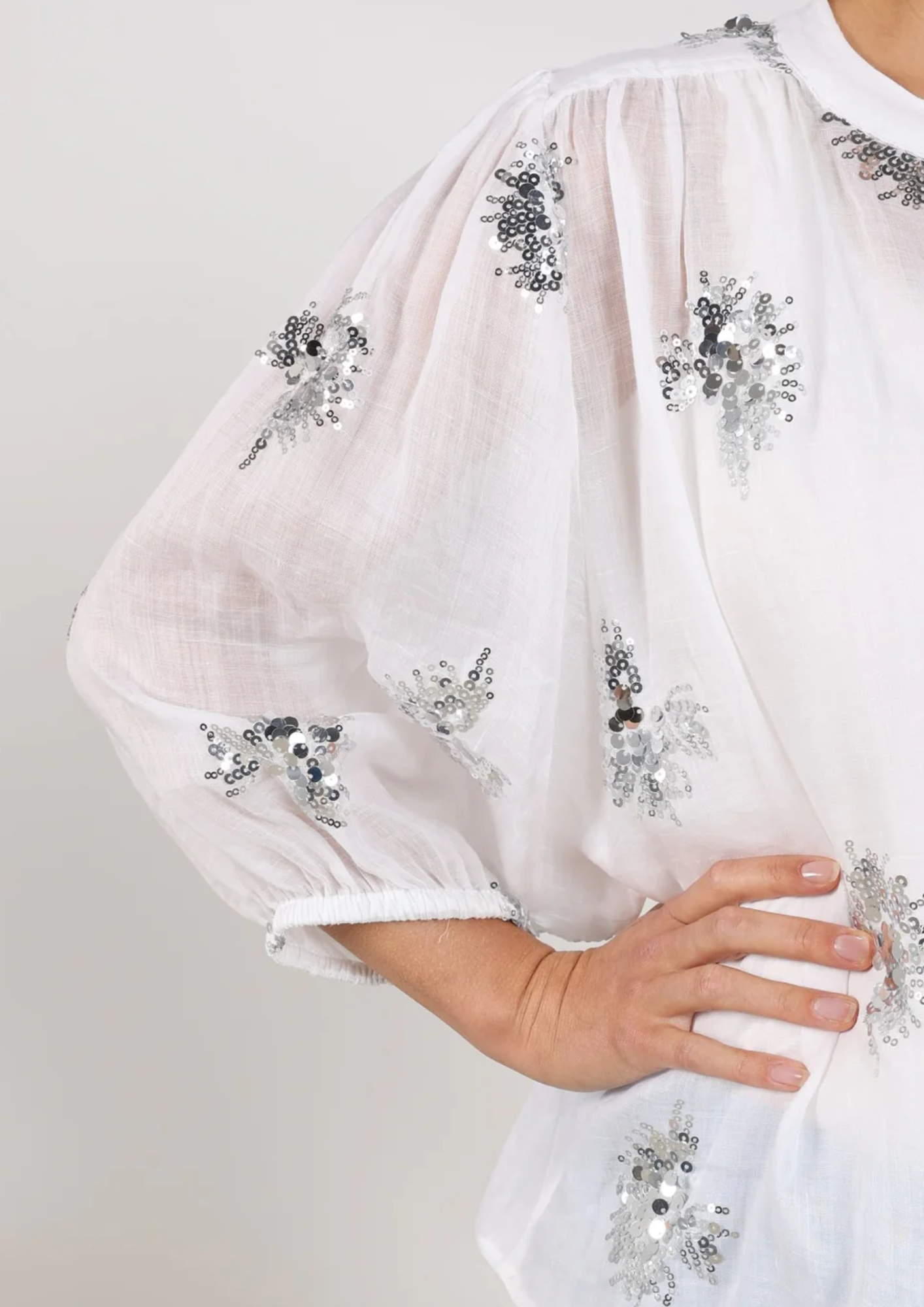 Met subtiele glans en een feestelijke uitstraling is deze blouse een echte blikvanger. De Lynn blouse paillet is gemaakt van lichtgewicht ramie (linnen) en heeft een ruime pasvorm, waardoor hij elegant en luchtig valt. De glitters over de stof geven de blouse een sprankelend detail dat elke outfit een feestelijke touch geeft.