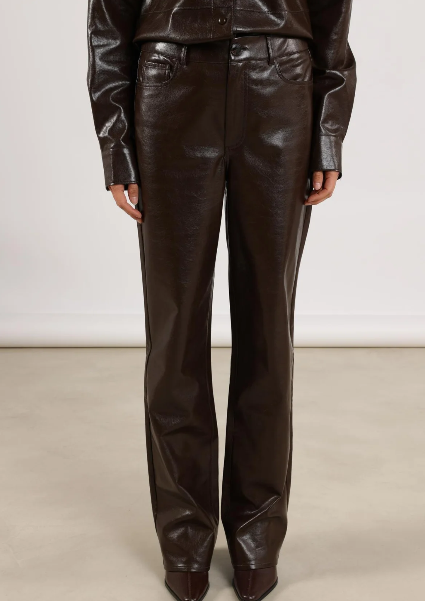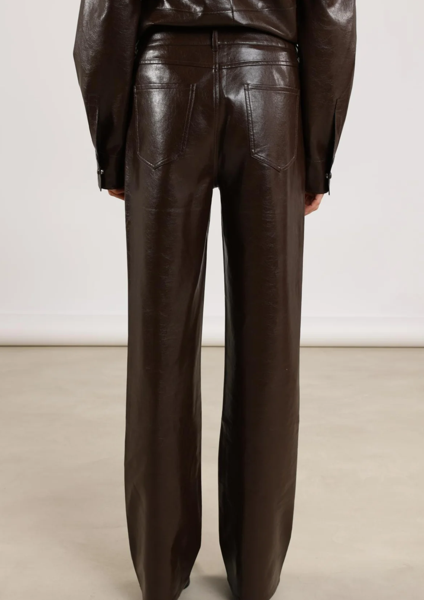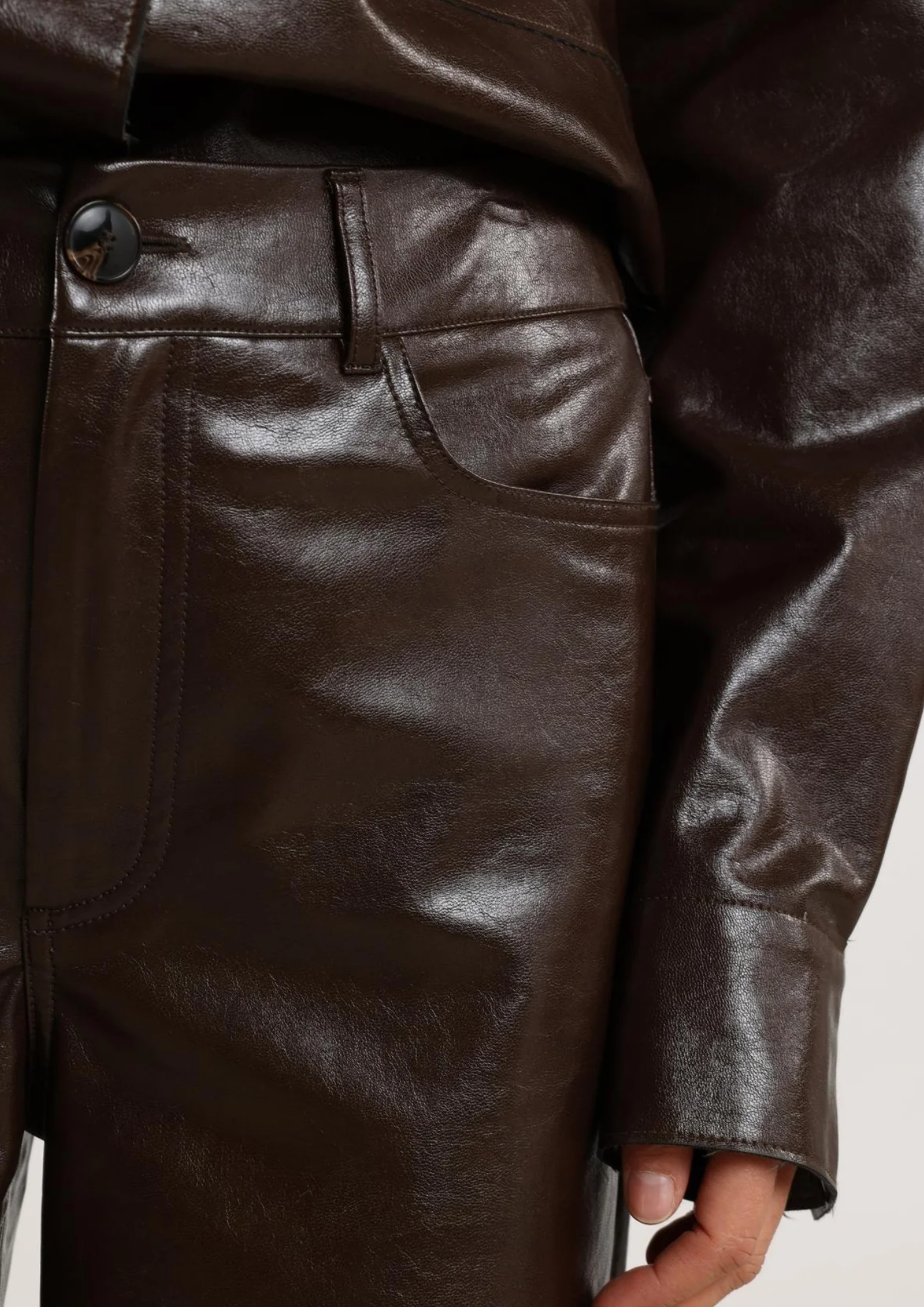 De Patricia pants PU is een moderne eyecatcher in luxe leerlook, ontworpen met een high waist en wide fit voor een krachtige uitstraling. Deze broek combineert comfort met een elegante, edgy stijl. Maak de look compleet met de bijpassende Patricia blouse voor een onmisbaar statement set.